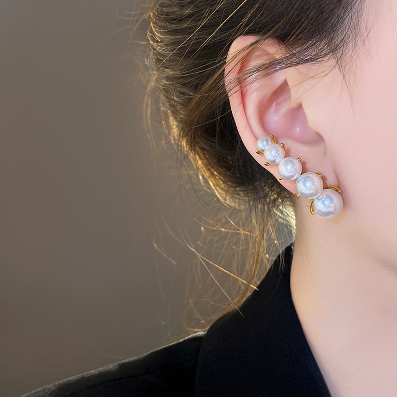 このパールピアスは、贅沢な5連デザインが特徴のエレガントなアイテムです。大ぶりのパールが女性らしさを引き立て、華やかな印象を与えます。軽やかな着用感で、長時間の使用も快適です。シンプルながらも存在感があり、カジュアルからフォーマルなシーンまで幅広く活躍すること間違いありません。他のアクセサリーとの組み合わせも楽しめ、多様なスタイルを演出します。
