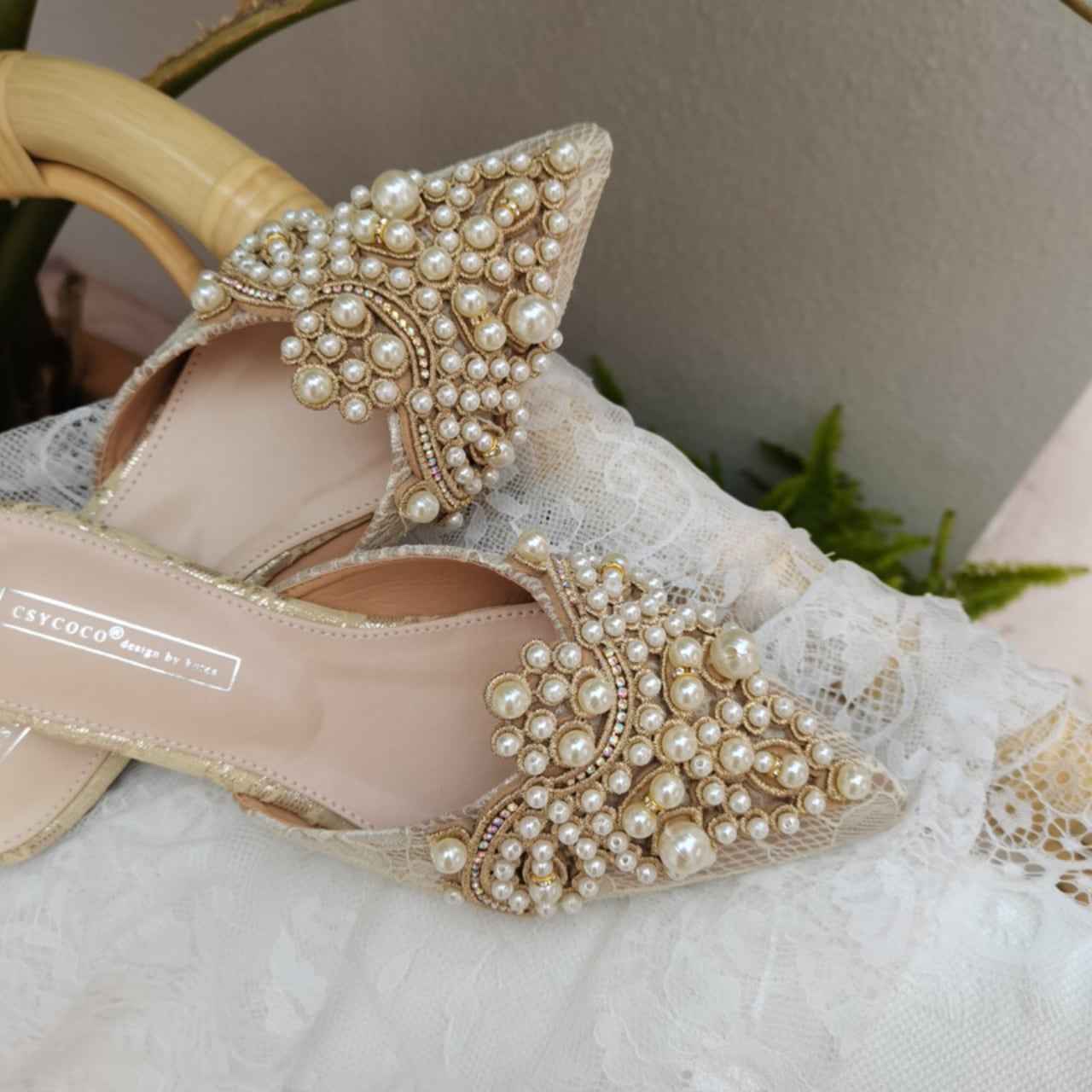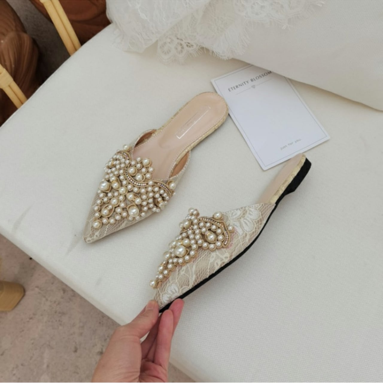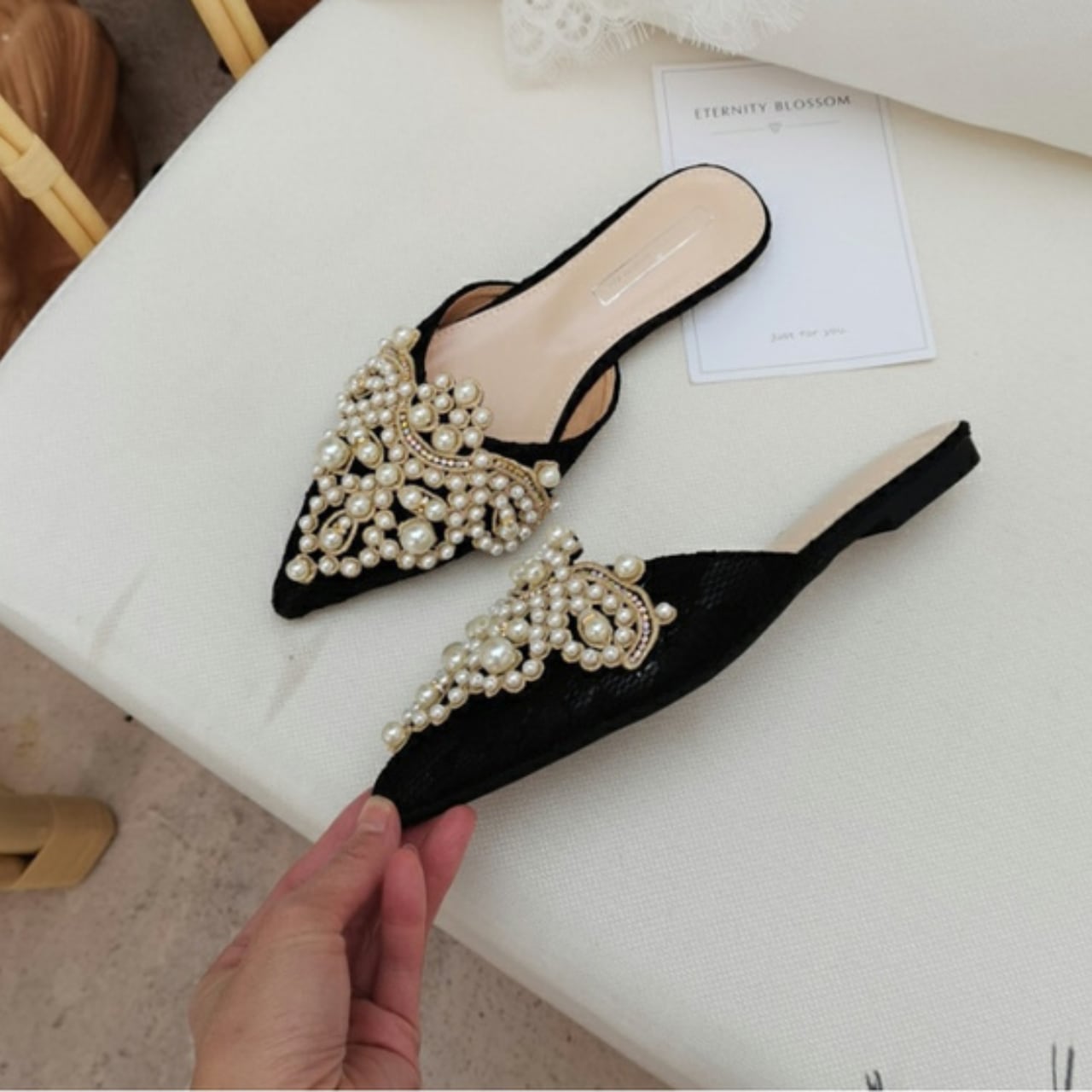 華やかなパールビジューが魅力のフラットシューズ