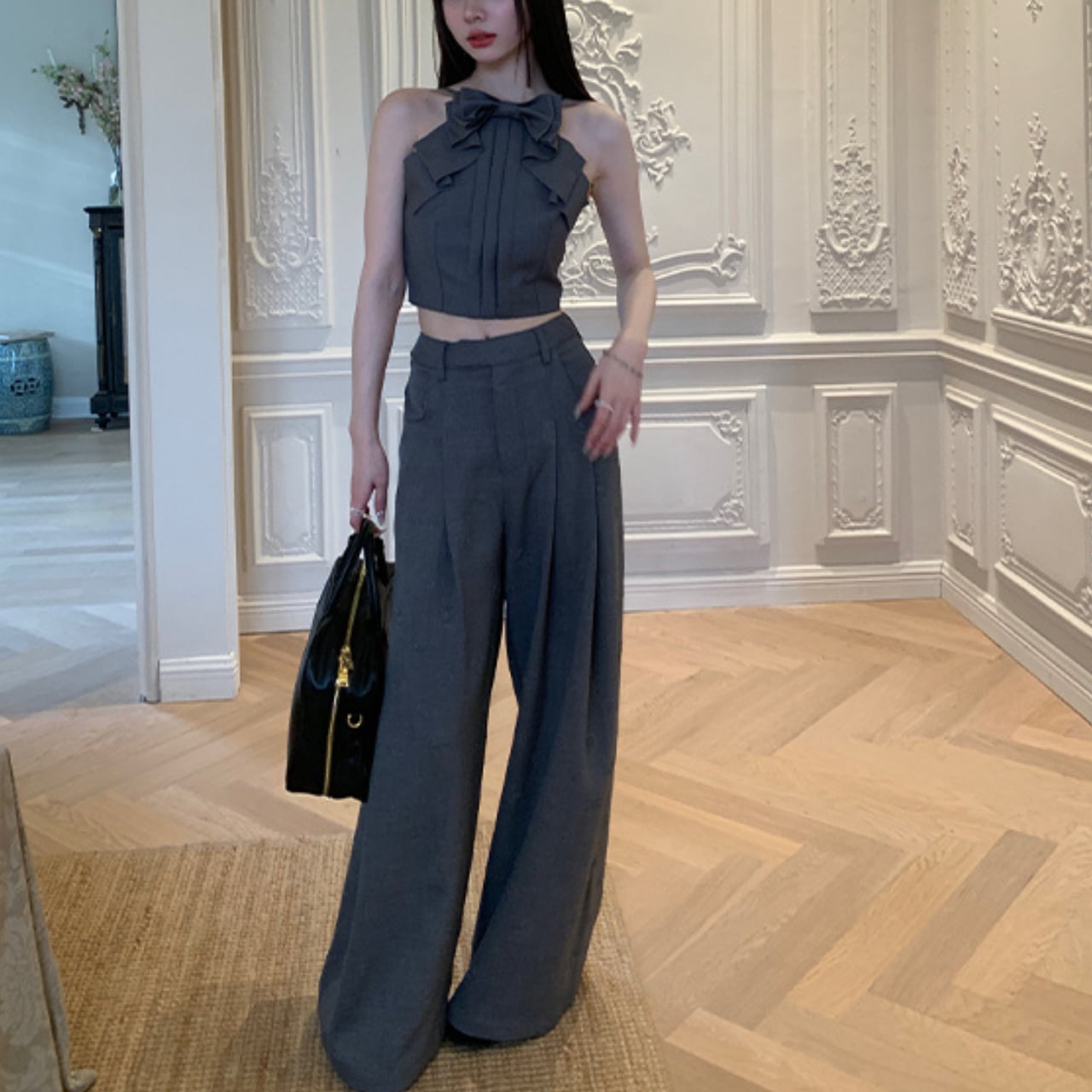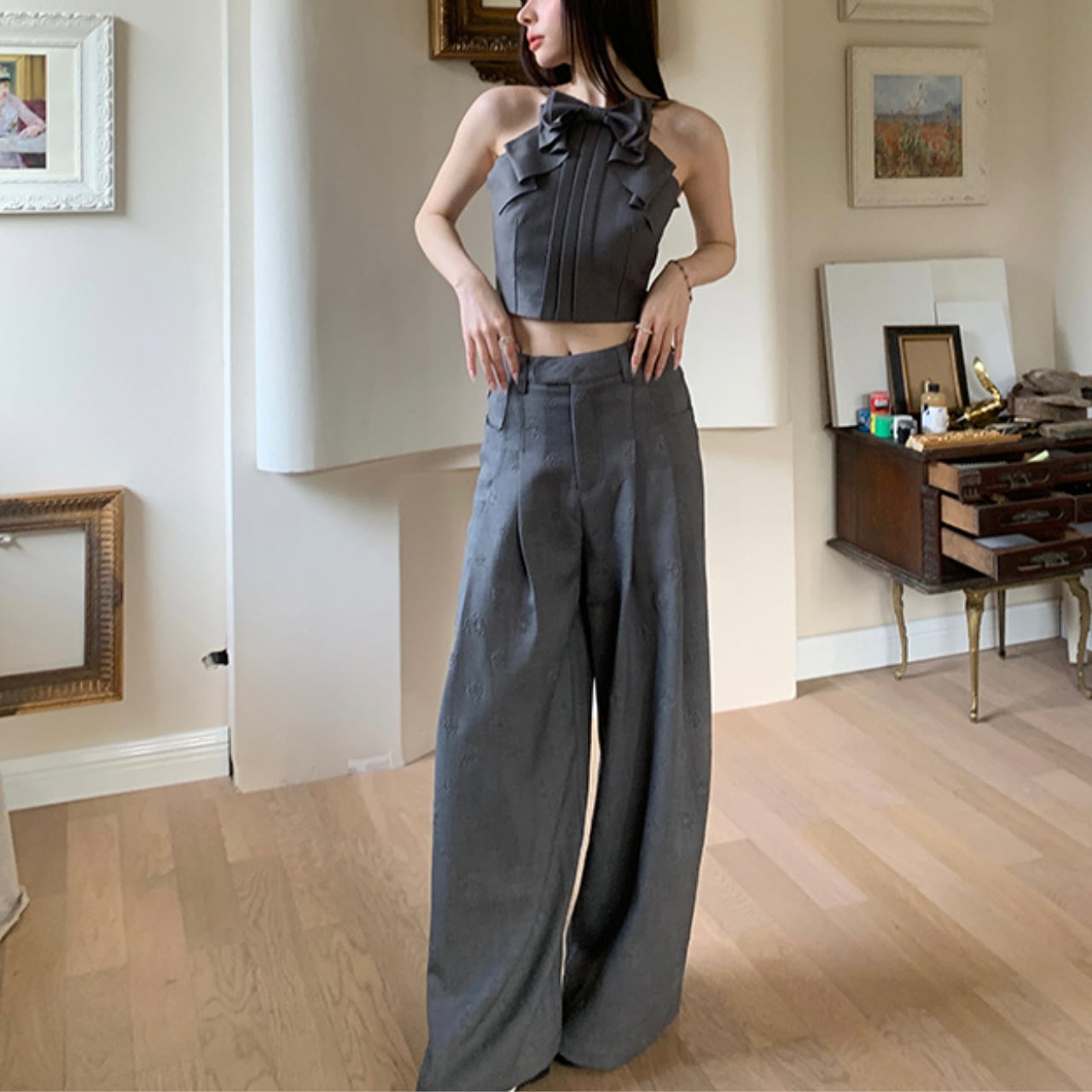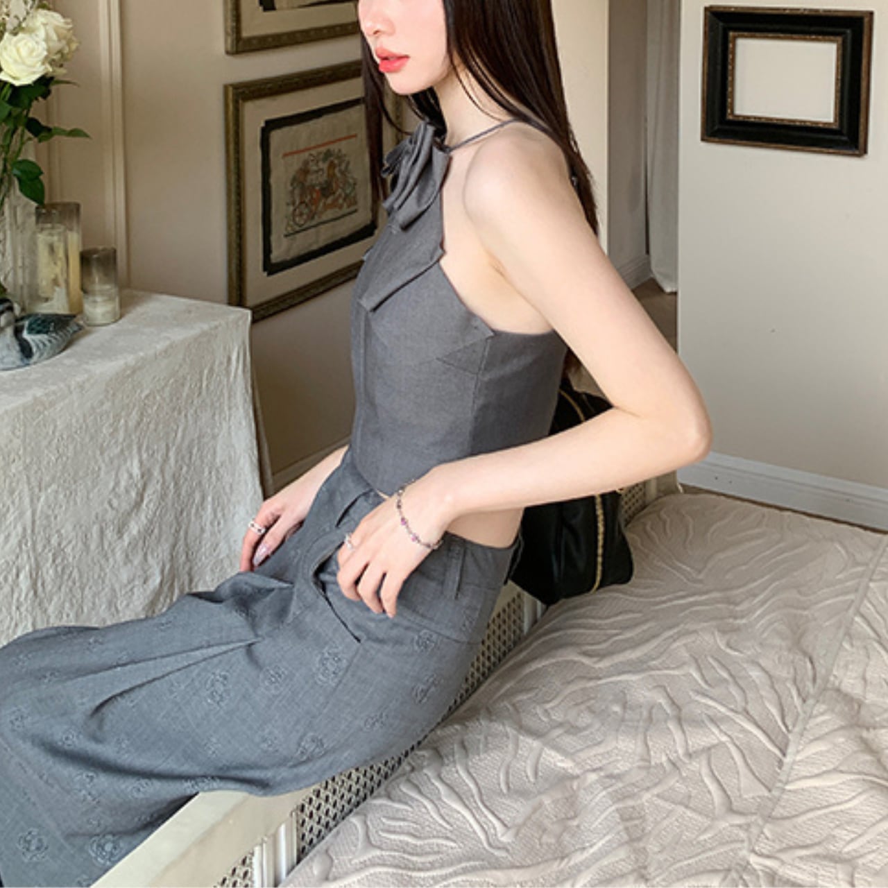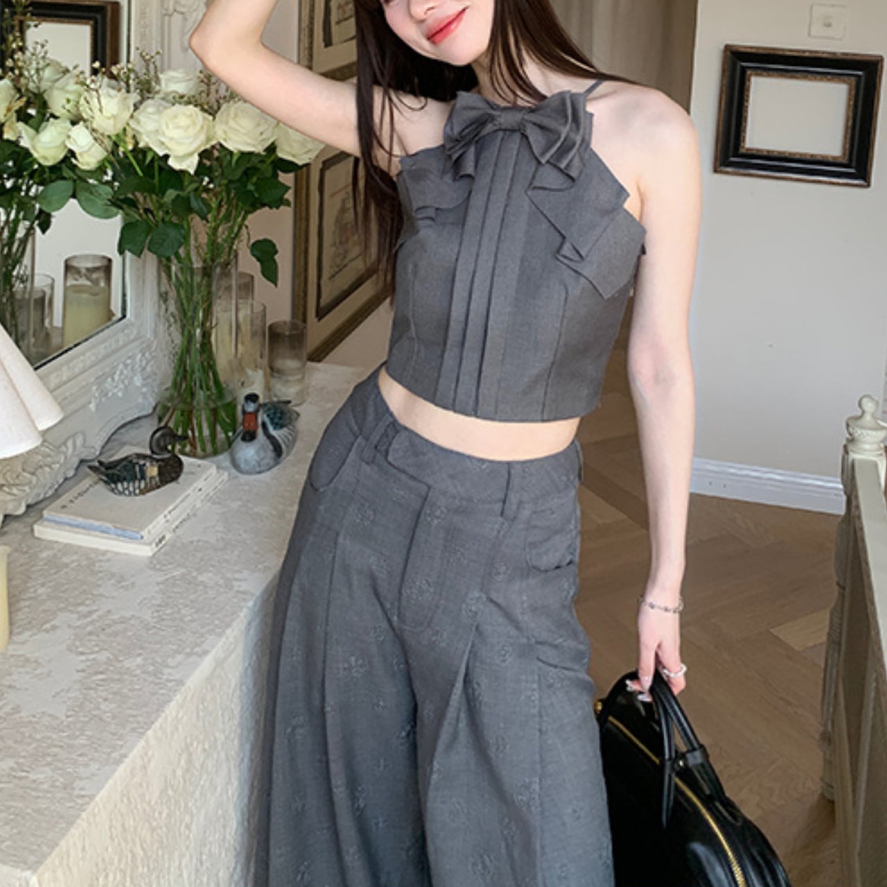 このビッグリボンキャミソールは、軽やかな素材で作られており、普段使いから特別な日まで幅広く活躍します。リボンのデザインがポイントとなり、シンプルなボトムスと合わせるだけで、コーディネートが引き立ちます。デニムやスカートと合わせてもバランスよく、友人とのお出かけや特別なイベントにぴったりの一着です。