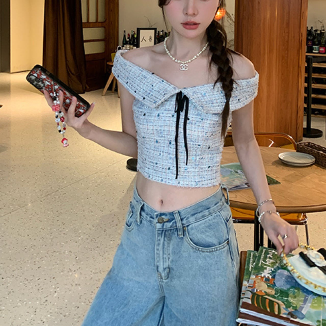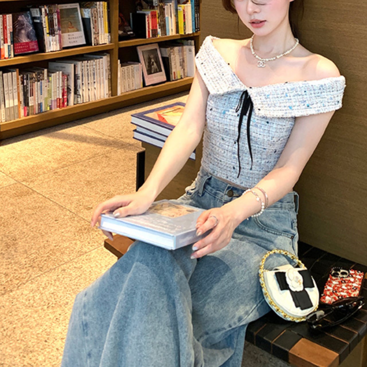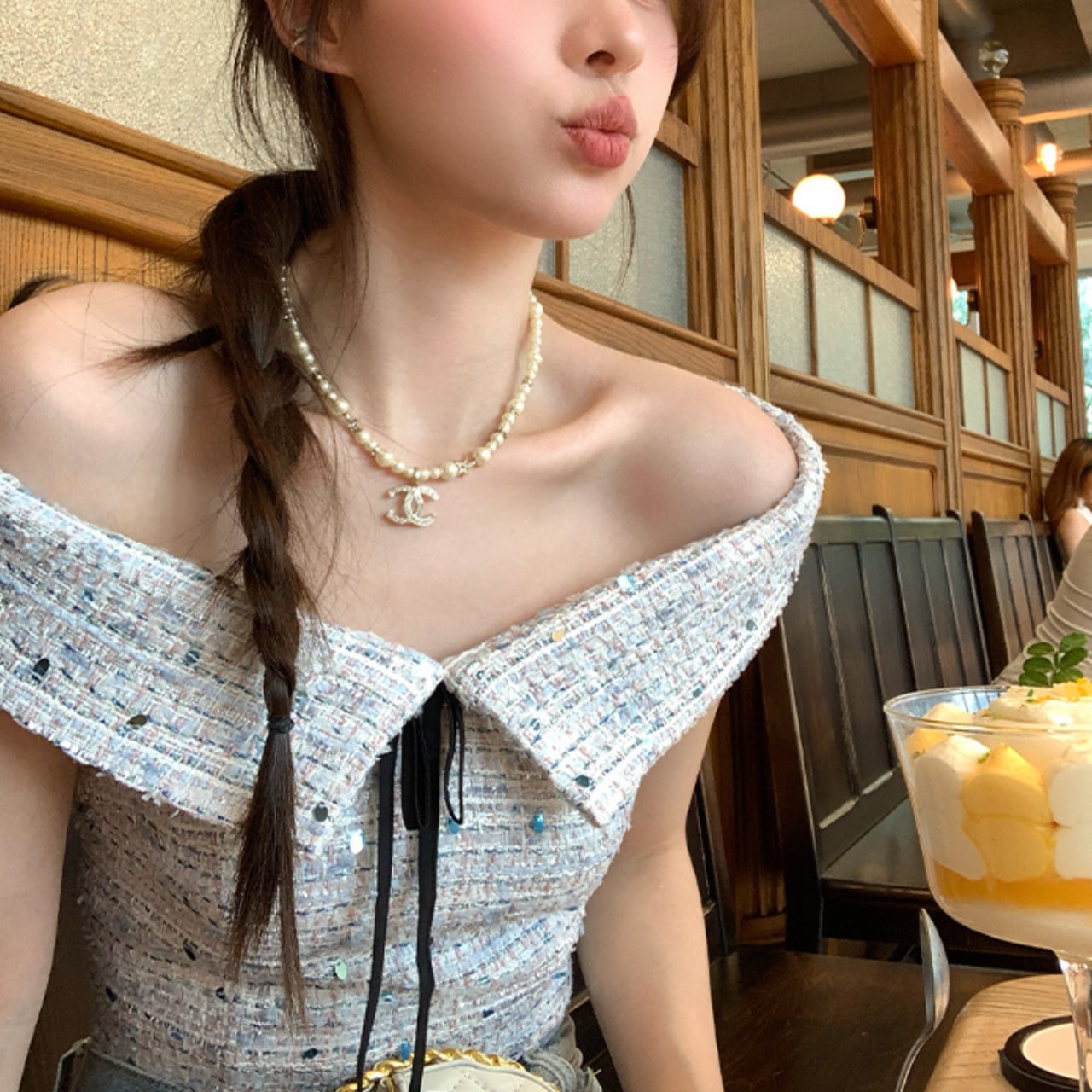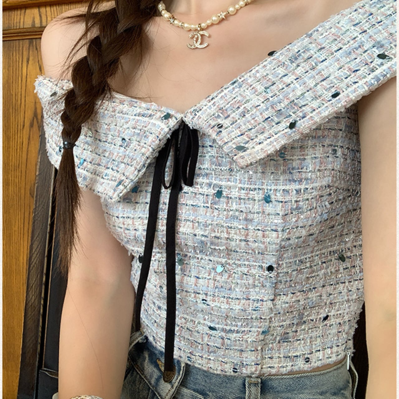 このオフショルツイードトップスは、上品なツイード素材で作られており、特別なシーンでも目を引くアイテムです。華やかなスパンコールとリボンが、シンプルなボトムスと合わせるだけでアクセントとなり、パーティーやデートなど、友人とのイベントにぴったりの一着です。シックなパンツやスカートと組み合わせることで、あなたのスタイルを引き立てます。