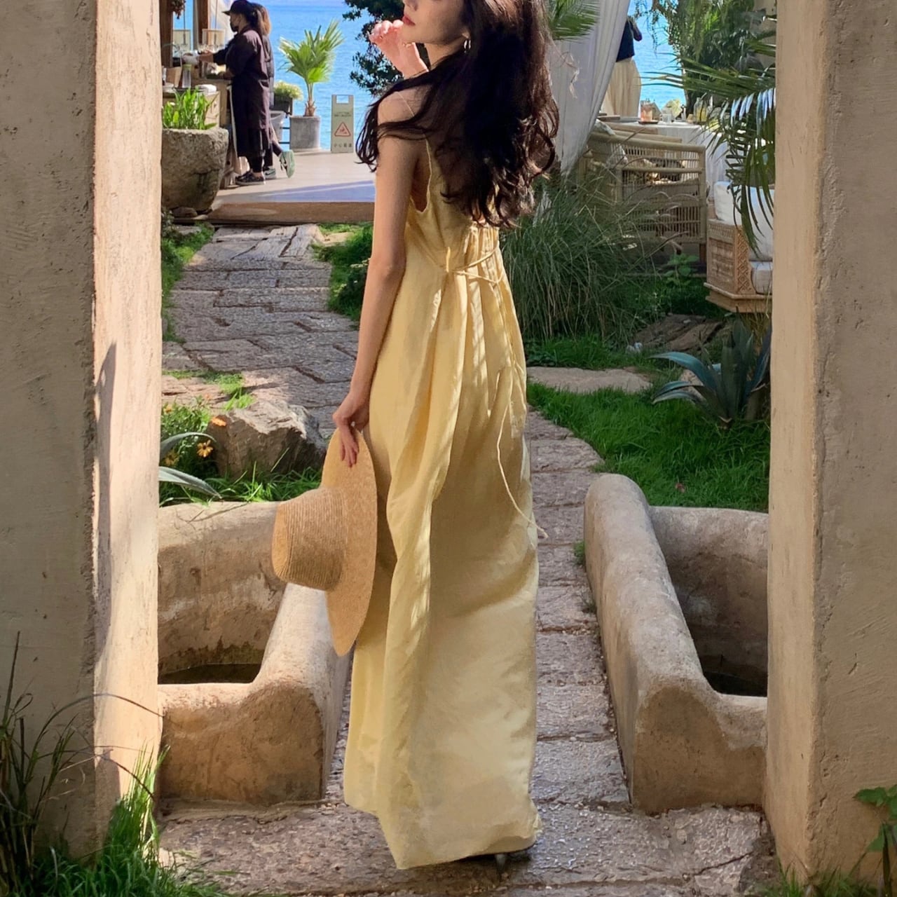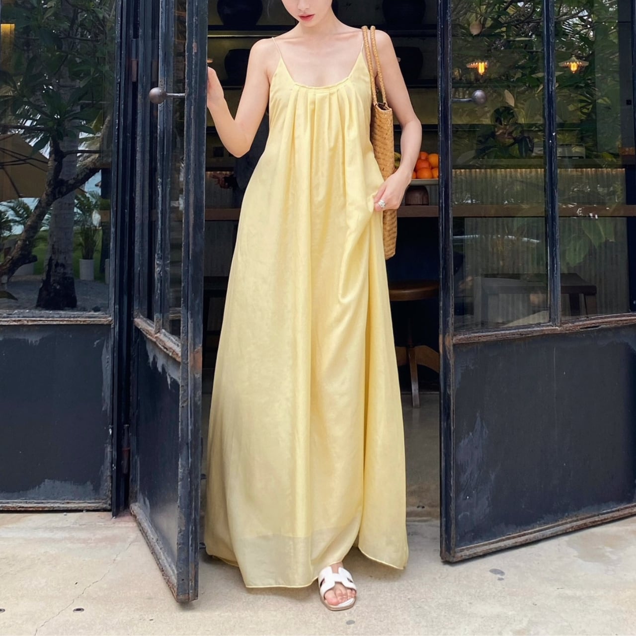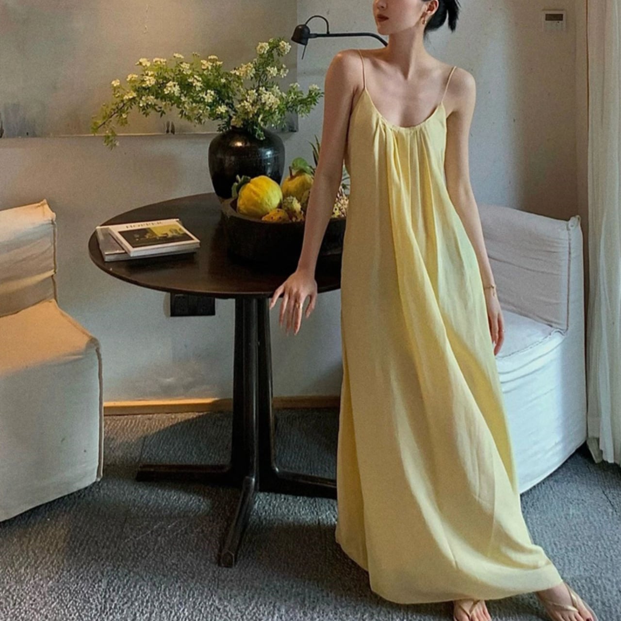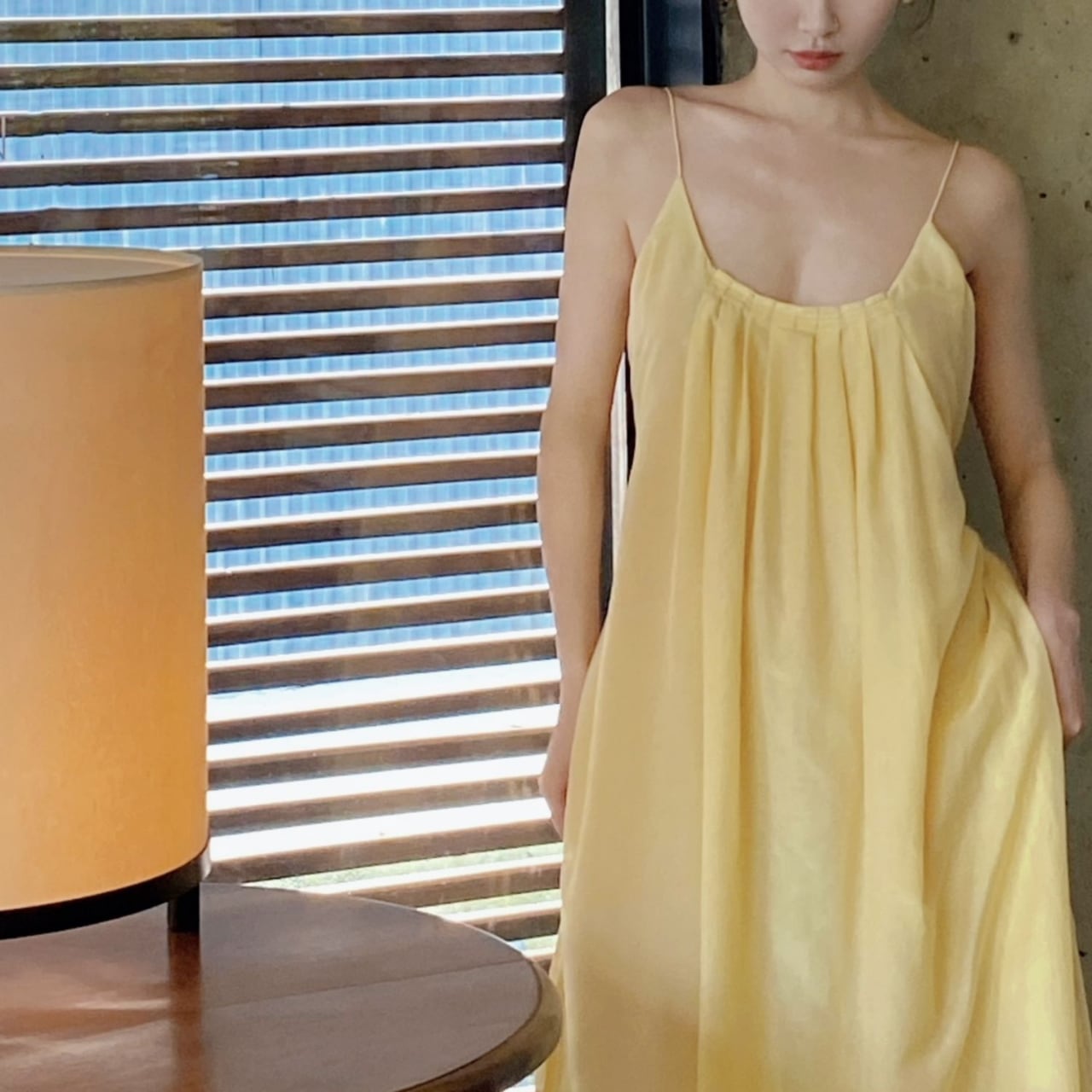 このバックレスイエローワンピースは、シンプルでありながら存在感のあるデザインが特徴です。鮮やかなイエローが明るさをプラスし、マキシ丈のシルエットがエレガンスを引き出します。カジュアルなデイリーコーデはもちろん、友人とのお出かけや特別なイベントにおいても活躍するアイテムです。シンプルなアクセサリーを添えることで、あなた自身のスタイルを際立たせることができます。