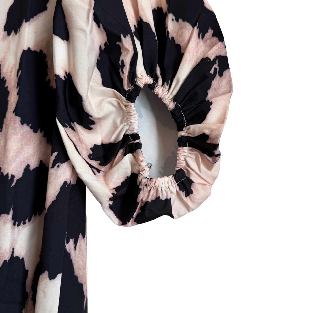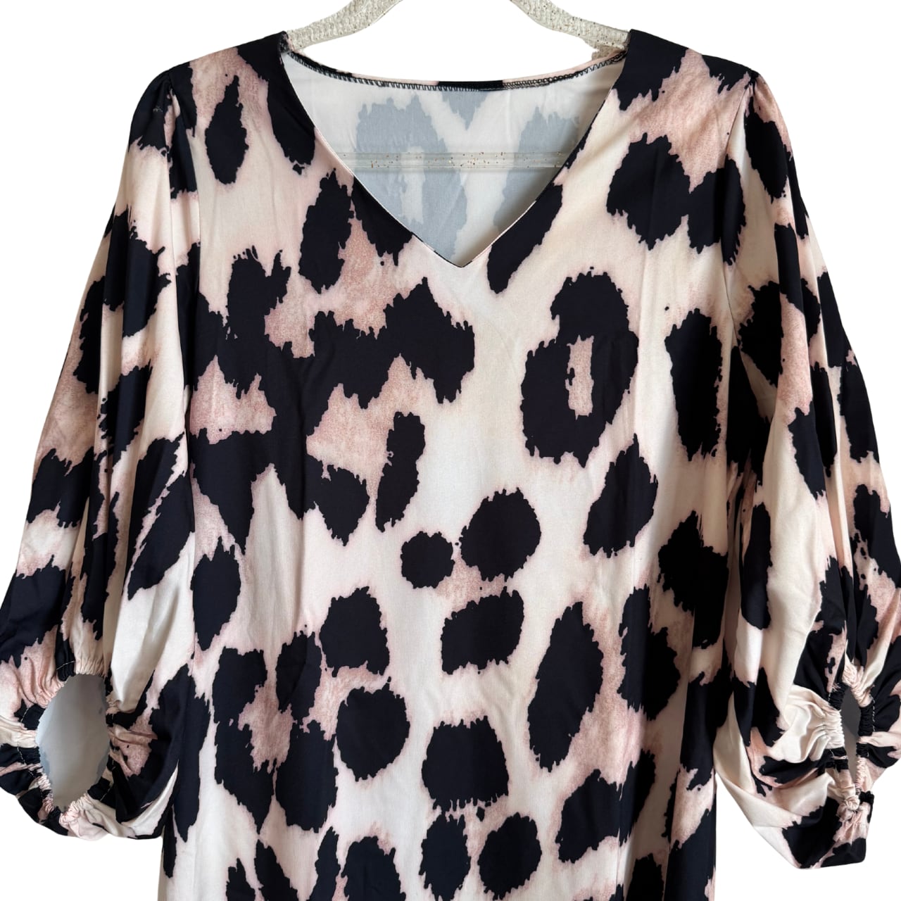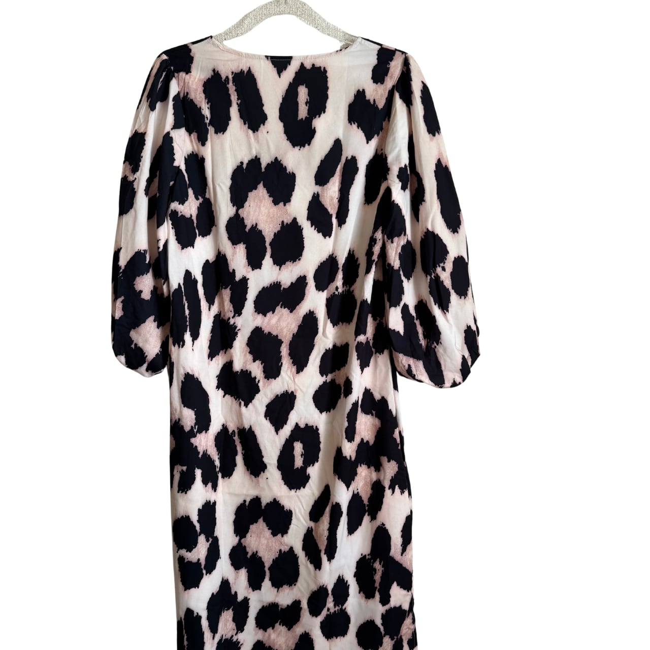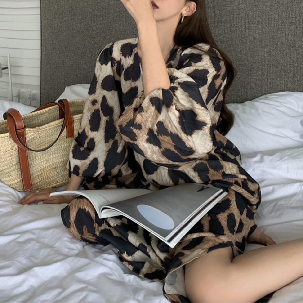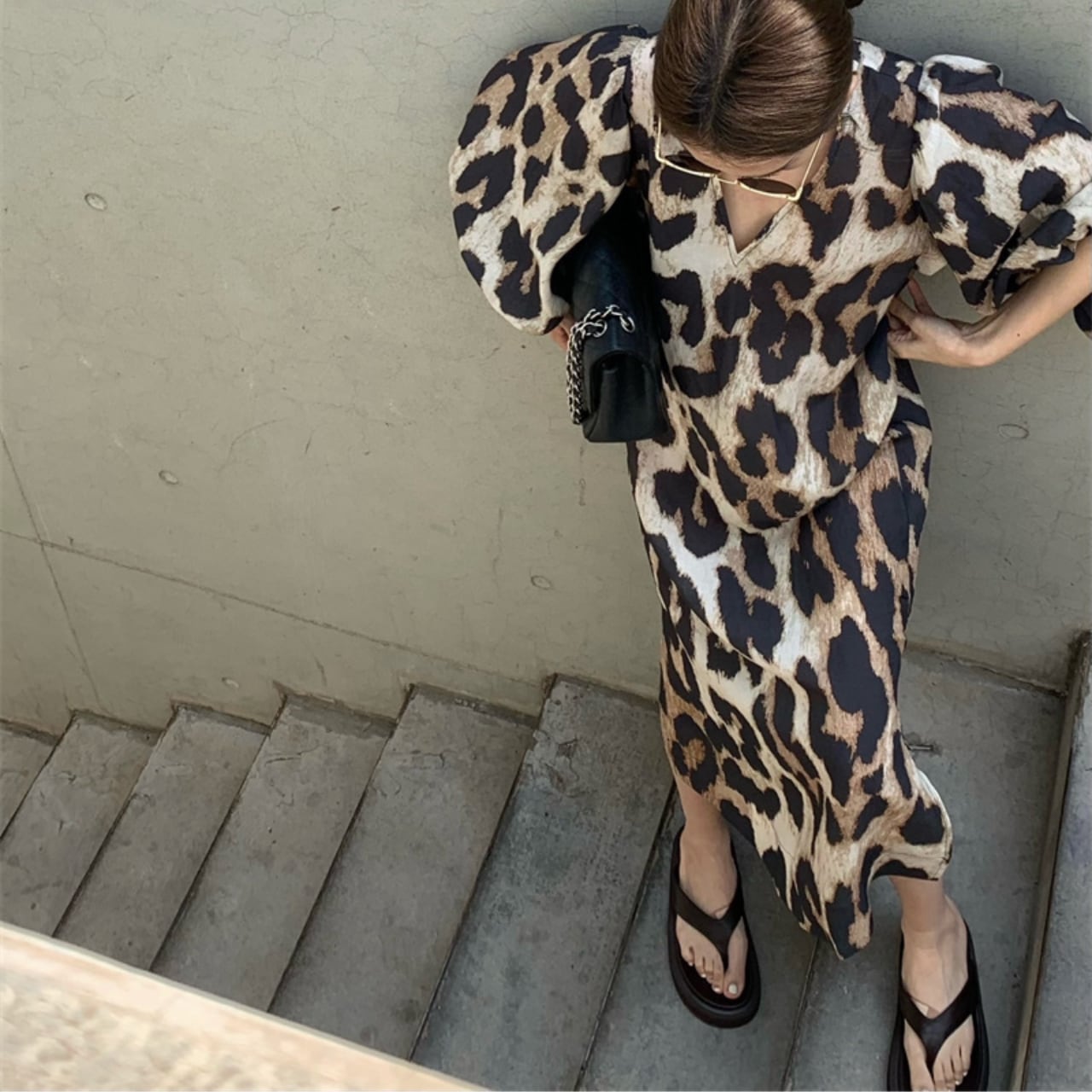 大人の抜け感レオパード|Vネック カフタンロングワンピース(体型カバー/マキシ丈)