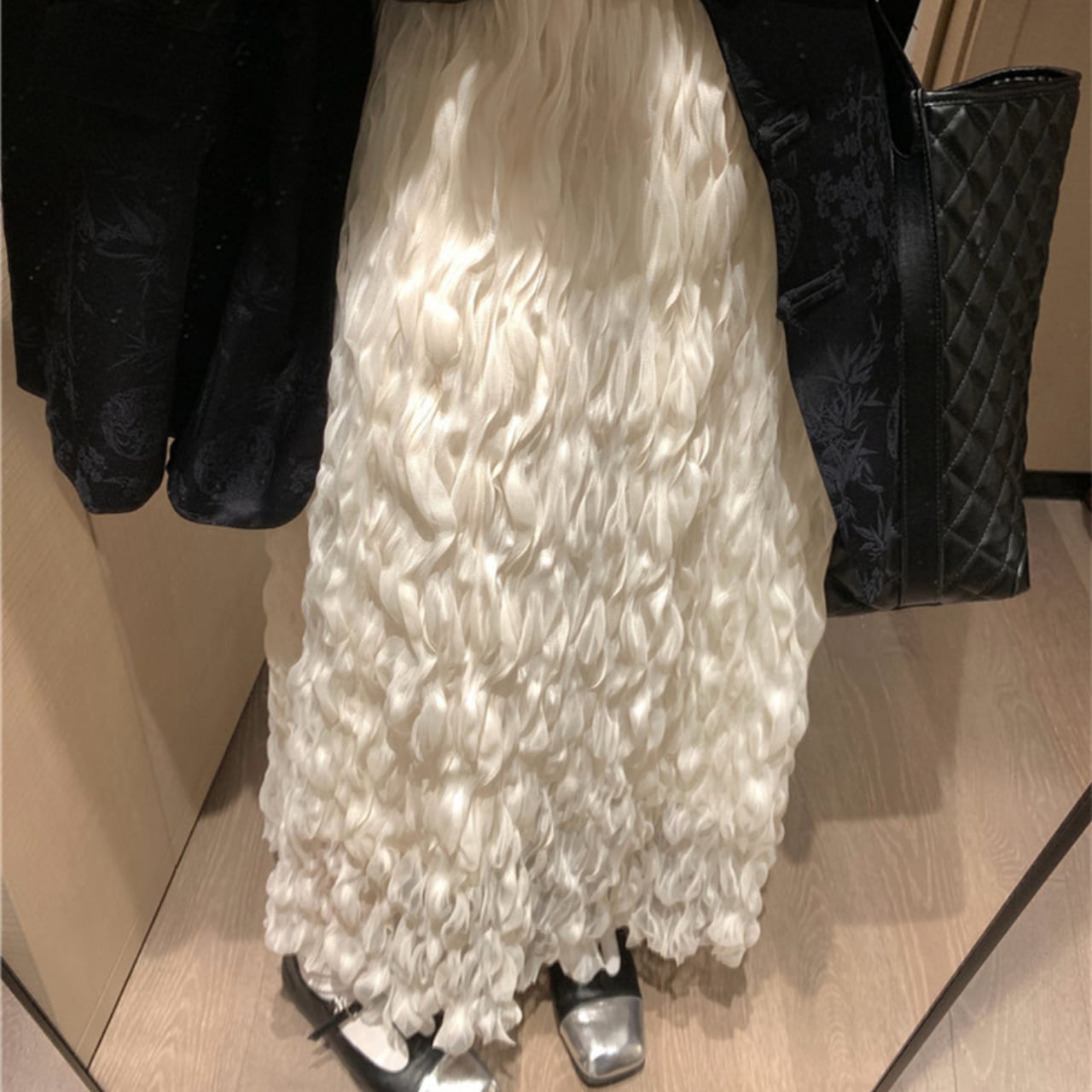 このプリーツチュールスカートは、優雅なプリーツが優しい揺れを生み出し、動くたびに美しさを纏います。日常のお出かけや特別なイベントまで、幅広いシーンで活躍するアイテムです。トップスとの合わせ方次第で、カジュアルにもエレガントにもコーディネートが可能で、ファッションの幅が広がります。ブラックはシックに、ホワイトは清潔感を与える、どちらのカラーもスタイリングのポイントになることでしょう。