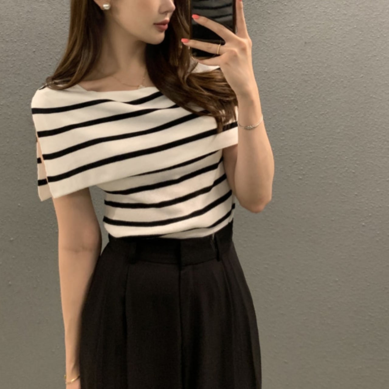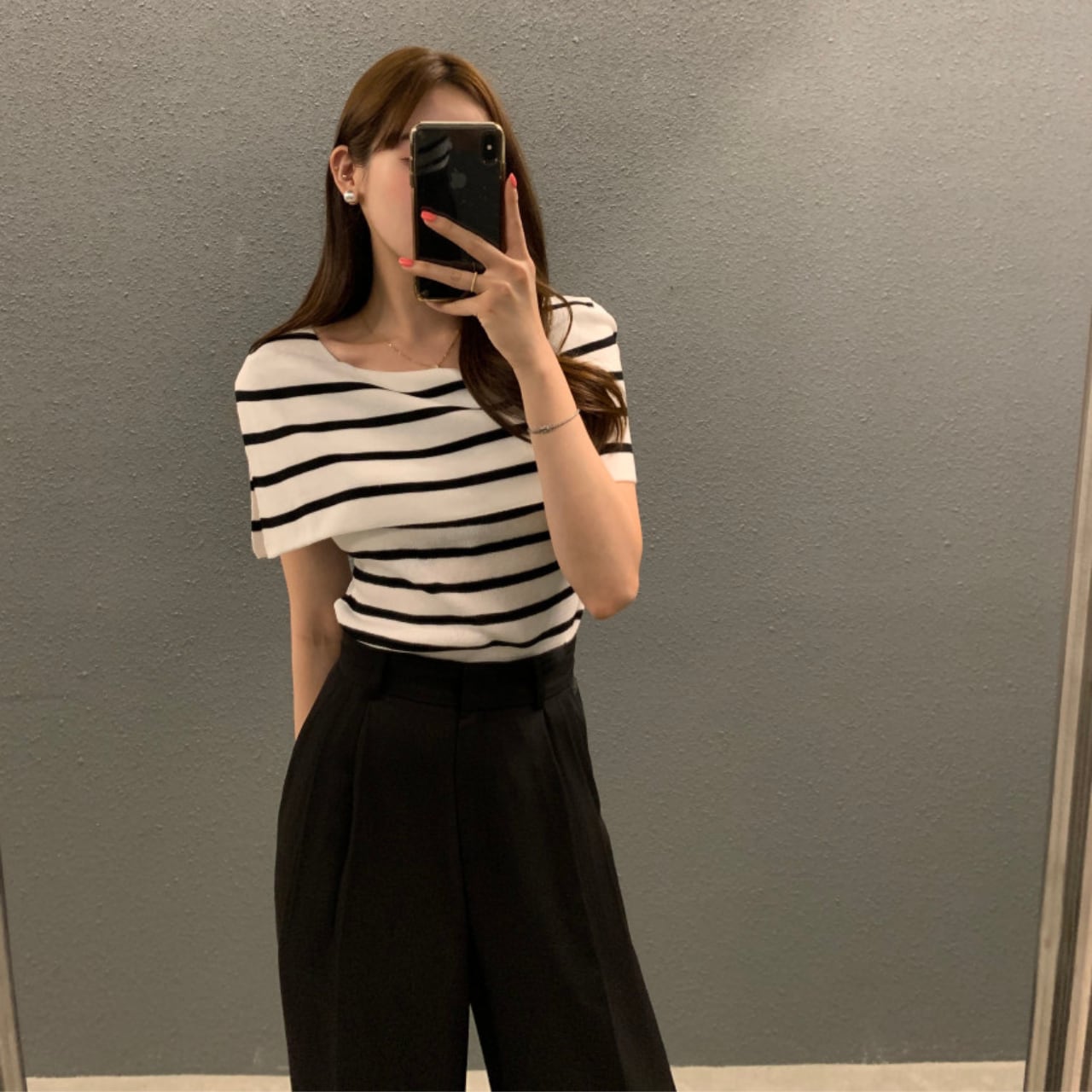 ・シックなブラック、柔らかいベージュ、清楚なホワイトの3色展開と、カジュアルなボーダー柄があります。