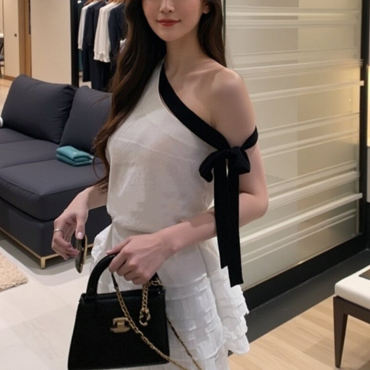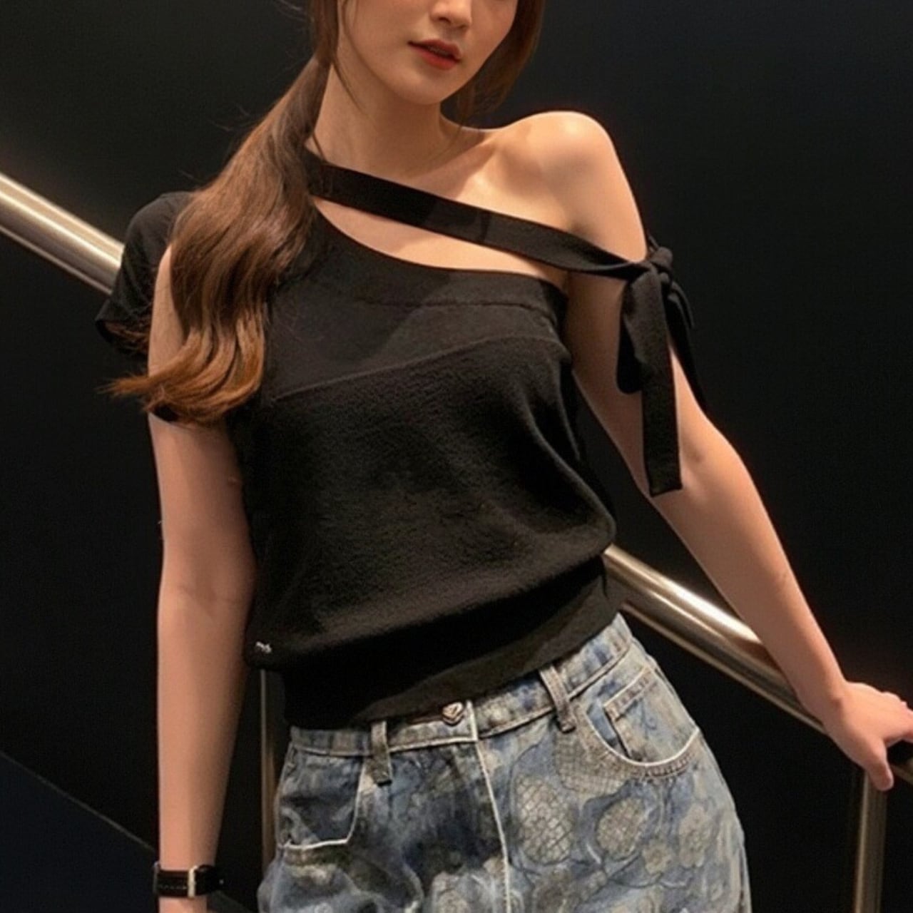 このリボン ワンショルダー トップスは、洗練されたワンショルダーのシルエットと、アクセントとなるリボンが特徴的です。ブラックはシックな雰囲気を引き立て、ホワイトは清潔感を演出します。デコルテを美しく見せるデザインは、さまざまなコーディネートにマッチし、カジュアルから特別なシーンまで幅広くご使用いただけます。自信あふれるスタイルを楽しむための一枚です。