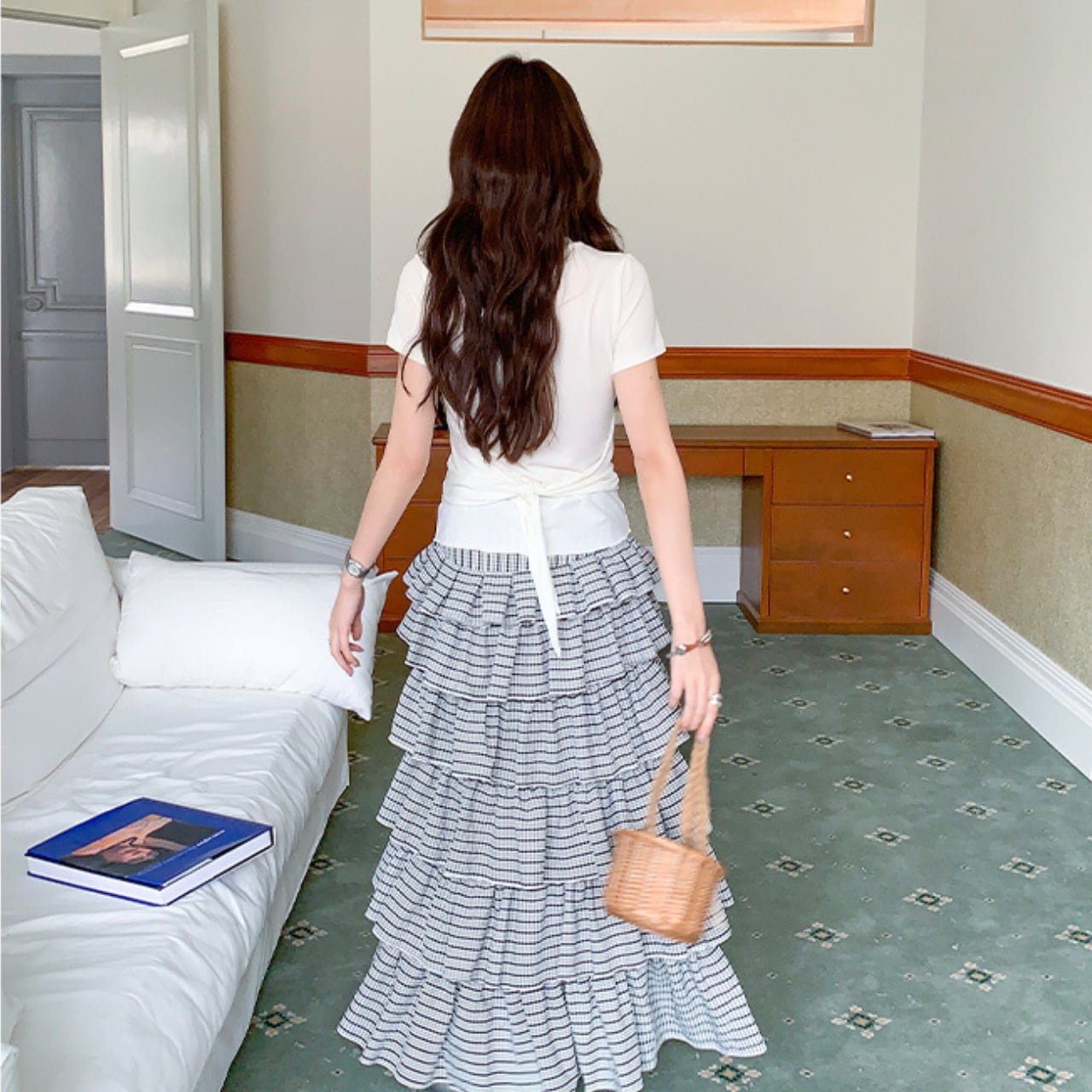 このチェックティアードフリルロングスカートは、かわいらしいティアードフリルと、モダンなチェック柄が特徴です。コットンスクラブ素材を使用しているため、軽やかで快適な着心地を実現します。カジュアルなスタイルからお出かけにもぴったりのアイテムで、コーディネート次第で幅広いシーンに対応します。フリルが動きに合わせて揺れる様子は、女性らしい魅力を引き立て、一枚持っておくと活躍すること間違いなしです。