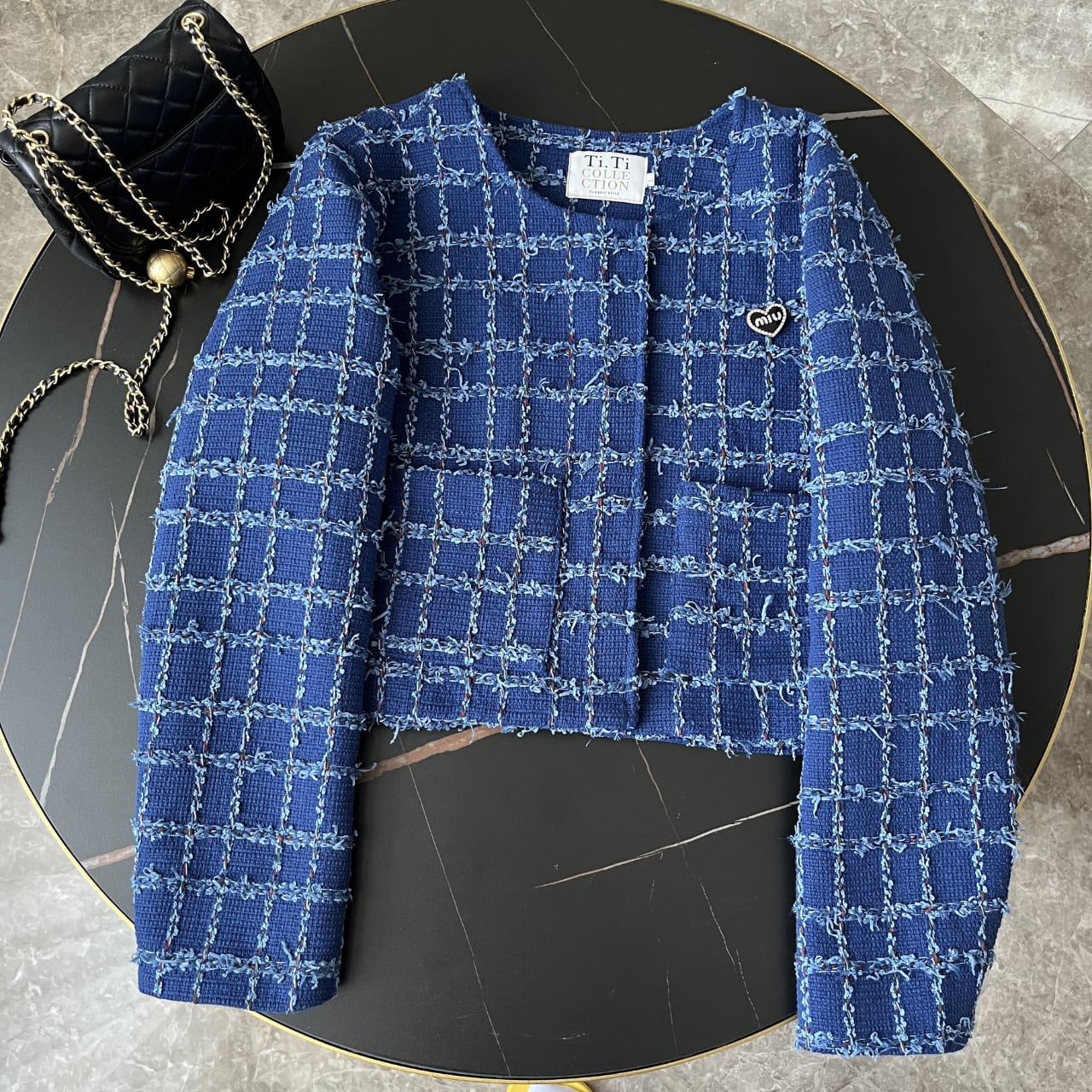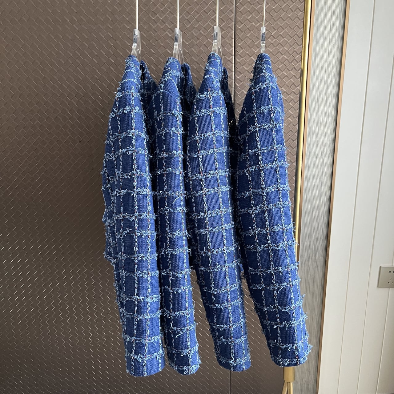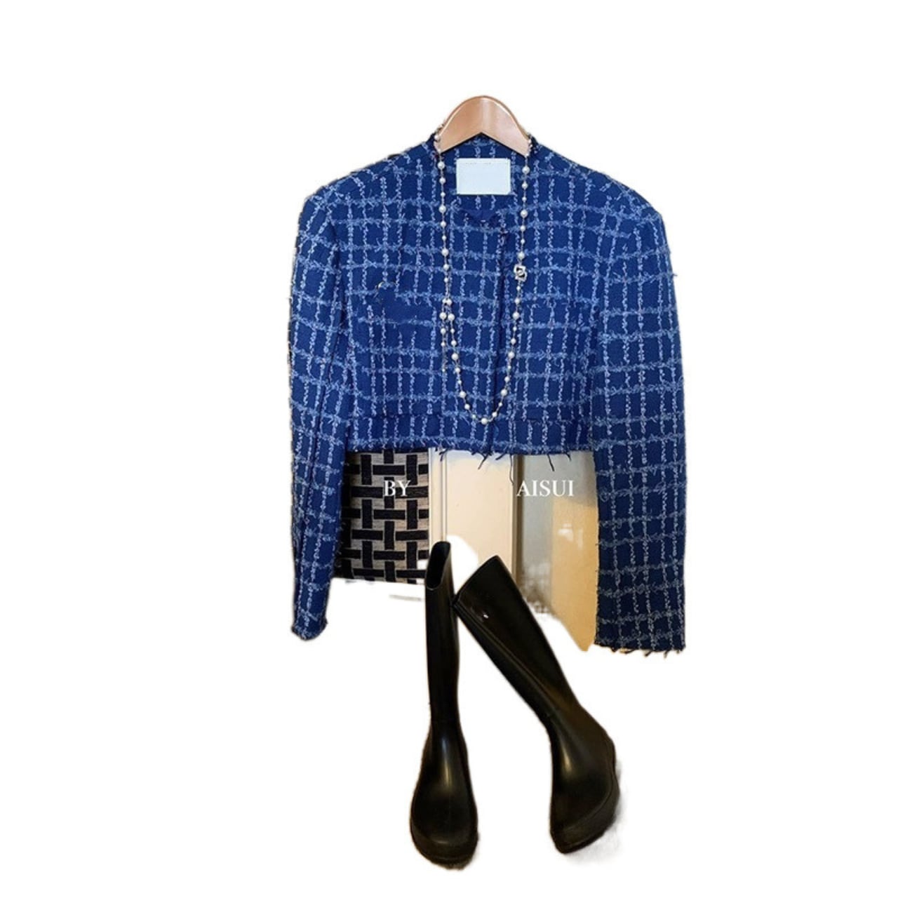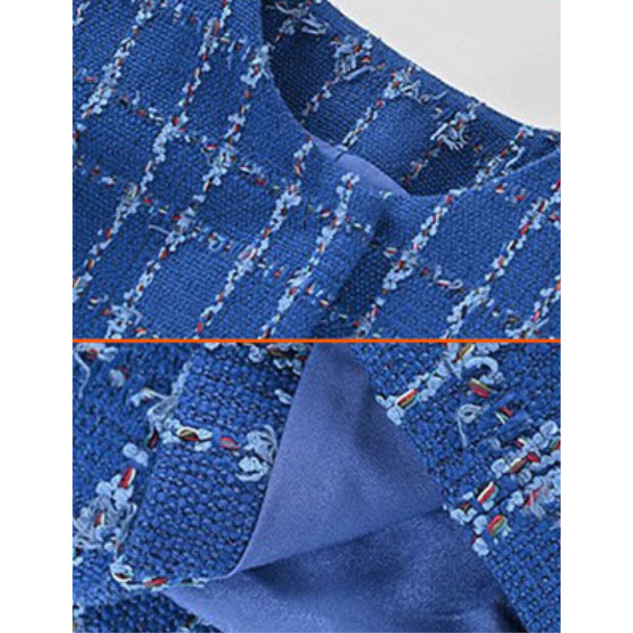 このツイードジャケットは、コンパクトなシルエットが特徴で、シンプルながらも存在感たっぷりの一着です。ブルーは鮮やかでありながらも落ち着いた印象を与え、どんなシーンにも必ずマッチします。オフィススタイルはもちろん、カジュアルなシーンにも活躍するアイテムです。ぜひこの機会に、あなたのコーディネートに個性的でおしゃれなアクセントを加えてみてください。