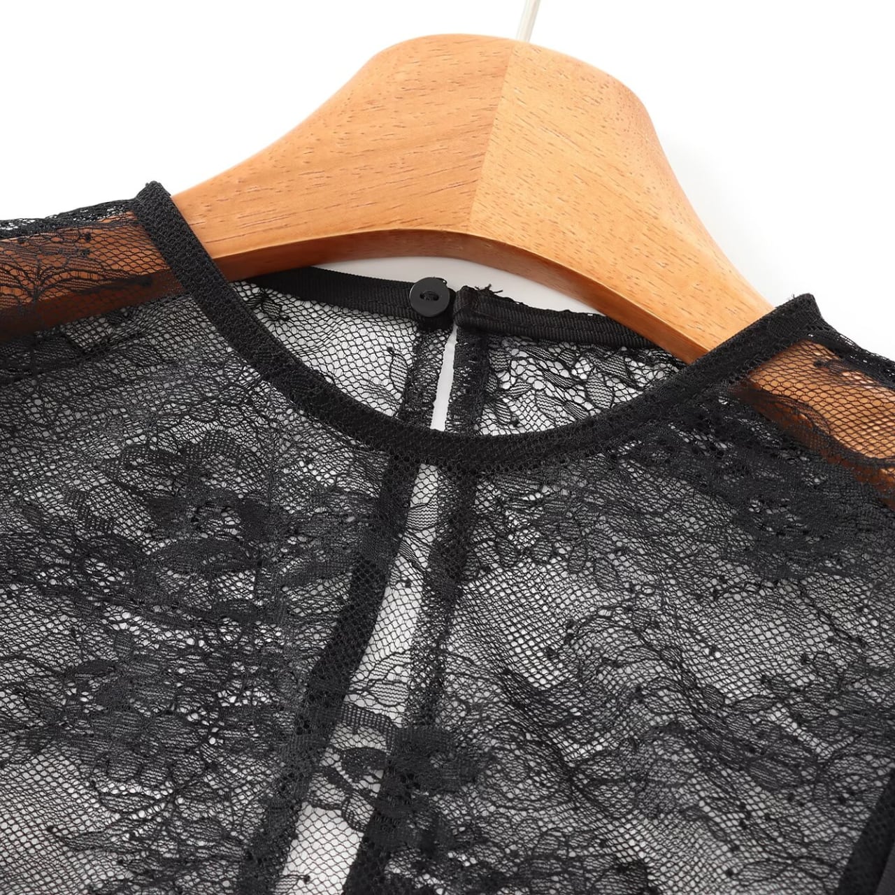 このレーストップスは、フェイクツーピーススタイルが特徴で、さりげない肌見せが魅力です。上質なレース素材が使われており、シンプルなブラックがどんなスタイルにも合います。カジュアルなデニムから優雅なスカートまで、幅広いコーディネートに対応可能です。特別な日にもデイリーユースにもぴったりな一着を、ぜひあなたのワードローブに迎え入れてみてはいかがでしょうか。