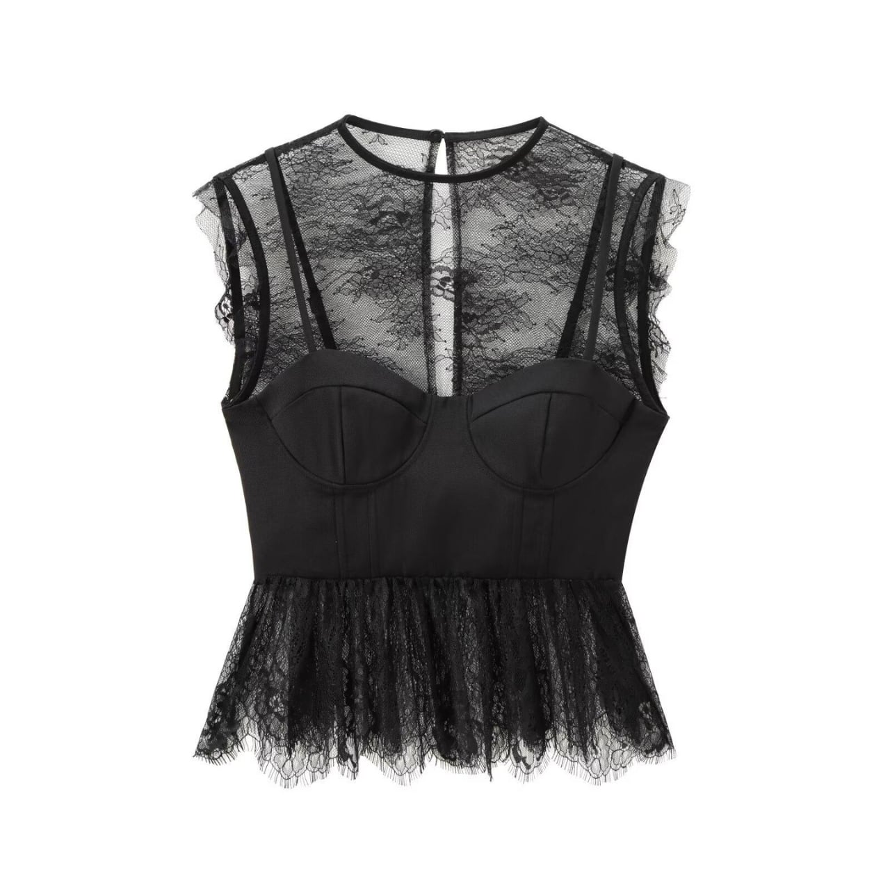 エレガントなフェイクツーピースデザインのレーストップス