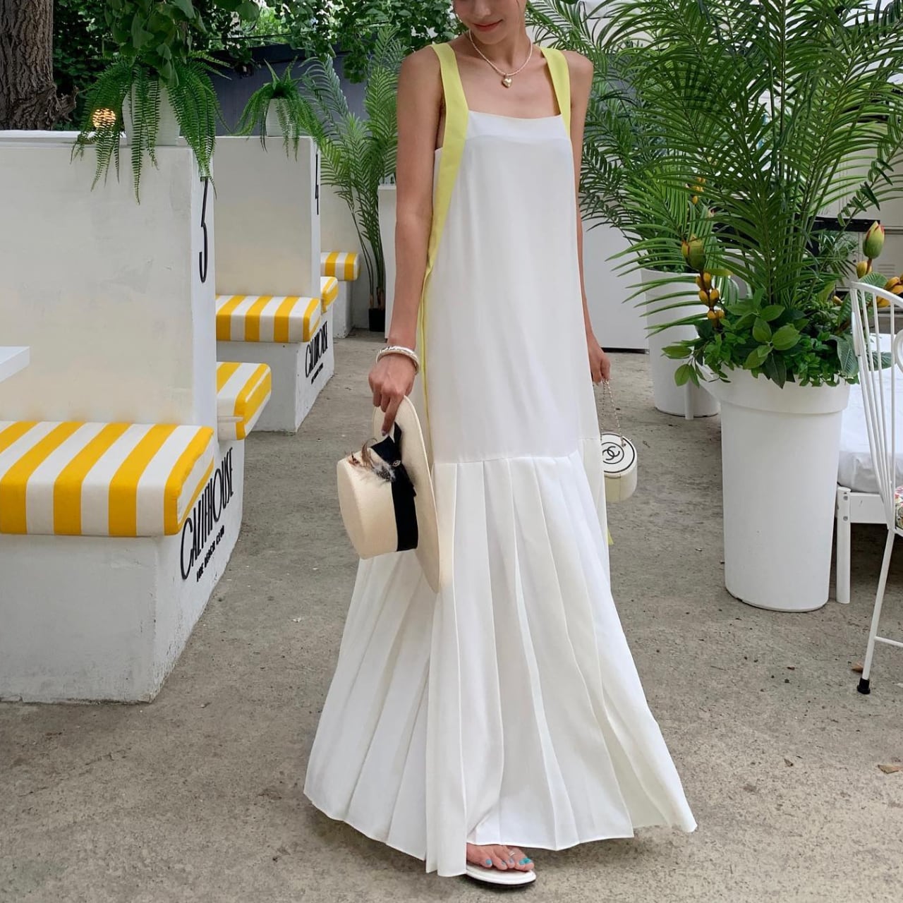 このバイカラーワンピースは、プリーツ切り替えが施され、動きのある印象を与えるデザインです。スクエアネックがデコルテを美しく見せ、女性らしさを引き立てます。シンプルながら存在感のあるカラーリングは、様々なシーンで活躍し、カジュアルからフォーマルまで幅広くコーディネートが可能です。この機会に、あなたのスタイルに新たなエレガンスを取り入れてみませんか。