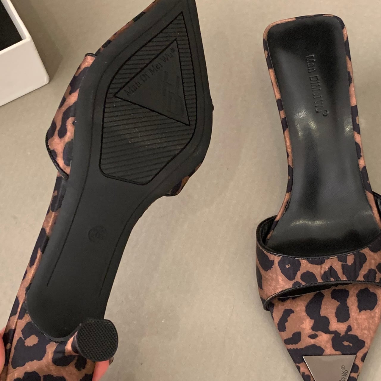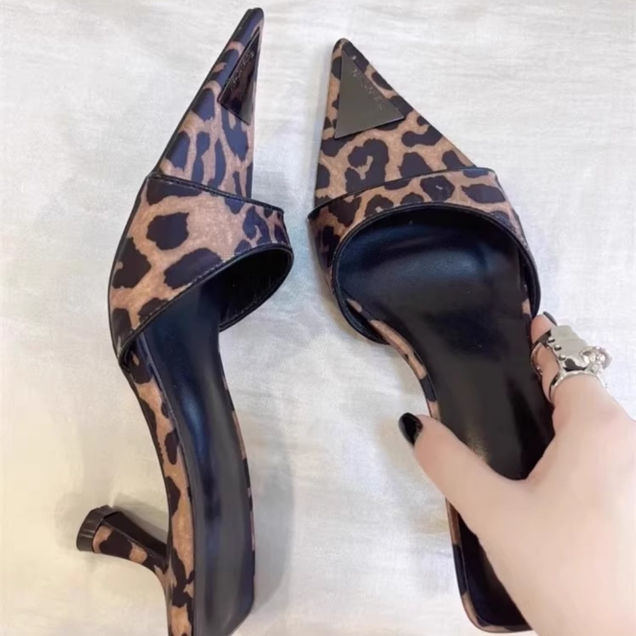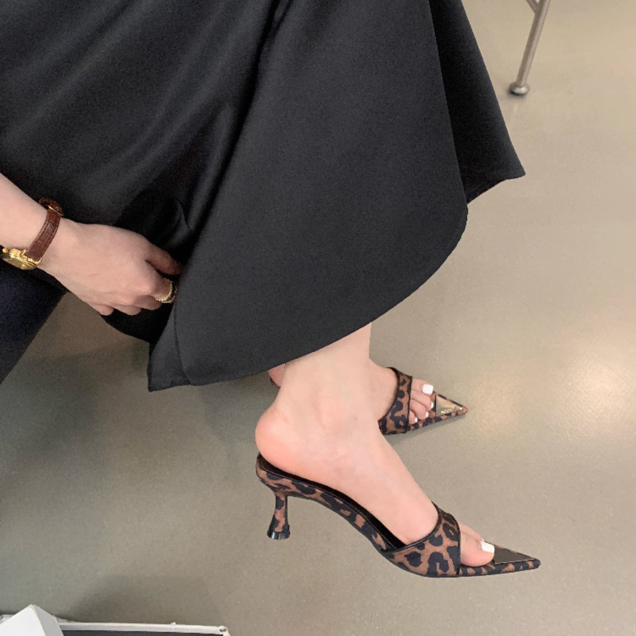 ・スタイリッシュなブラックとトレンド感あふれるレオパード柄のポインテッドトゥサンダルです。