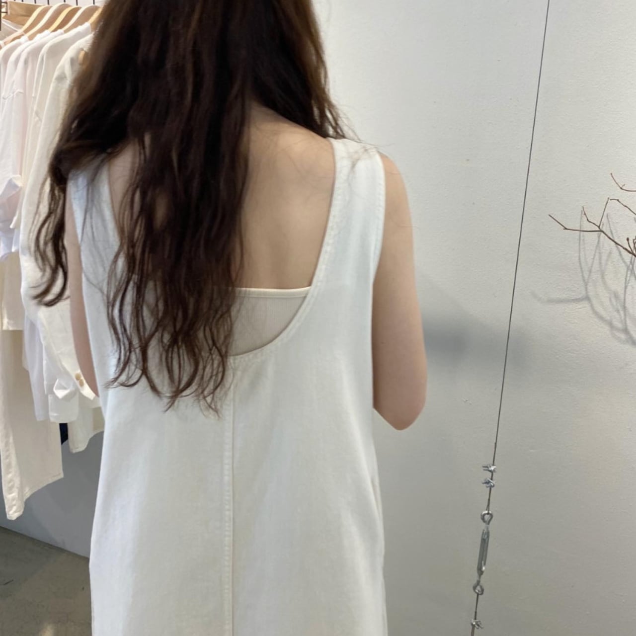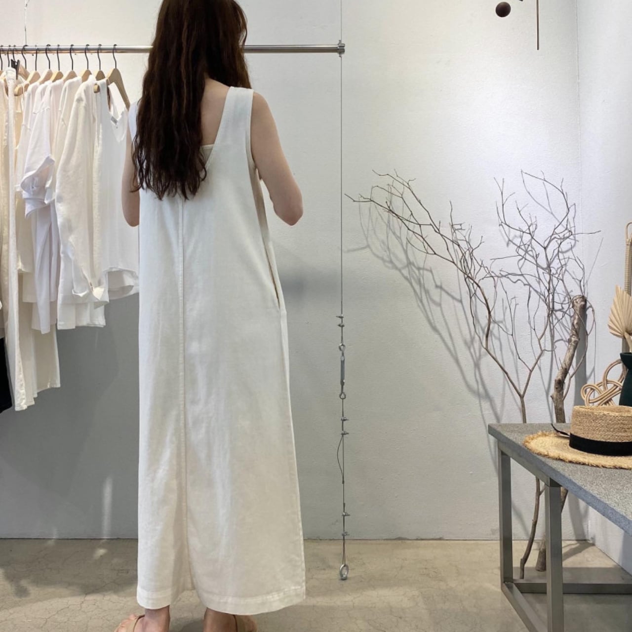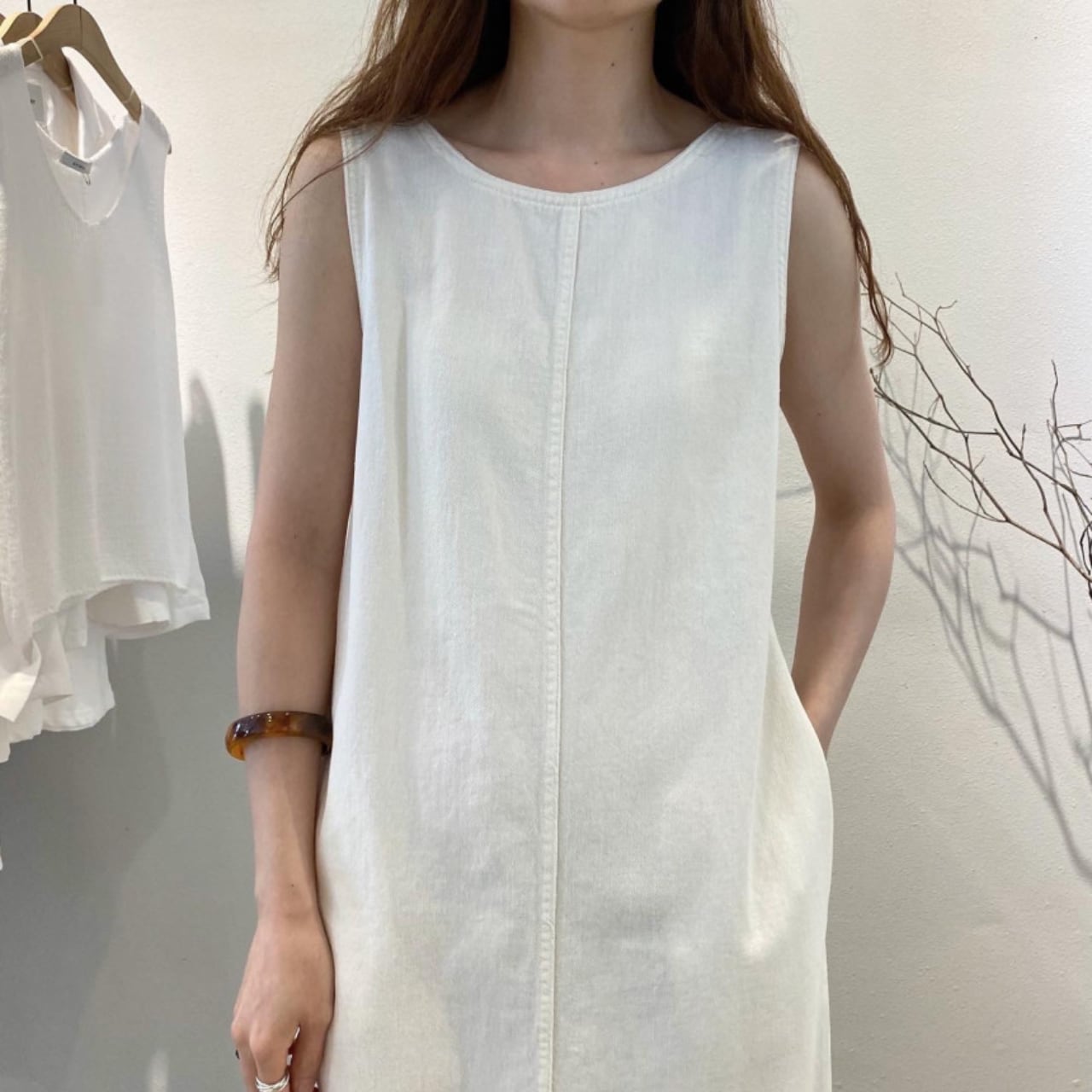 ・シンプルでありながら存在感のあるデニム素材を使用した、ホワイトとブルーの2色展開のロングワンピースです。