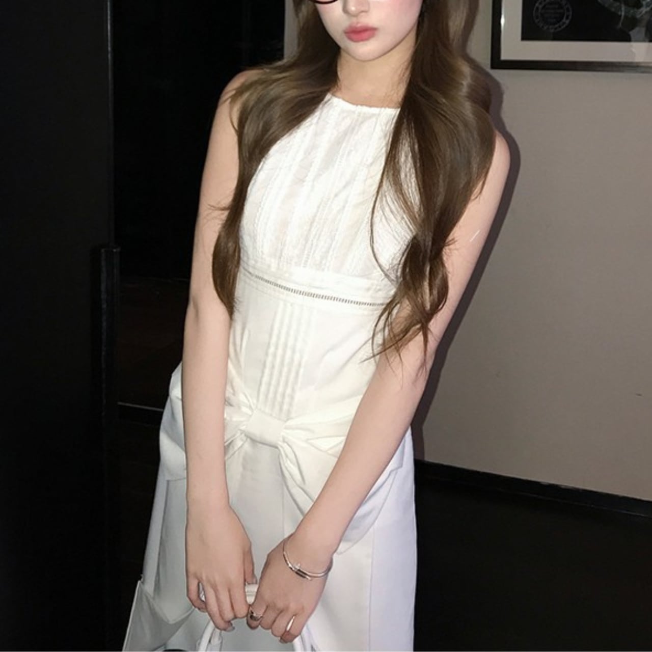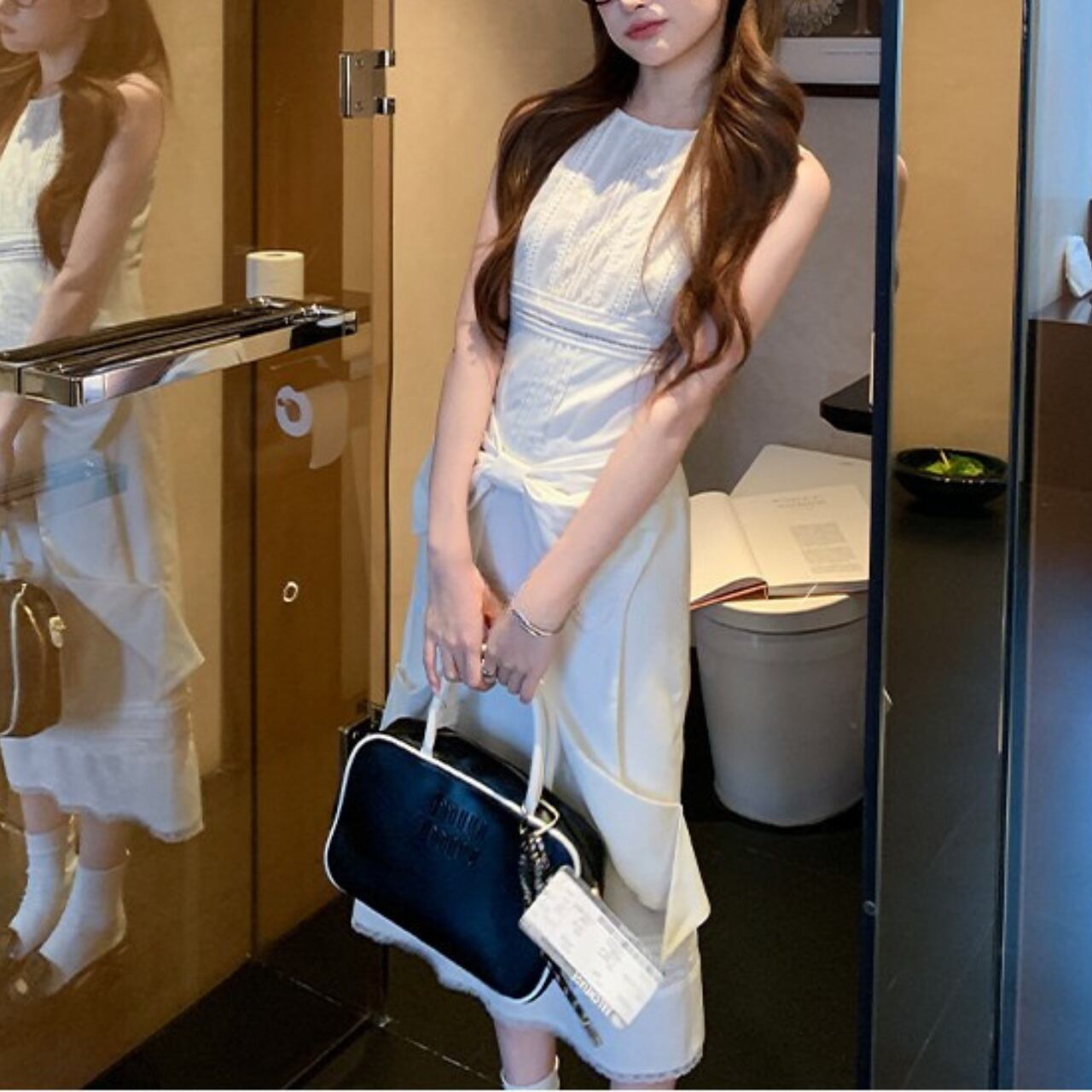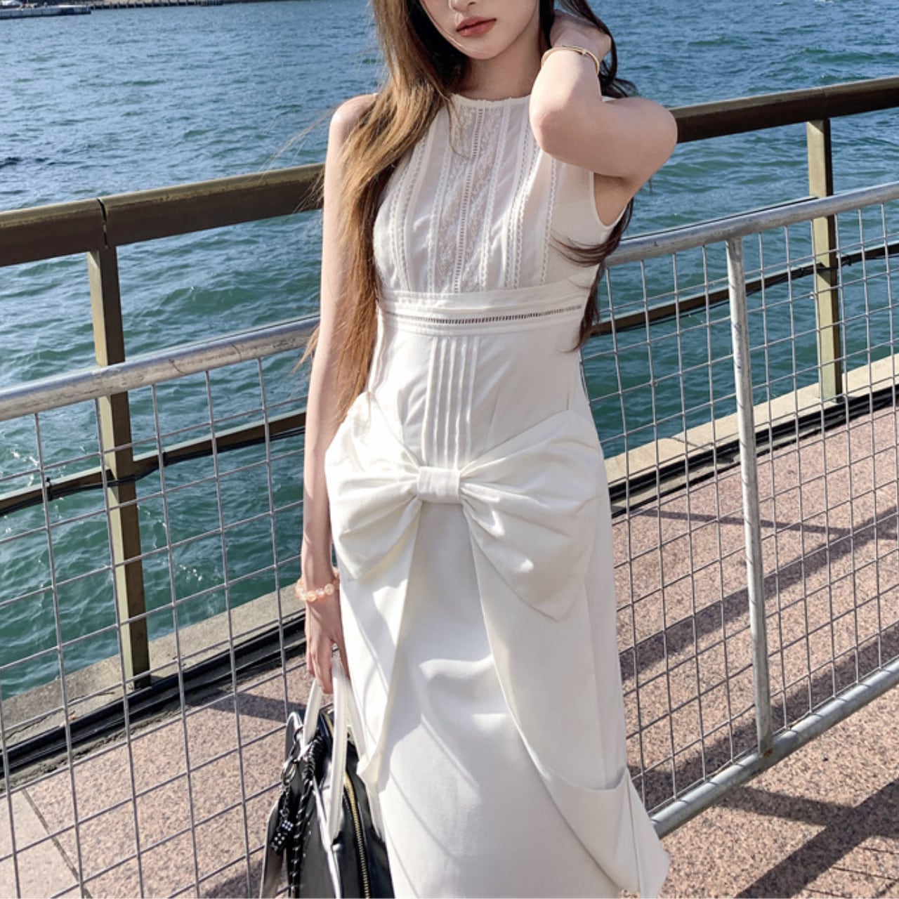 華やかさと着心地を兼ね備えたノースリーブリボンワンピース
