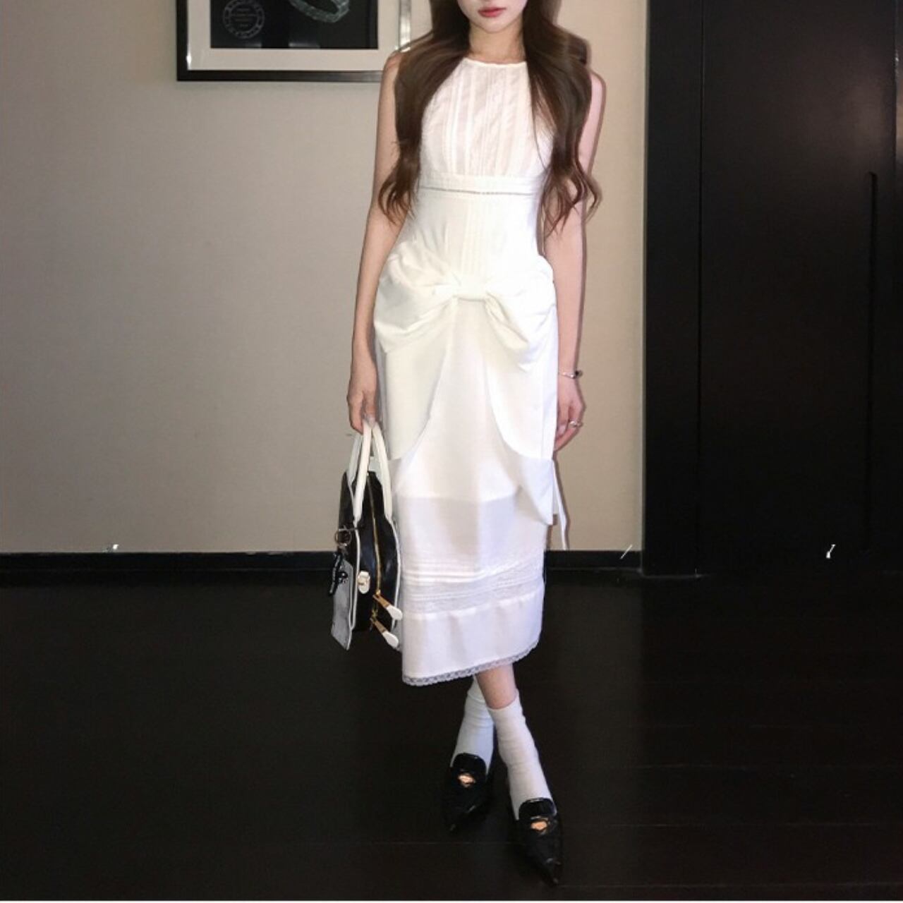 ・清楚感あふれるホワイトのノースリーブワンピースです。