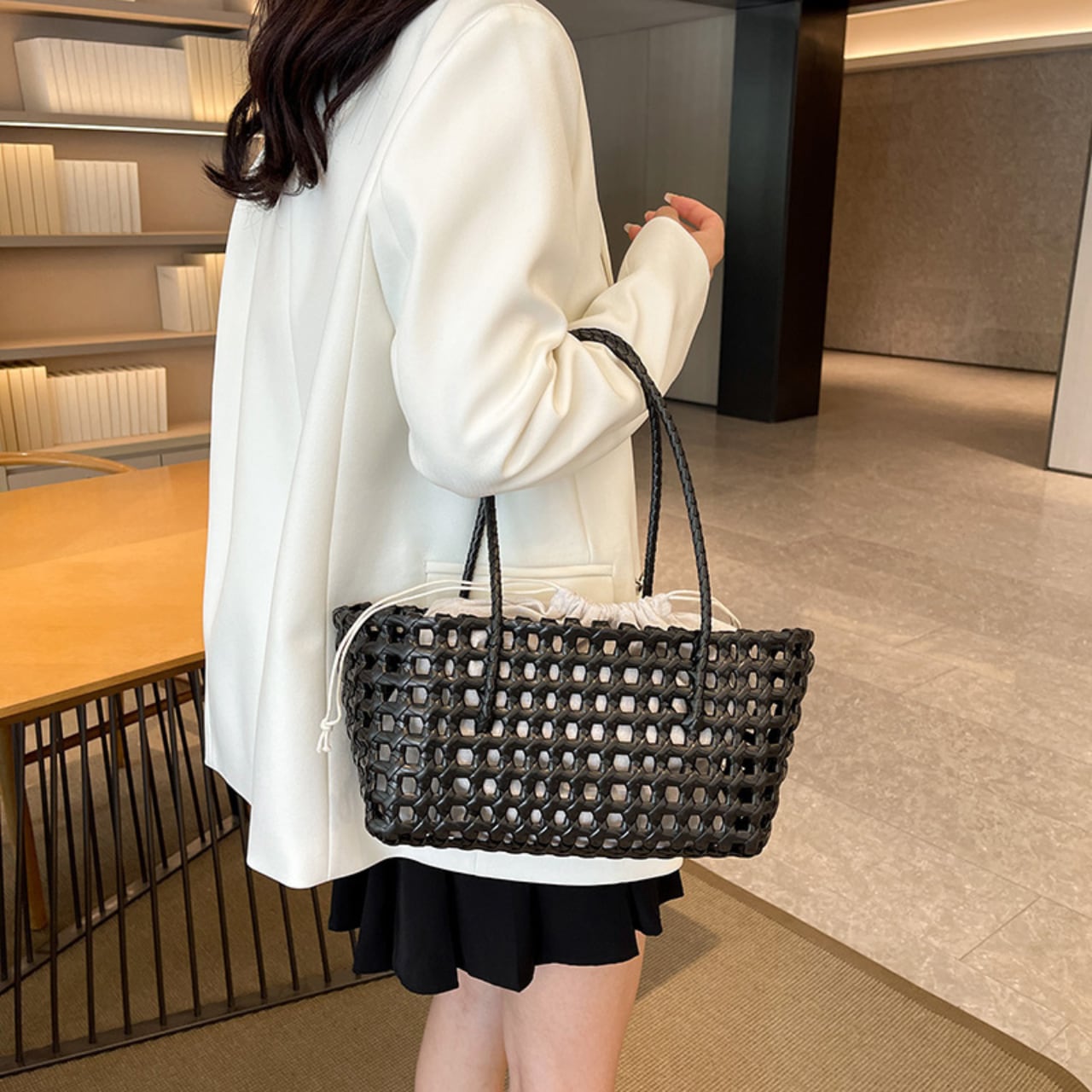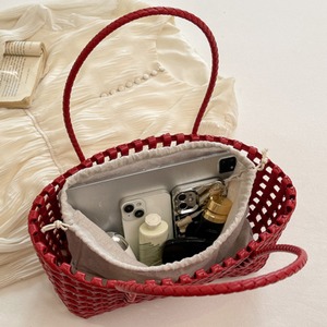 バッグは、脇下ショルダー仕様で、ゆったりとしたデザインが魅力です。軽量で持ち運びやすく、必要なものをすっきり収納できるバスケットバッグスタイルは、デイリー使いやお出かけにぴったり。選べるカラーバリエーションは、あなたのコーディネートに彩りを添え、どんなシーンでも活躍します。編み目のデザインが抜け感を演出し、シンプルながらもスタイリッシュな存在感を放つ一品として、ぜひお楽しみください。