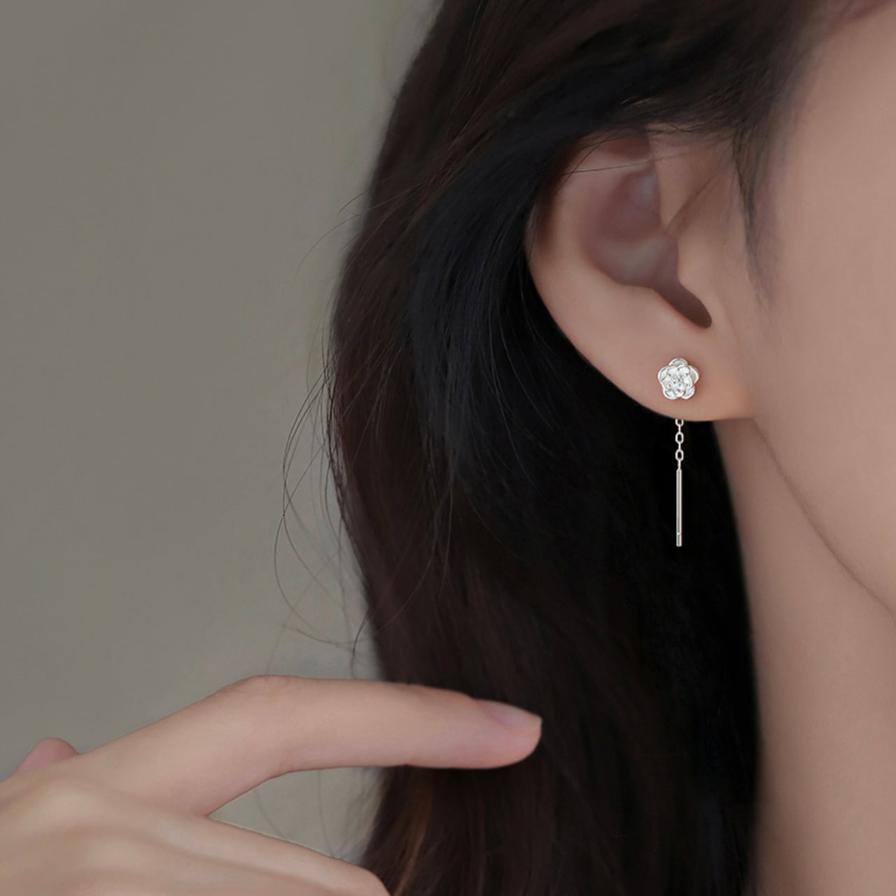 デイリーユースに最適なシルバーカメリアピアス