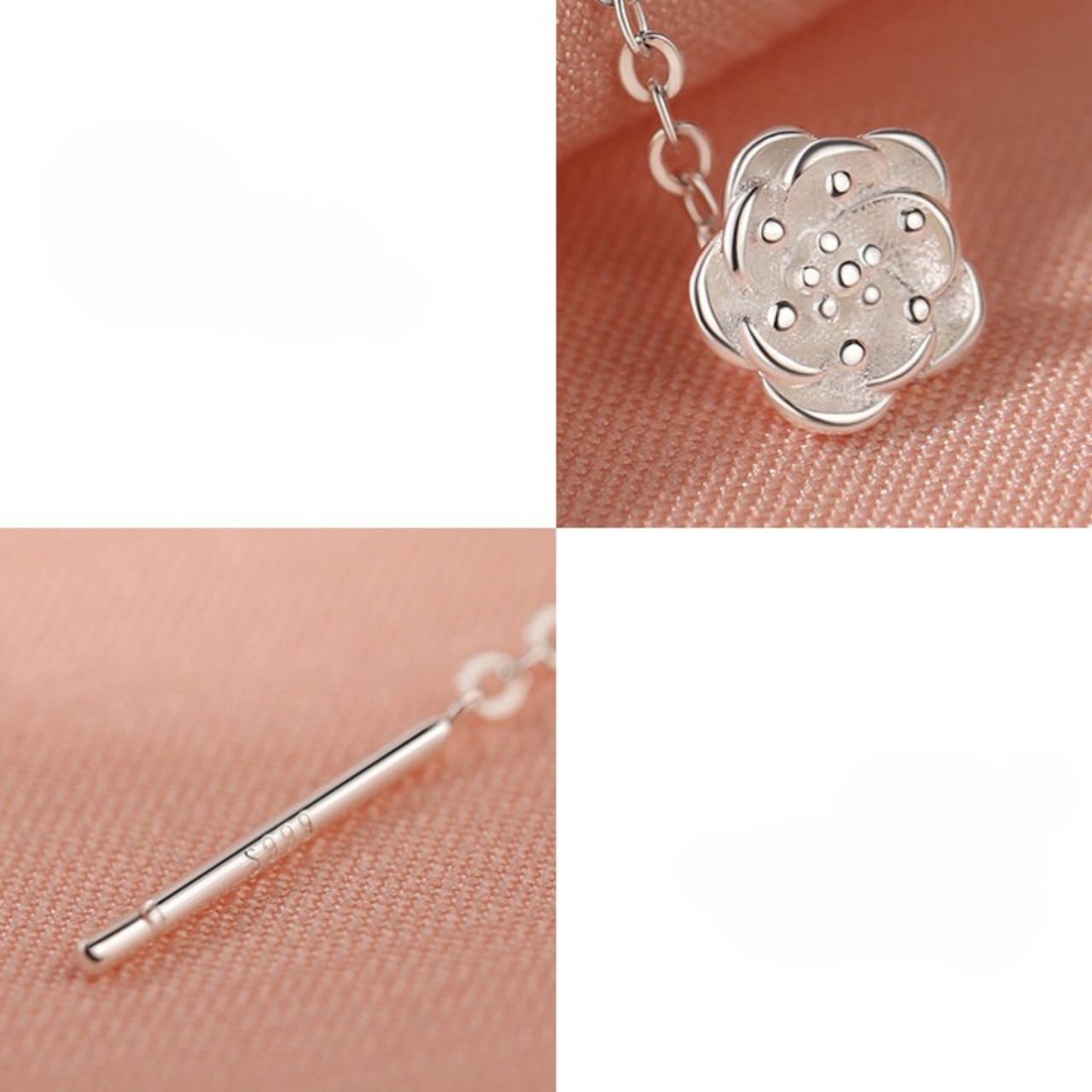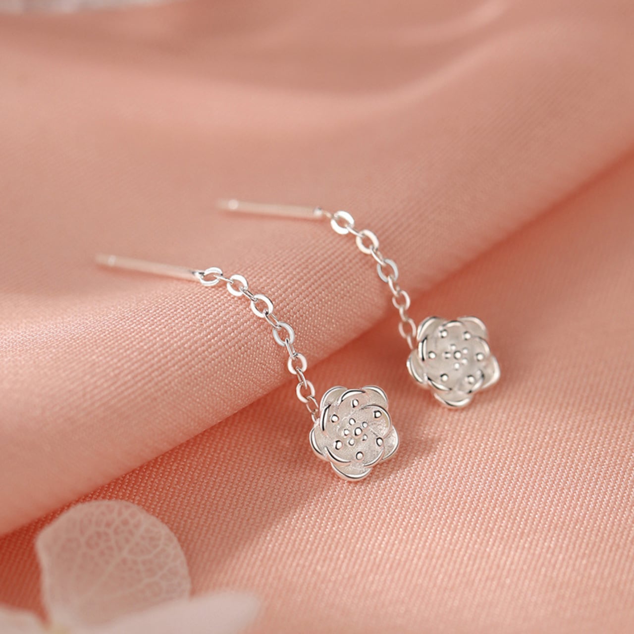 ・優雅で洗練された印象のシルバーカメリアピアスです。