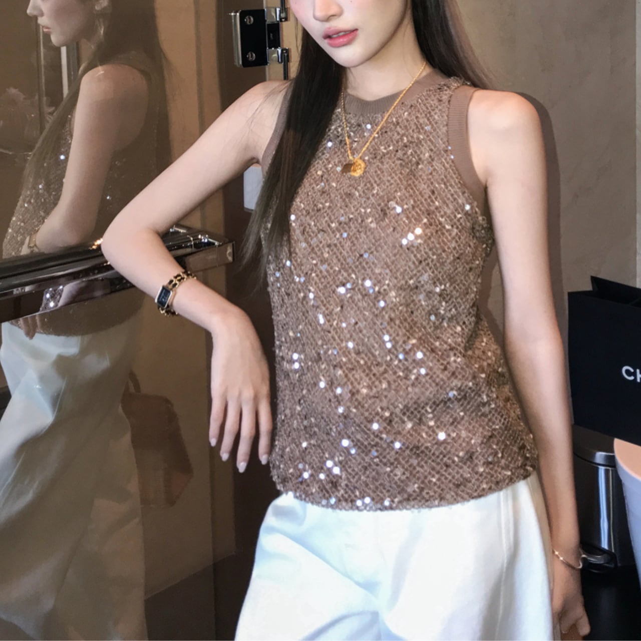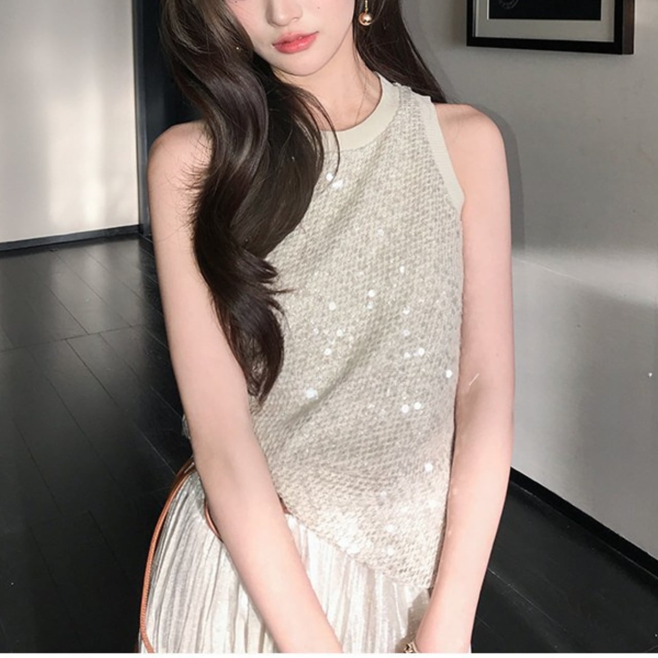 スパンコールノースリーブニット a140