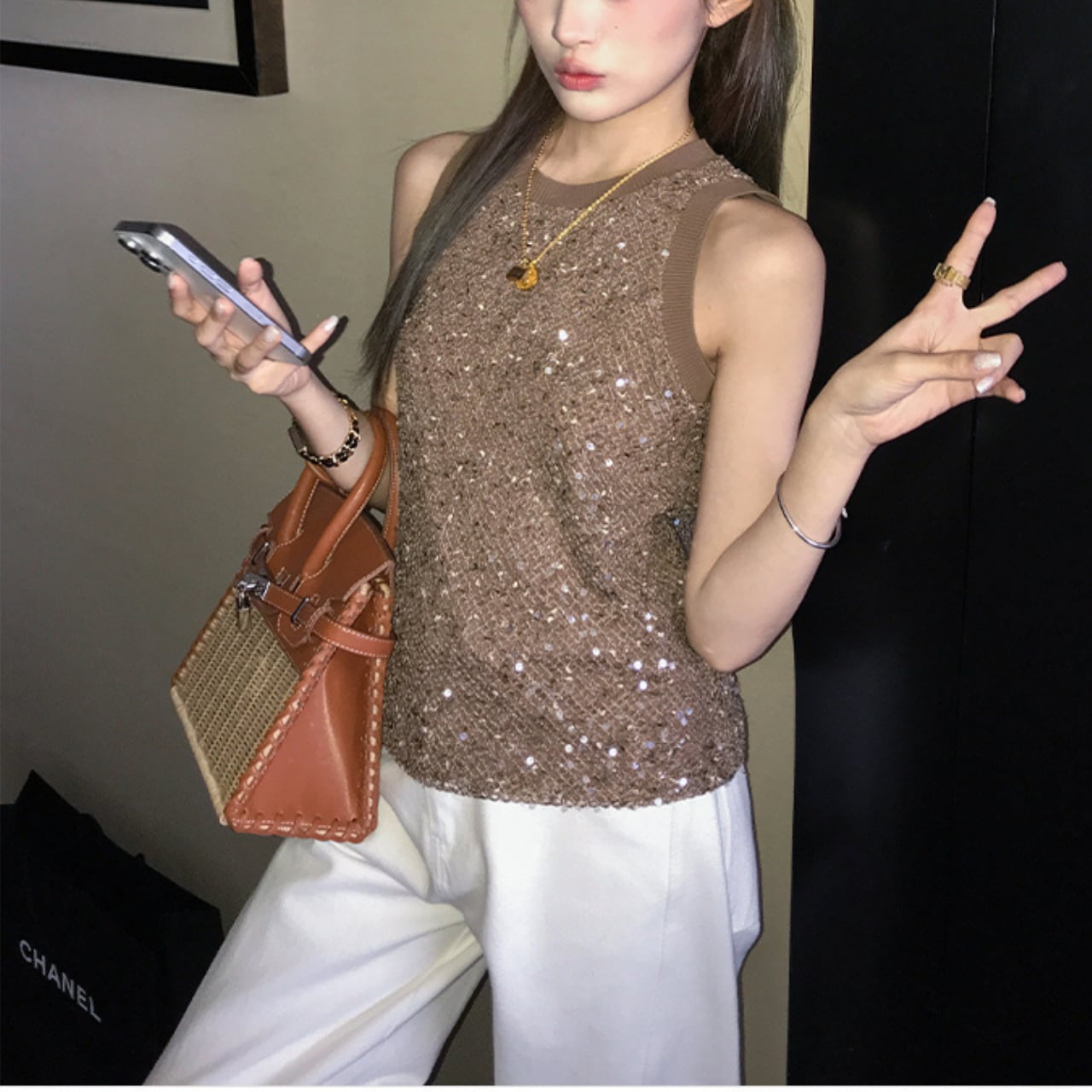 さりげなくきらめくスパンコールを編み込んだ、