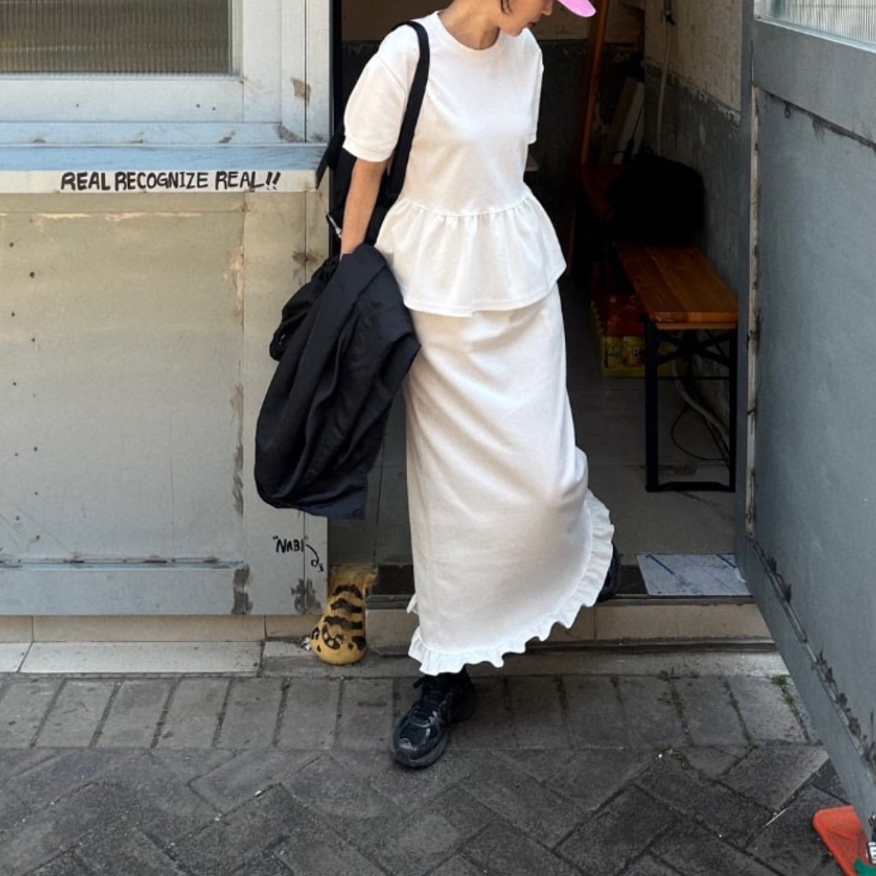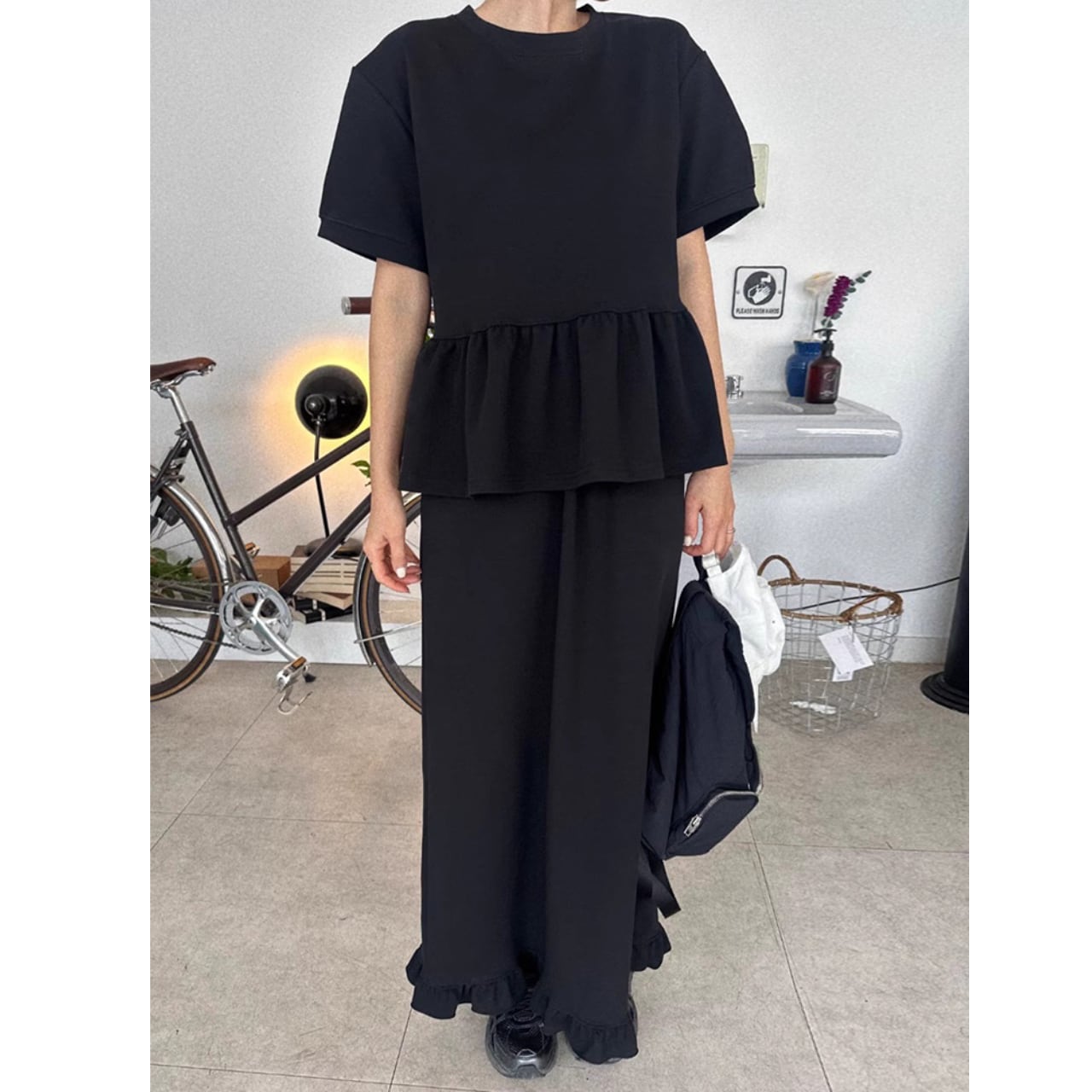 デイリーユースに最適なペプラムTシャツロングスカートセットアップ