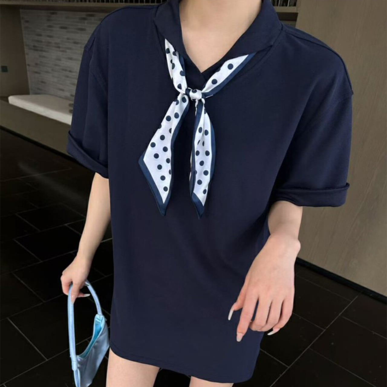 このスカーフ付きワンピースは、シンプルながらも存在感のあるデザインが魅力です。セーラーネックが顔周りを華やかに演出し、水玉蝶ネクタイがアクセントとなります。伸縮性のある素材を使用しており、快適な着心地で、日常のコーディネートにぴったりの一着です。ワンピースとしてはもちろん、カジュアルなコーディネートにも合わせやすいアイテムです!