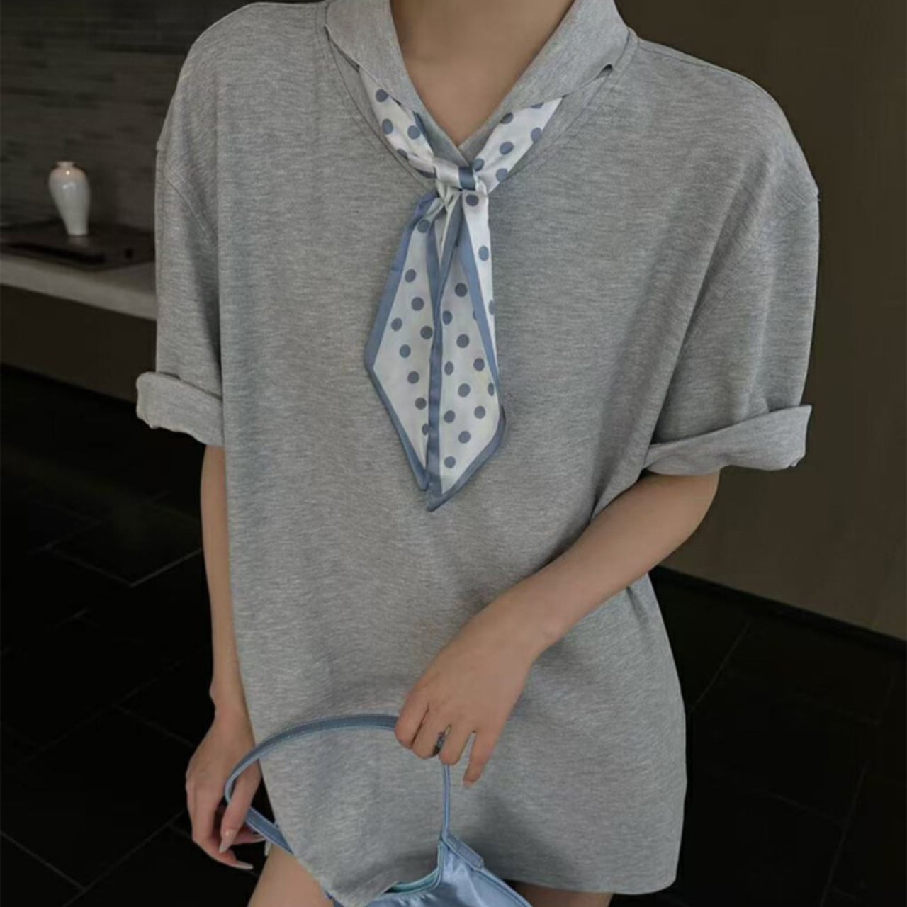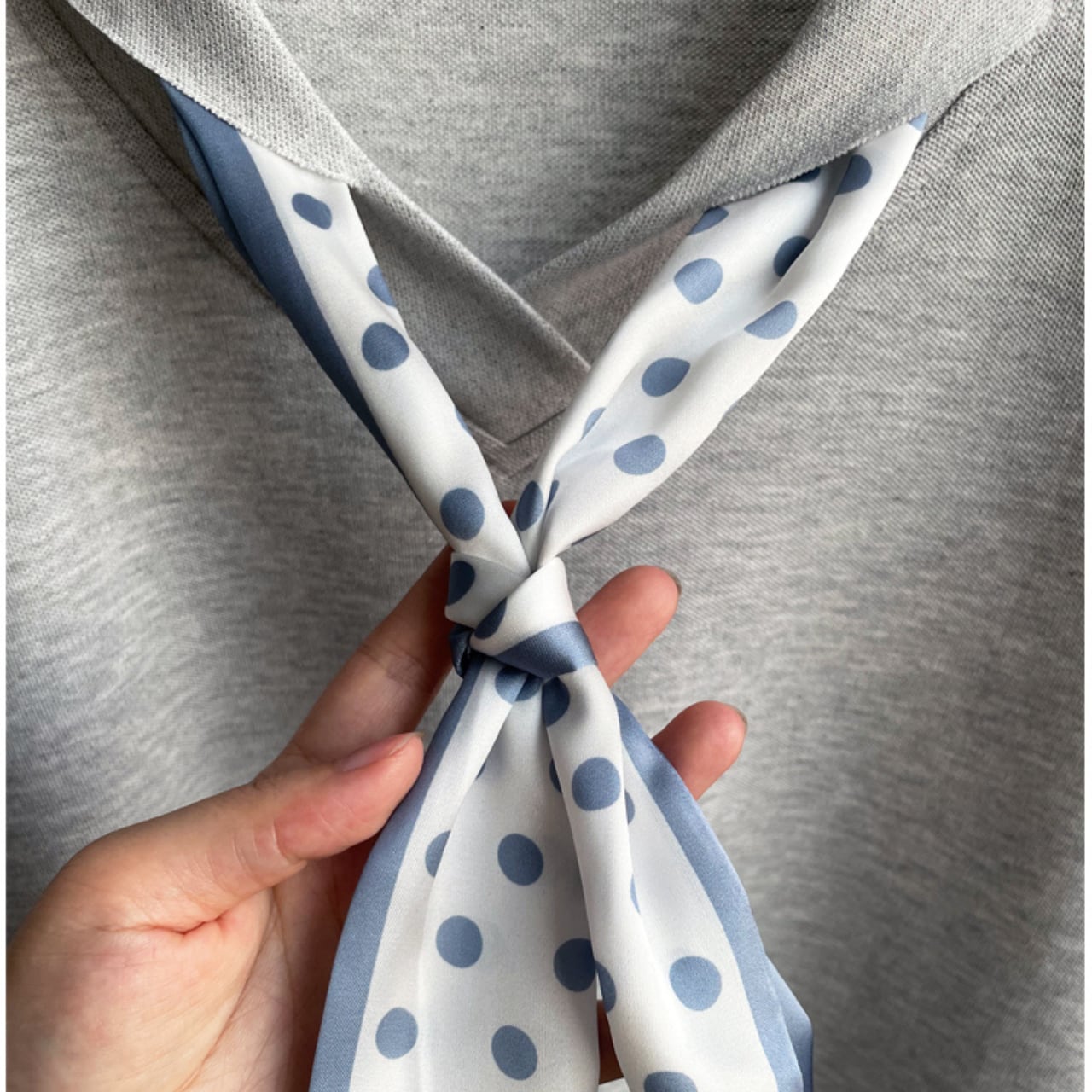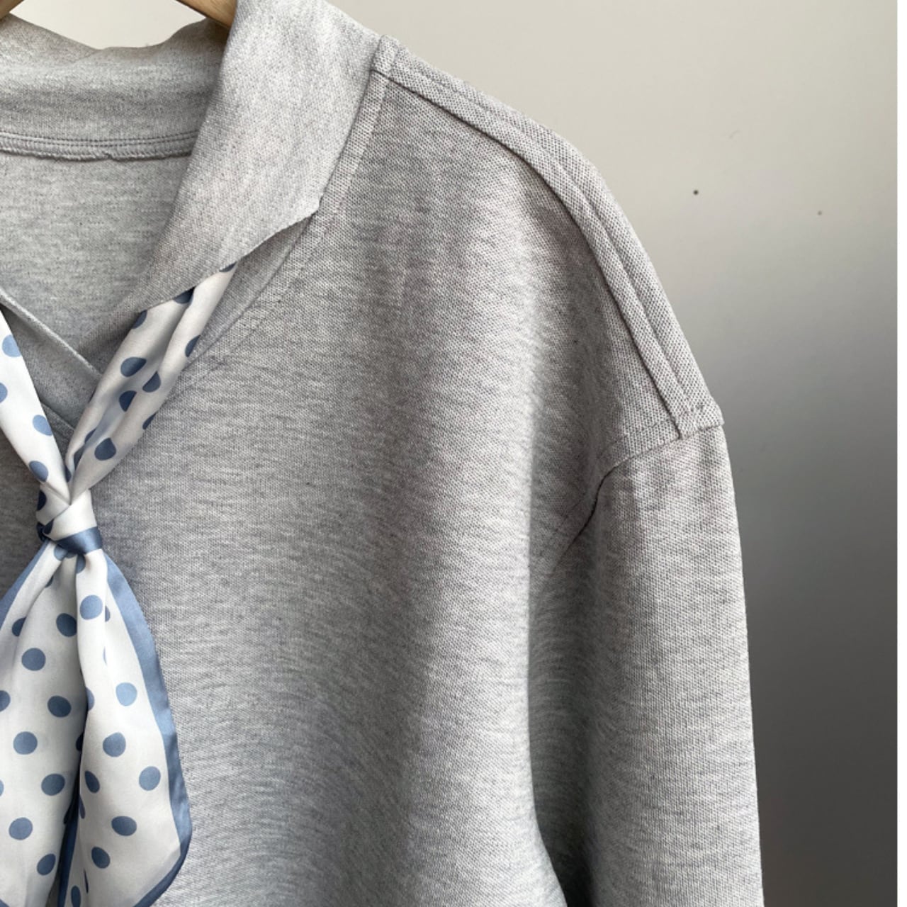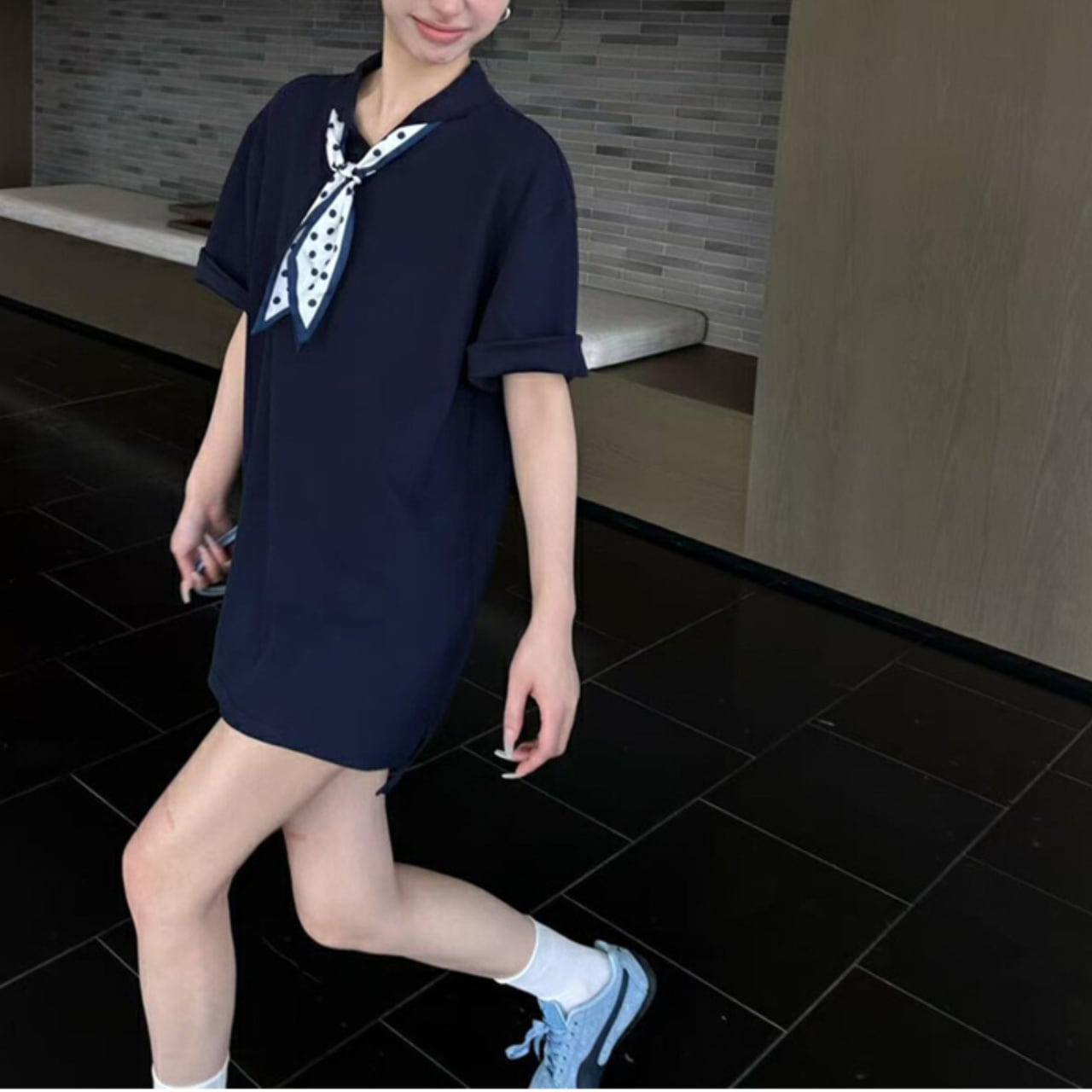 ・水玉蝶ネクタイデザインが可愛らしい、スカーフ付きのセーラーネックロングTシャツワンピースです。グレーとネイビーの2色展開で、MとLのサイズが揃っており、自分にぴったりのスタイルを楽しむことができます。