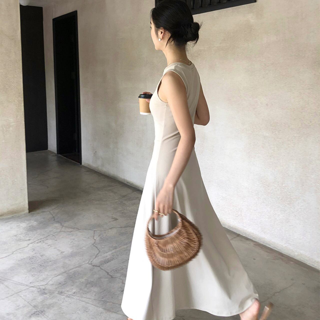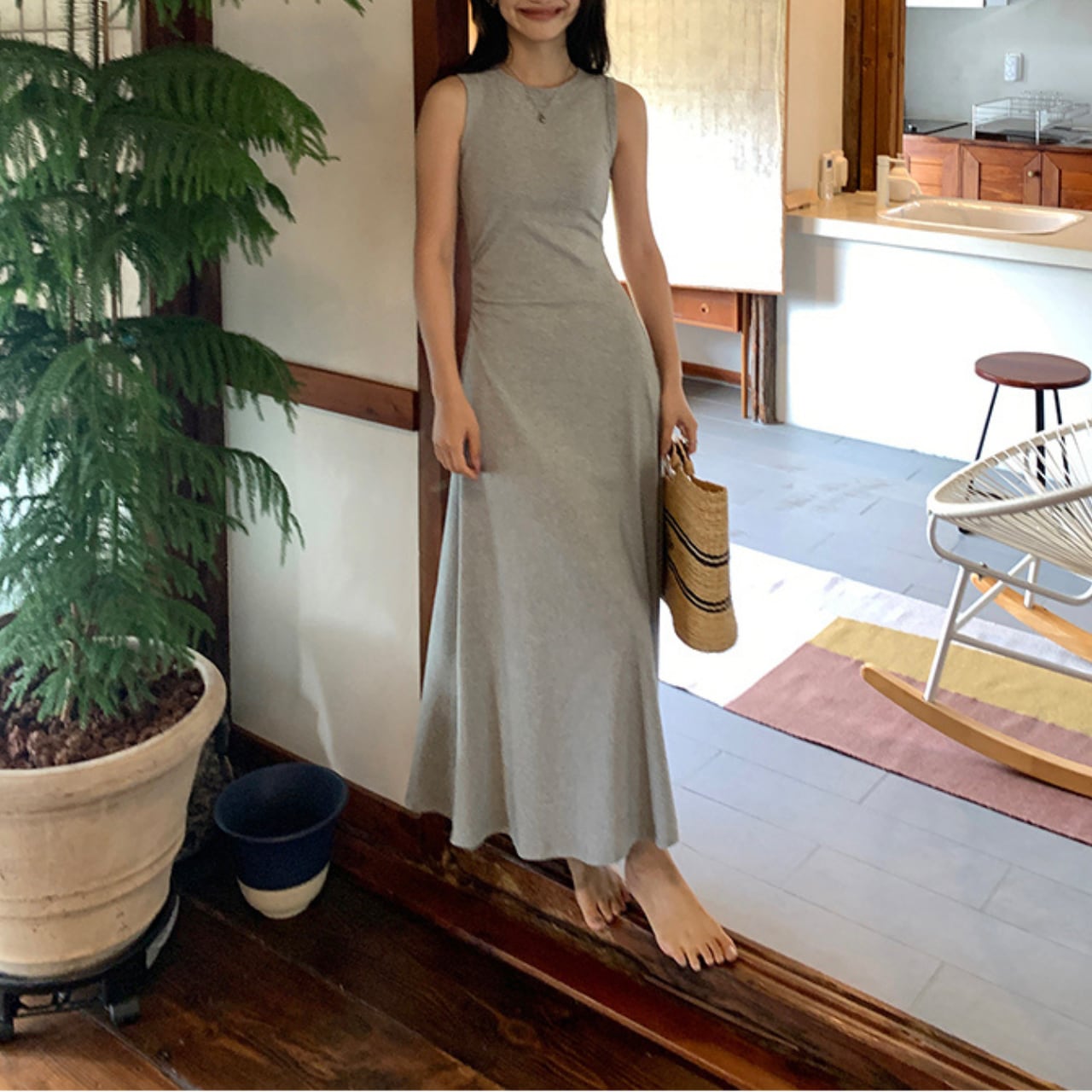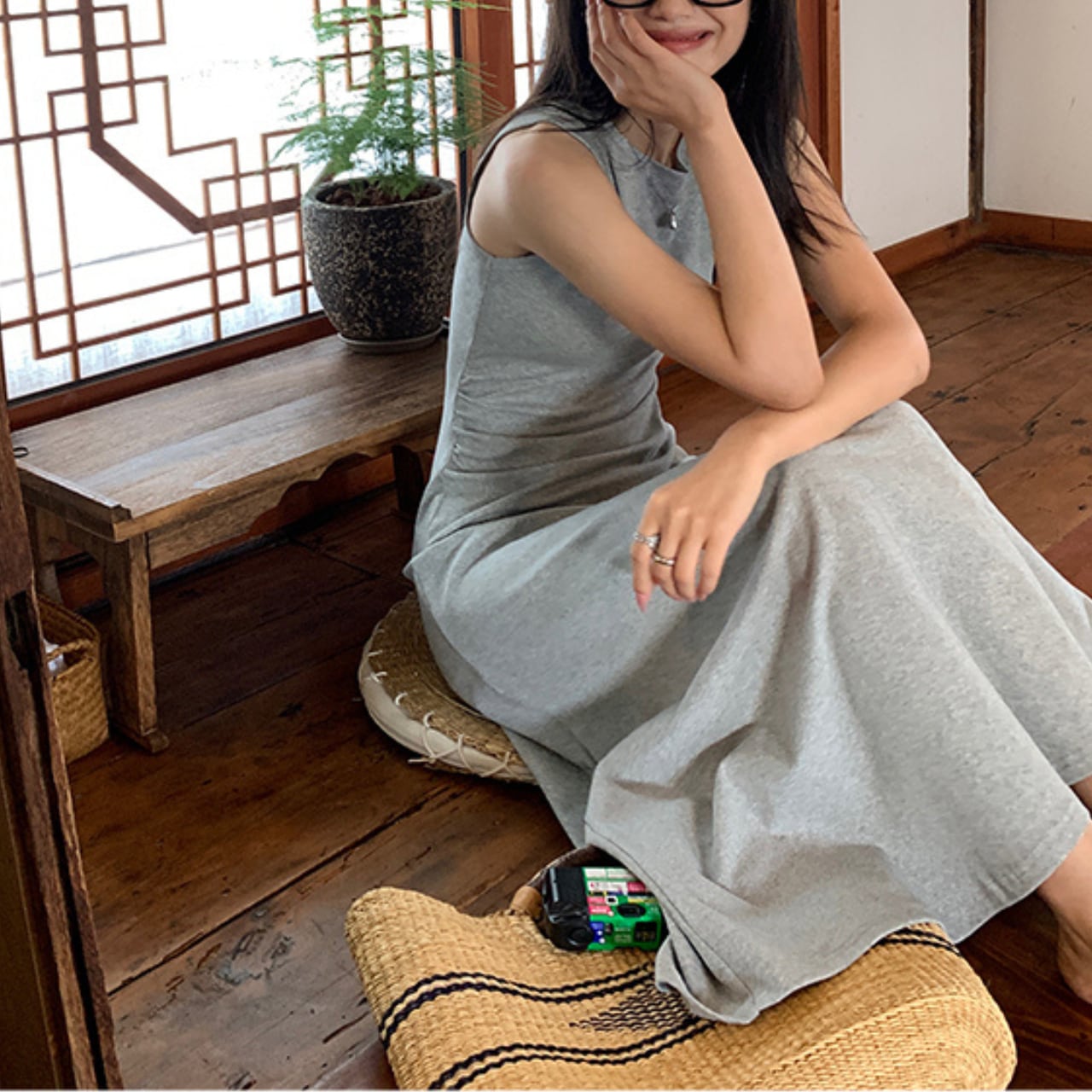 ・シンプルでありながらスタイリッシュなノースリーブロングワンピースです。グレー、ブラック、ベージュの3色展開があり、SからLまでのサイズが揃っているため、自分に合ったスタイルを楽しむことができます。