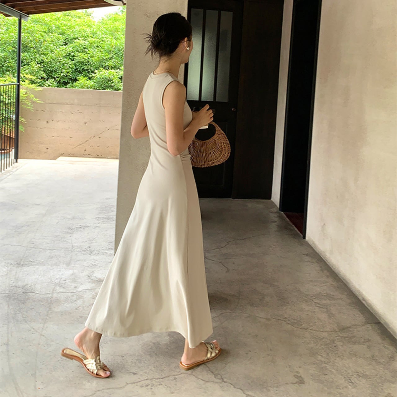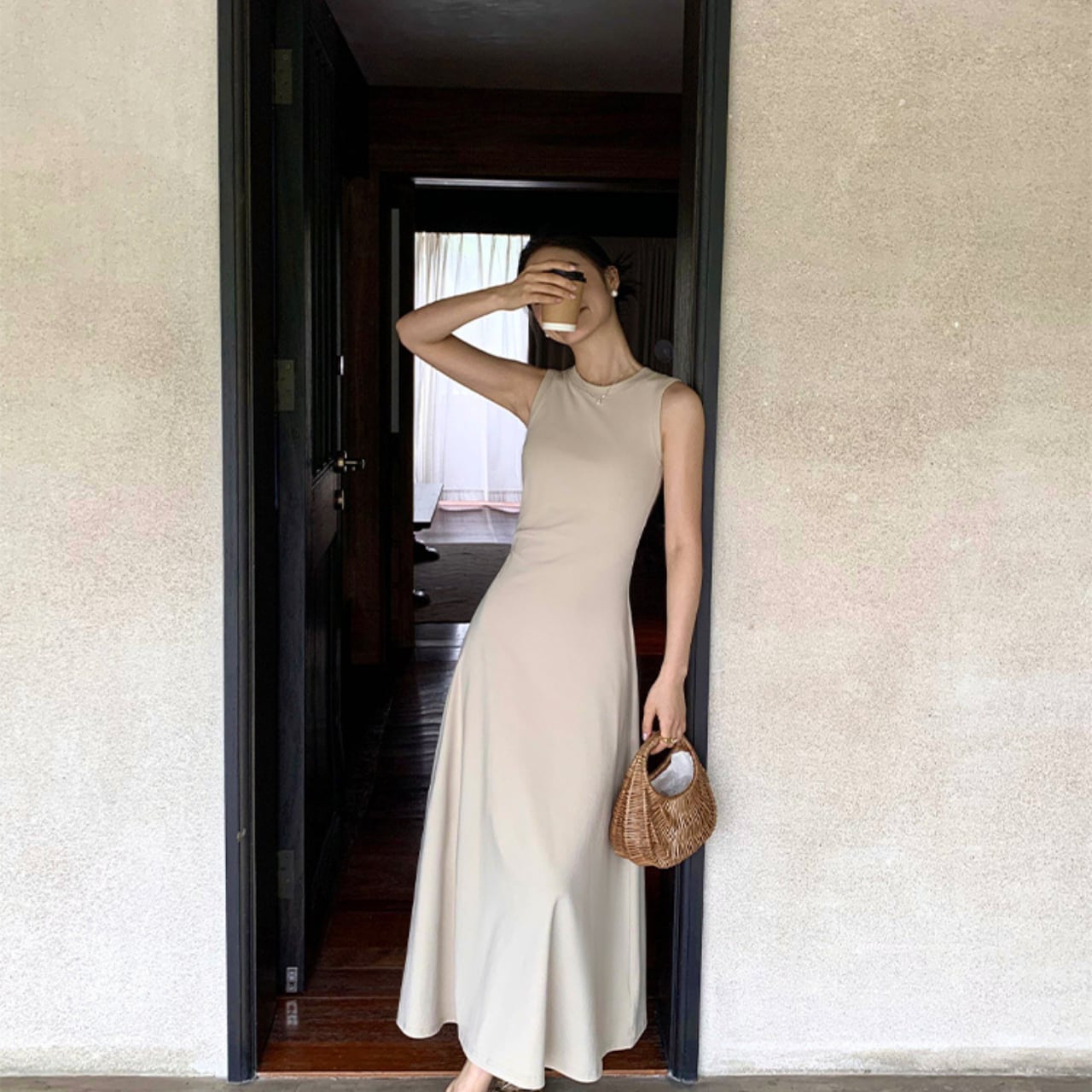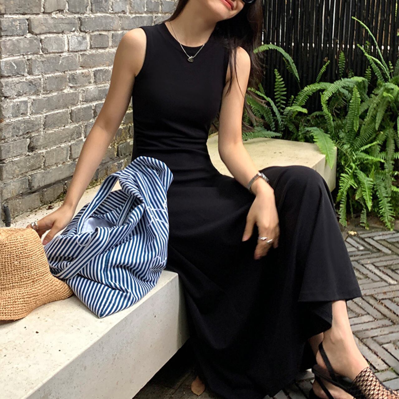 ・シンプルでありながらスタイリッシュなノースリーブロングワンピースです。グレー、ブラック、ベージュの3色展開があり、SからLまでのサイズが揃っているため、自分に合ったスタイルを楽しむことができます。