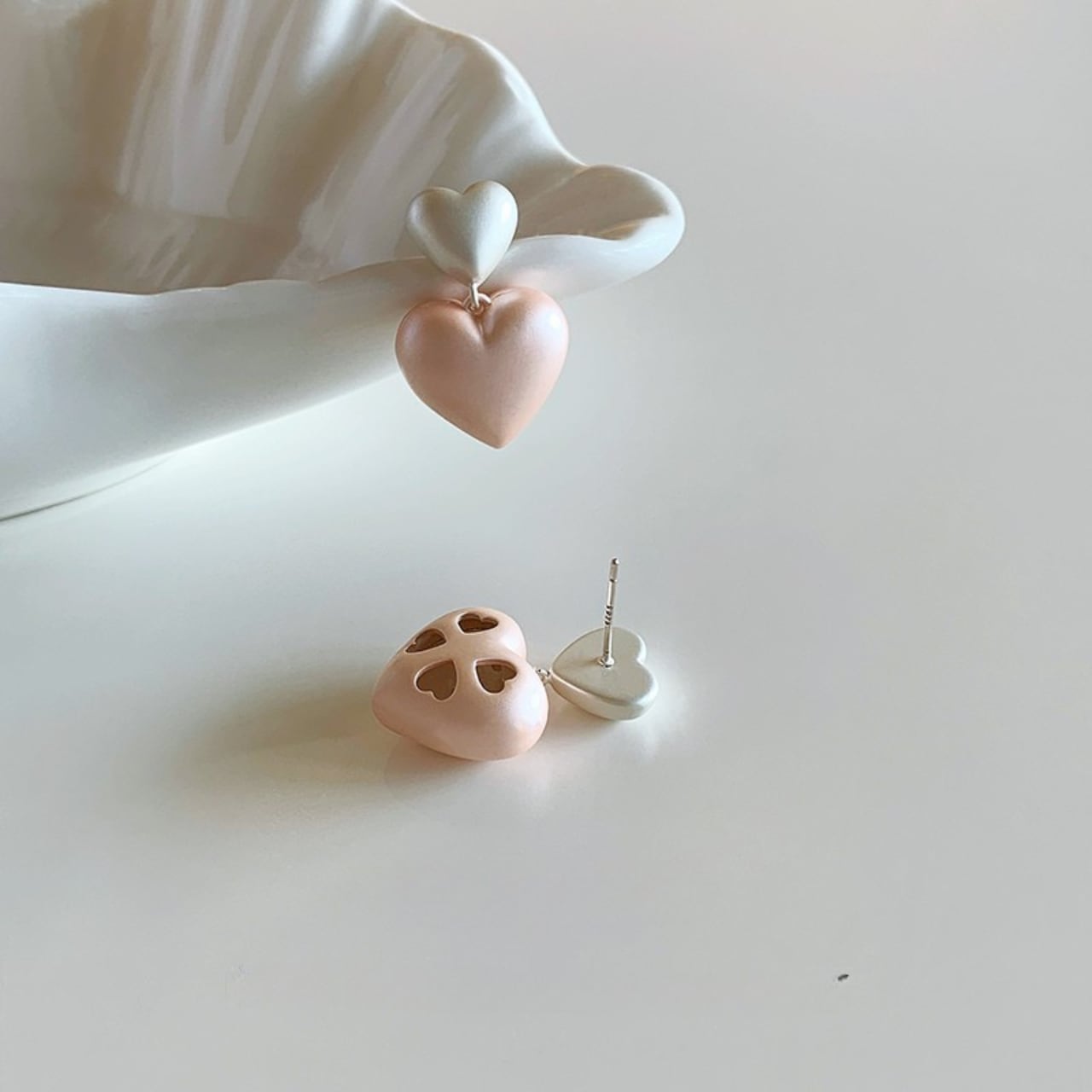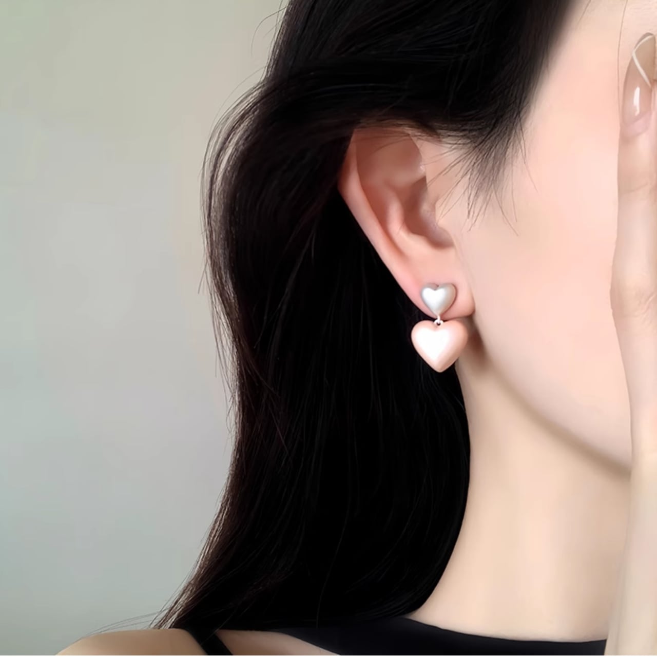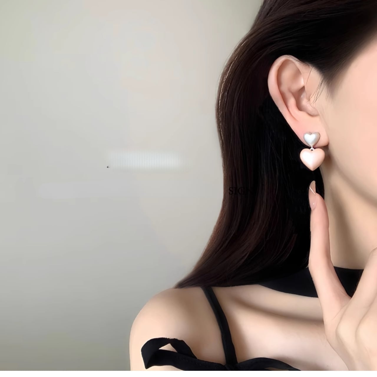 ・可愛らしいホワイトとピンクのダブルハートが耳元を華やかに彩るピアスです。シンプルながらも目を引くデザインで、デイリーユースから特別なシーンまで幅広く活躍します!愛らしいハートの形が、あなたのスタイルに柔らかさをプラスしてくれます。
