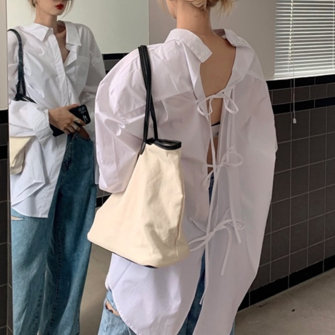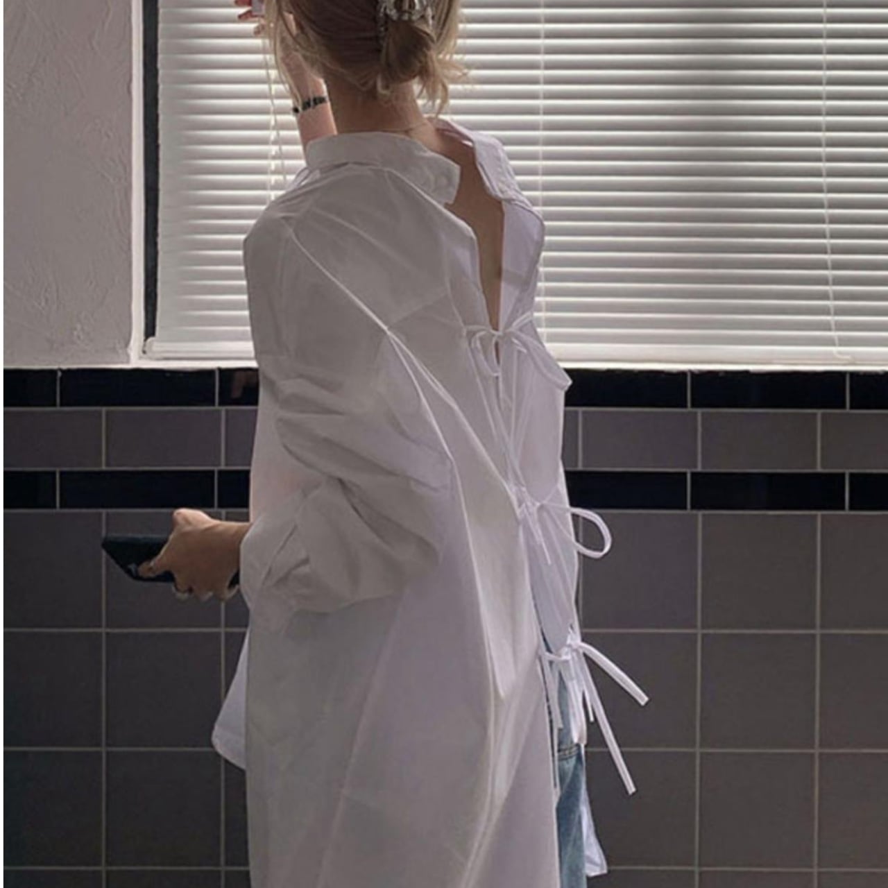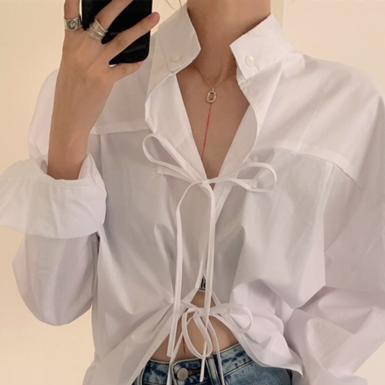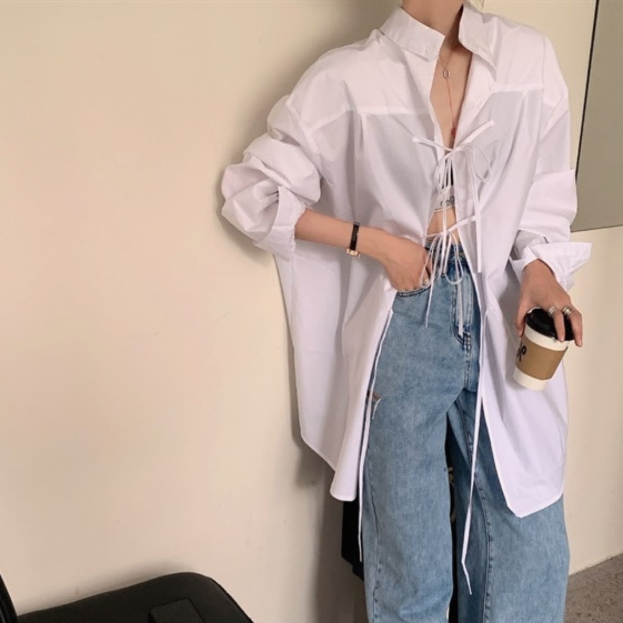 デイリーユースに最適なオーバーサイズリボンシャツ