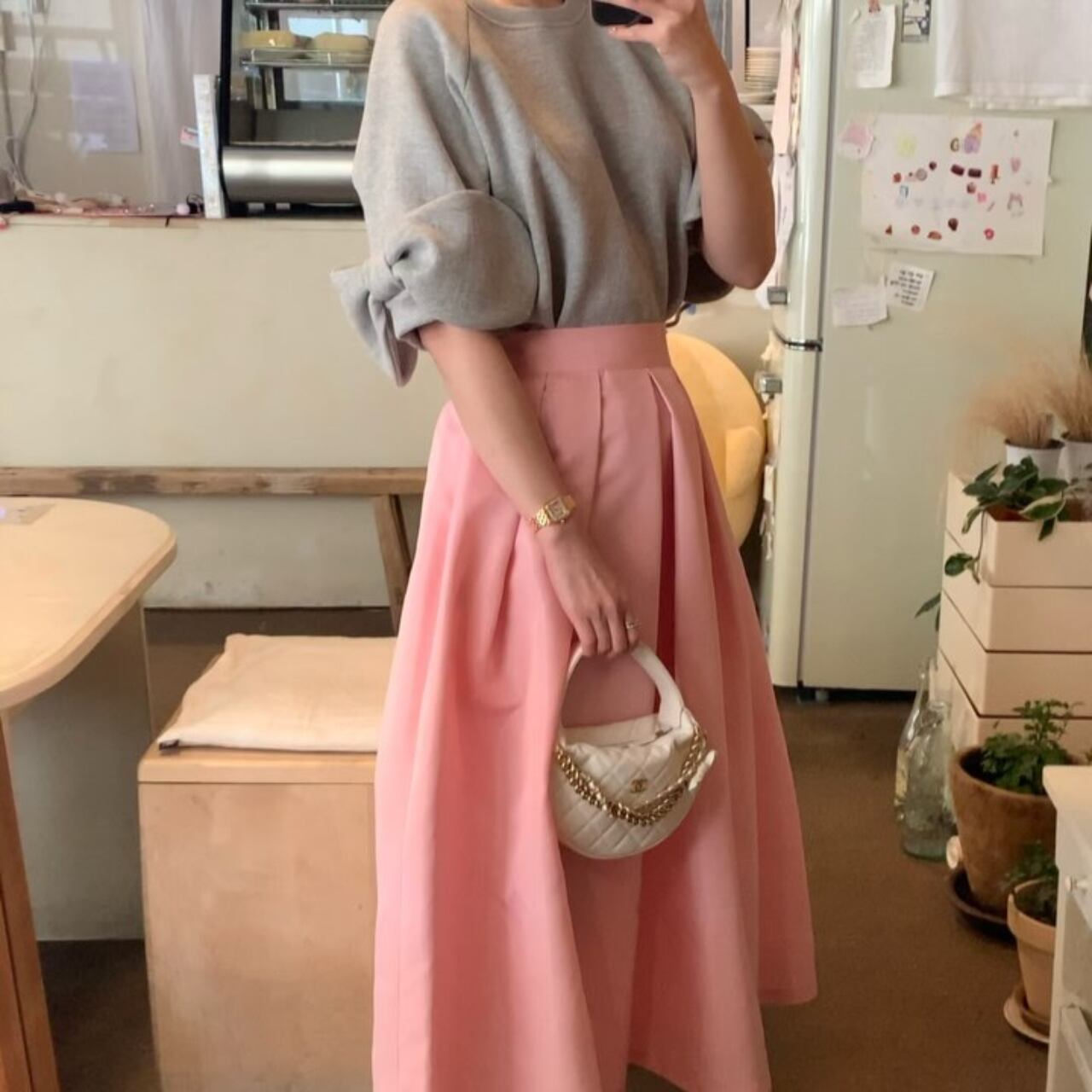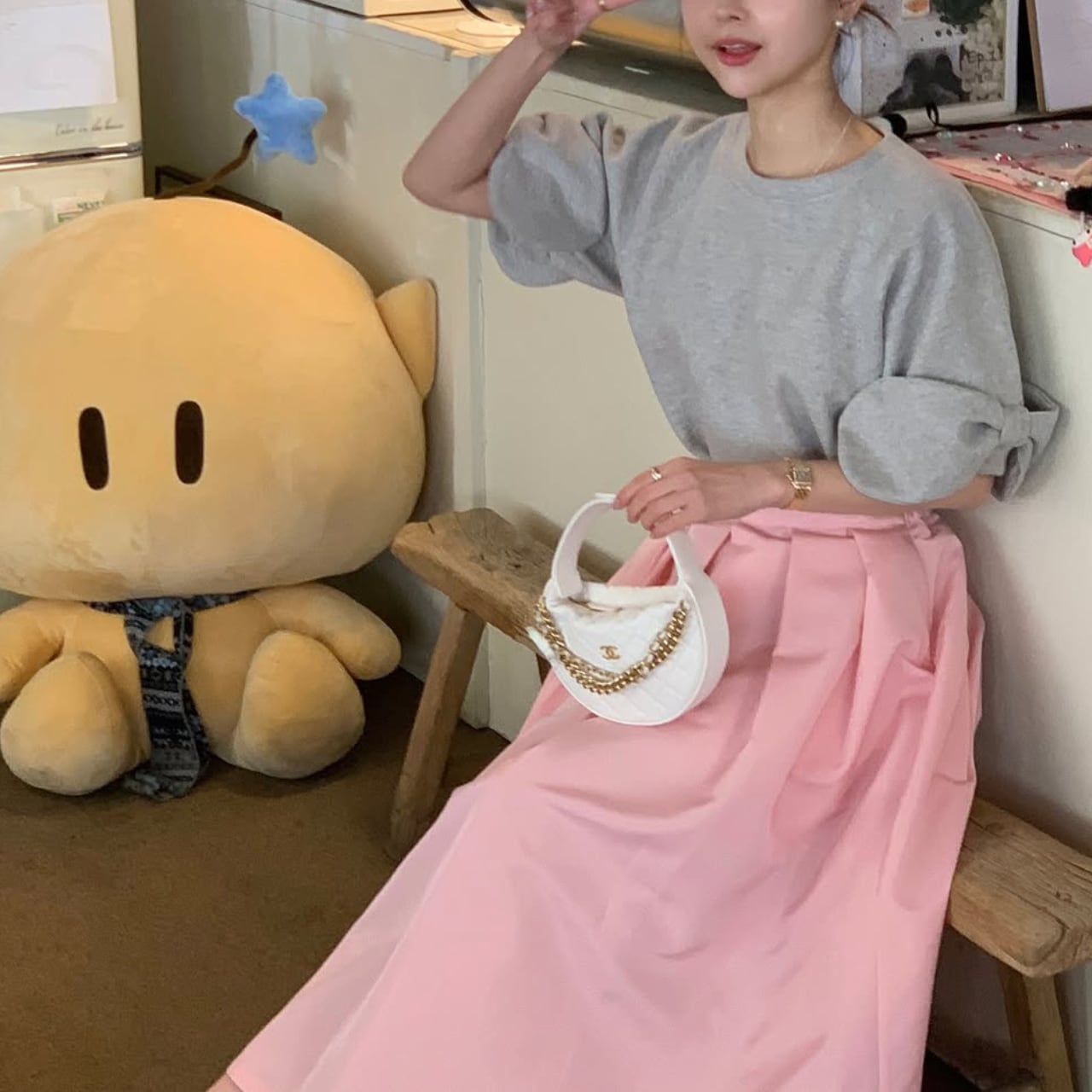 このスウェットはポリエステル100%の素材を使用しており、軽やかで快適な着心地を実現しています。着丈約50cm、バスト約53cm、袖丈約35cmのワンサイズ展開で、リラックス感のあるシルエットが魅力です!リボンのデザインが、シンプルなコーディネートにひとさじの華やかさを加えます。