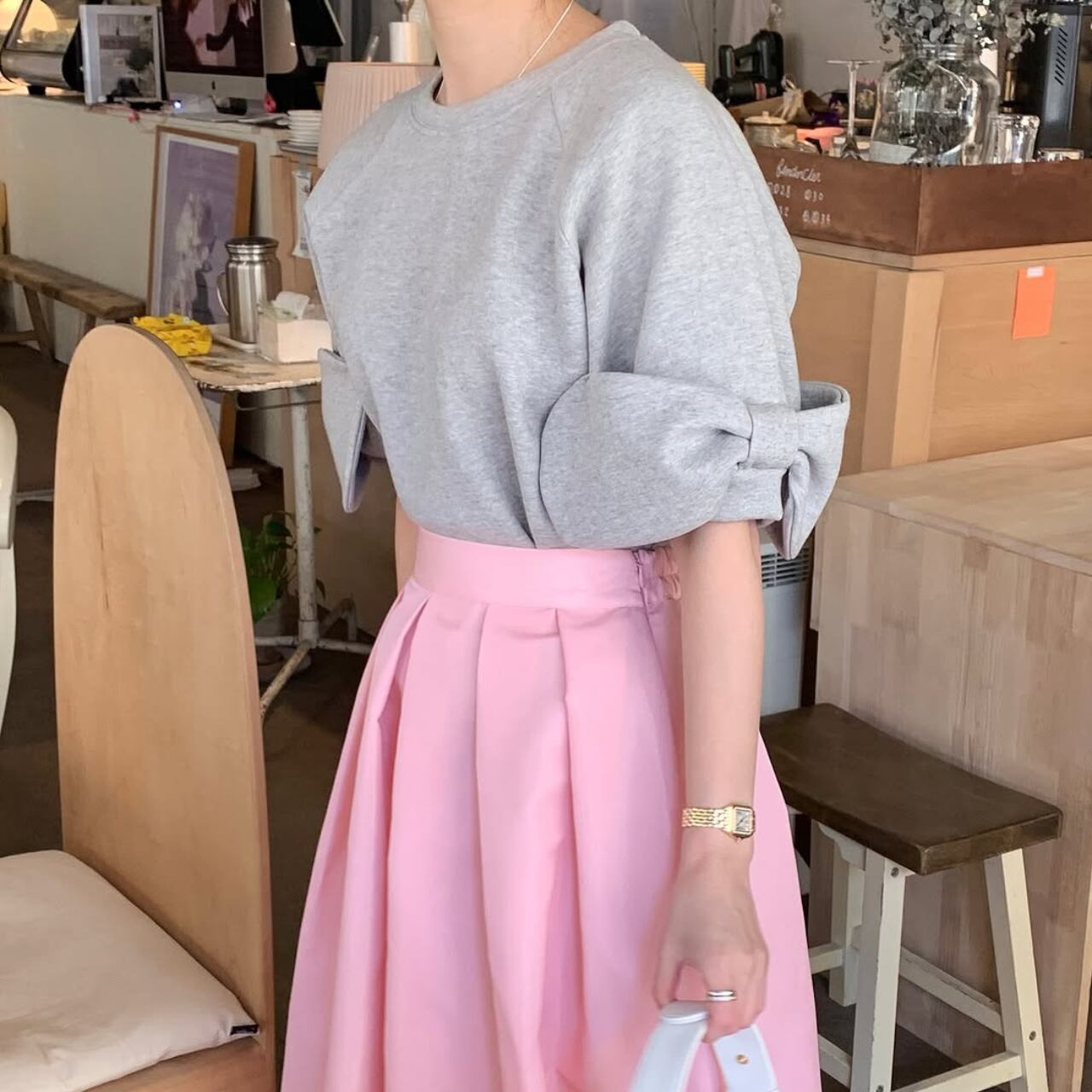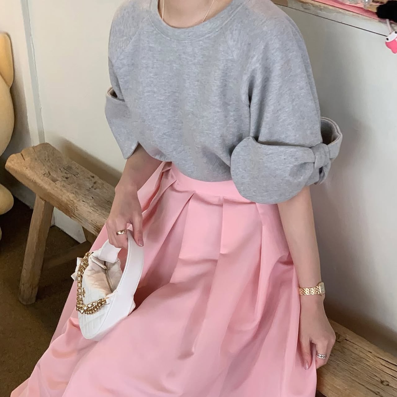 ・スタイリッシュなグレーのスウェットは、袖に施されたリボンが女性らしさを際立たせるデザインです!カジュアルでありながら、ちょっとしたお出かけにもぴったりの一枚です。特別な日のおしゃれにも最適です!