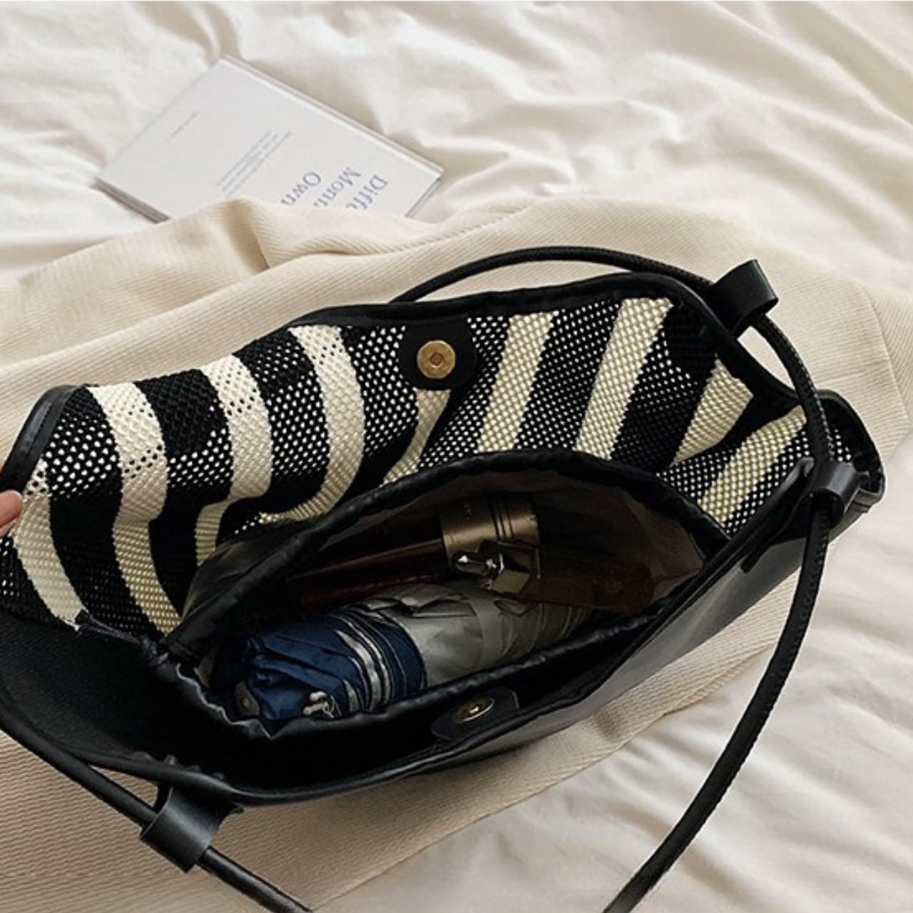 デイリーユースに最適なストライプメッシュバッグ