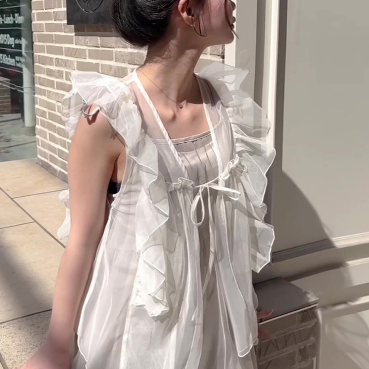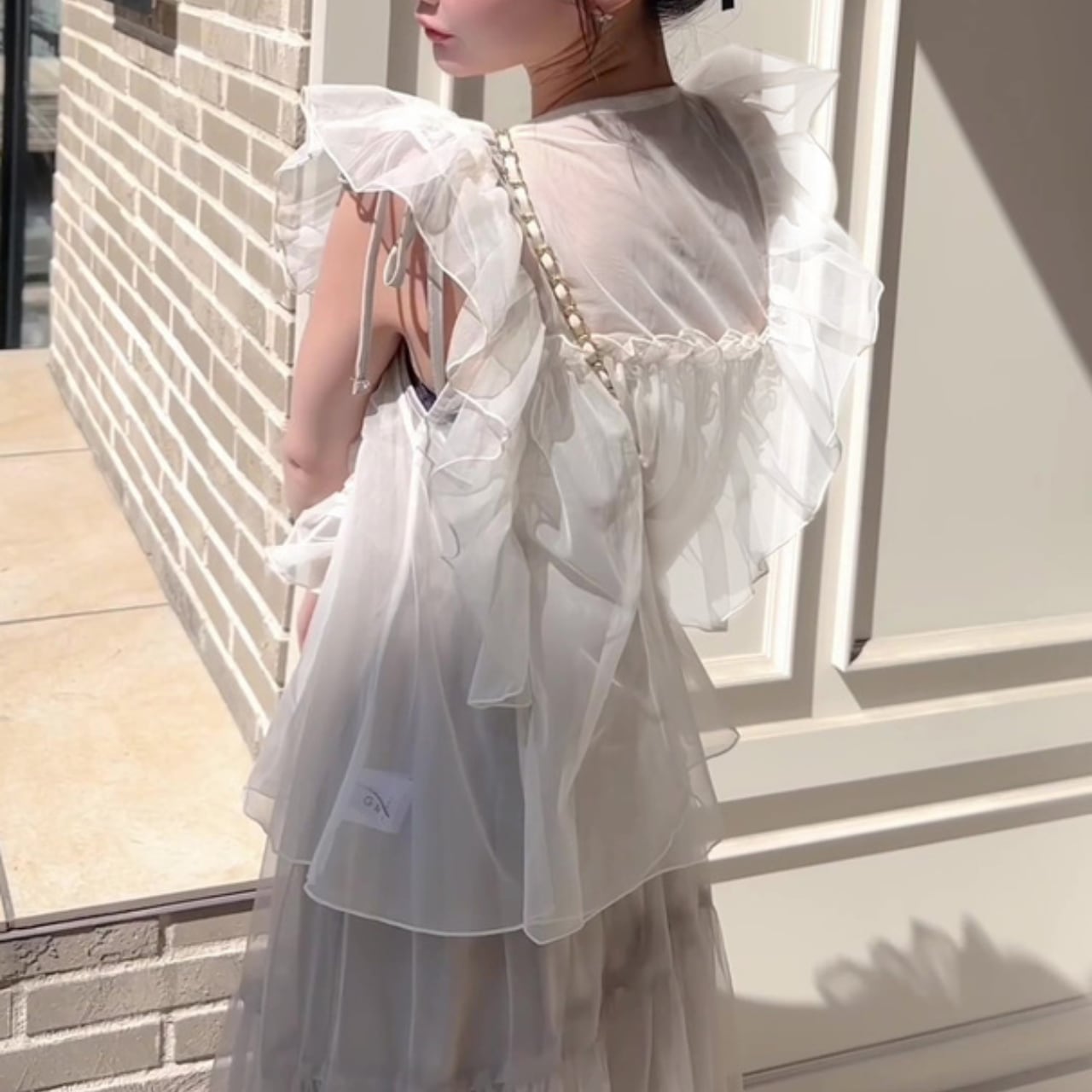 デイリーユースに最適なシースルーフリルブラウス