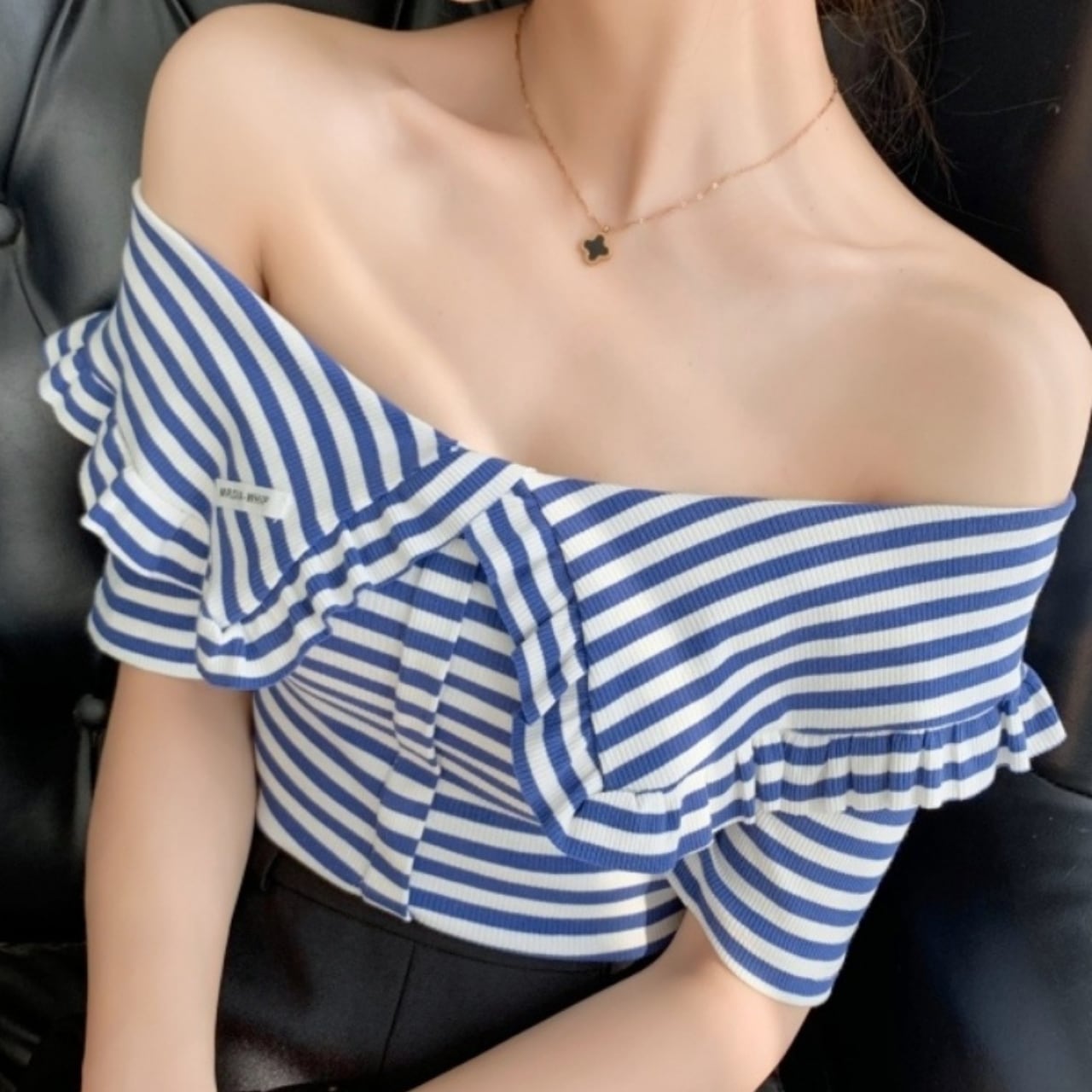 ストライプ オフショルダー トップス a205