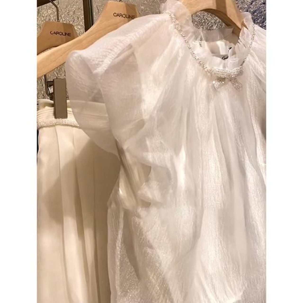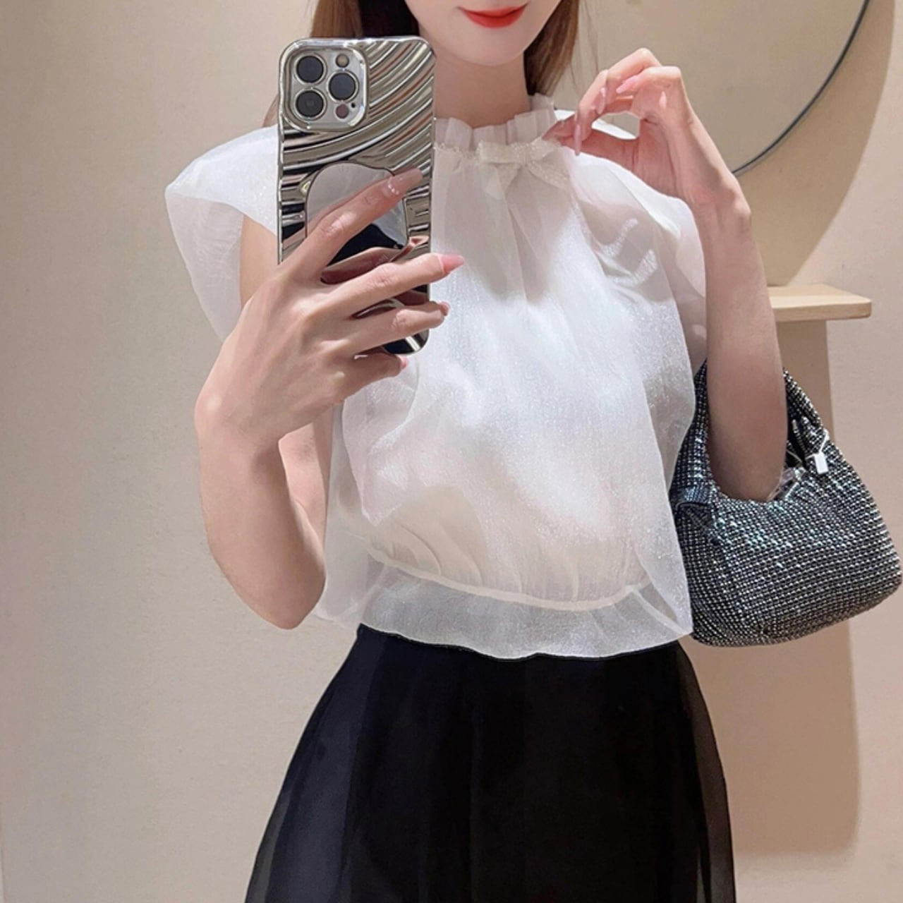 このブラウスは、カジュアルな日常からお出かけ、特別なイベントまで、幅広く使えるアイテムです。自分にぴったりなサイズを選ぶことで、快適な着心地を実感できます。軽やかなオーガンジーデザインが、涼しげでありながらも女性らしさを引き立ててくれる一品です。
