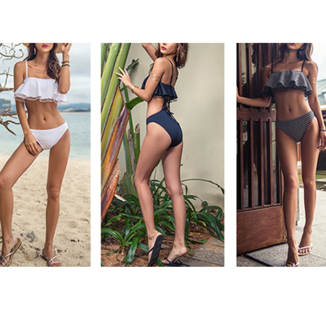 ・ビキニ風デザインのワンピーススイムウエアが登場しました!ブラック、ホワイト、チェック柄の3つのスタイリッシュなデザインが揃っており、夏のビーチやプールでのコーディネートを一層引き立てます。MからXLまでの幅広いサイズ展開で、様々な体型の方にぴったりフィットします。