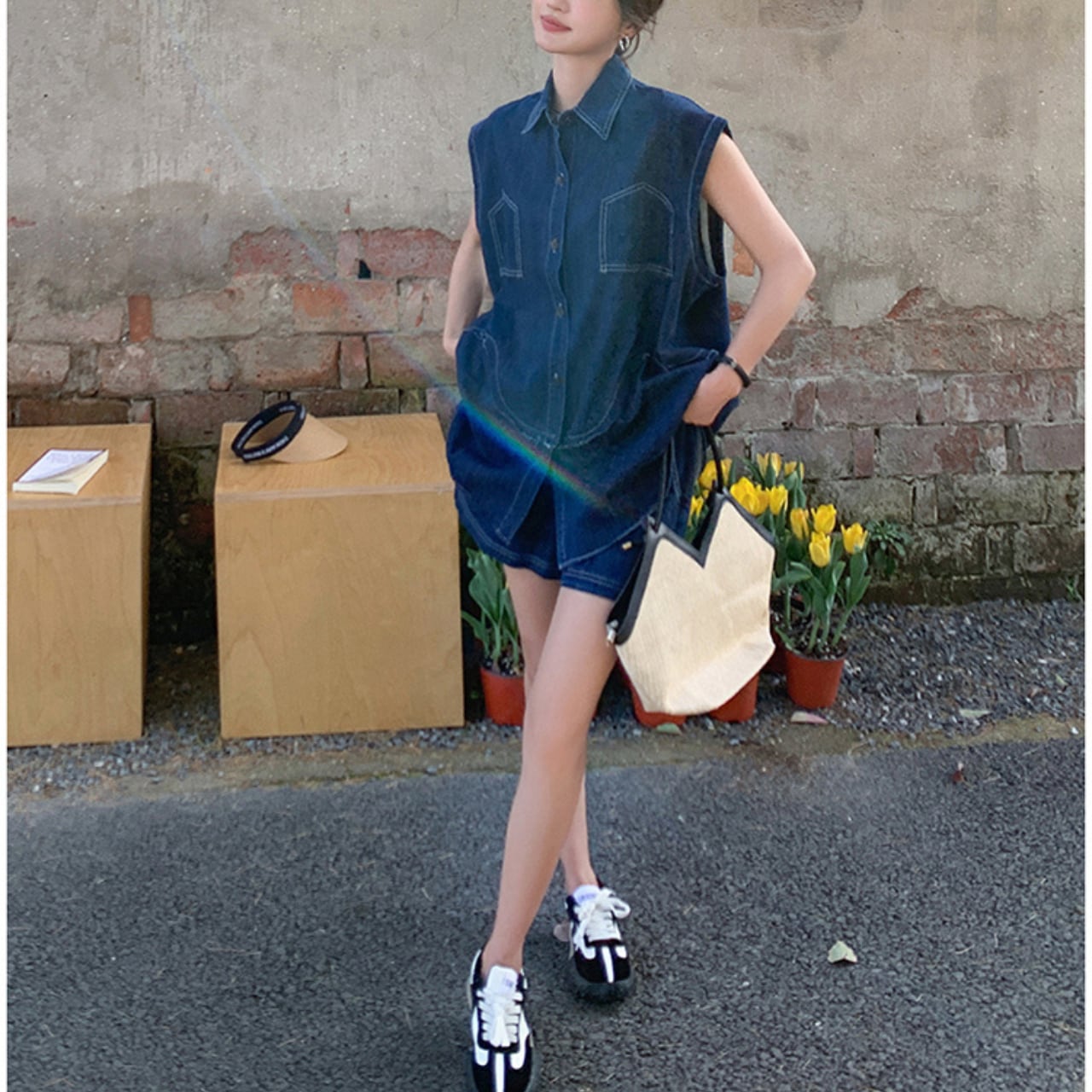 デイリーユースに最適なノースリーブデニムセットアップ