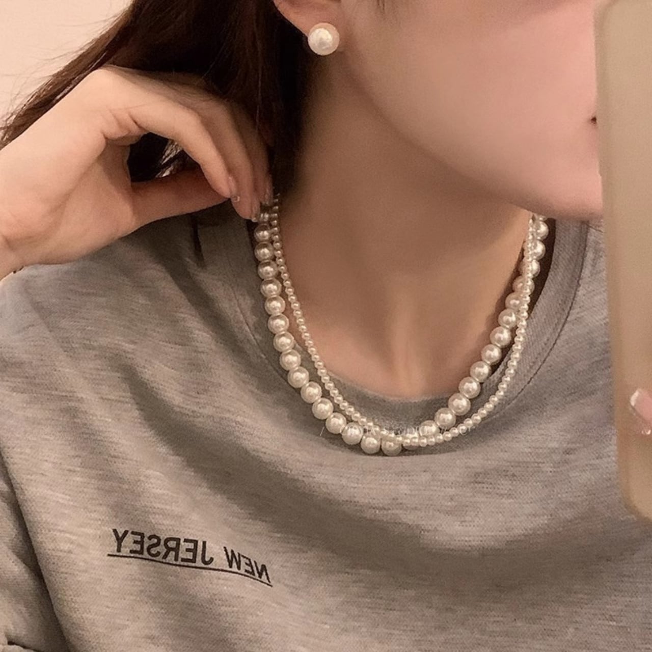 ・洗練された雰囲気を醸し出すダブルレイヤーパールネックレスが新登場!人工パールを使用した二重パールのデザインが、首元を美しく彩ります。シンプルながらも存在感のあるアイテムで、デイリーコーデから特別なシーンまで幅広く活躍すること間違いなしです。