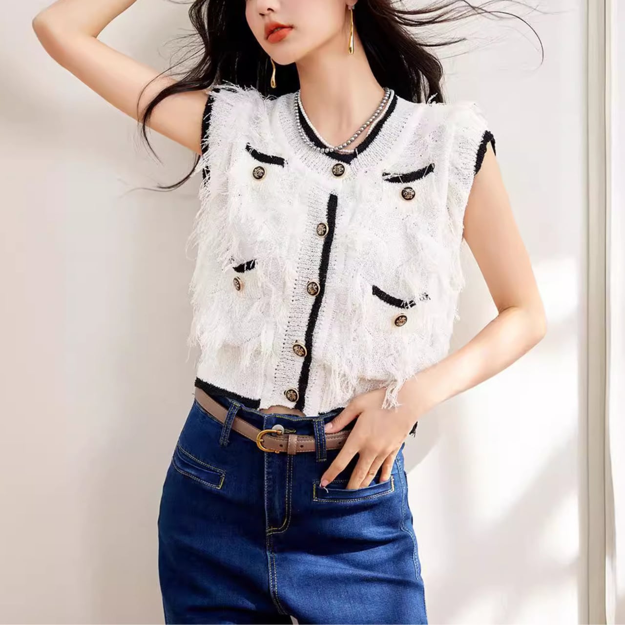 このニット フリンジ トップスは、柔らかな素材を使用し、心地よい着心地が特徴です。フリンジが動きを演出し、着るだけで華やかな印象を与えます。デイリールックはもちろん、友人とのお出かけやちょっとしたイベントにもぴったりの一枚です!