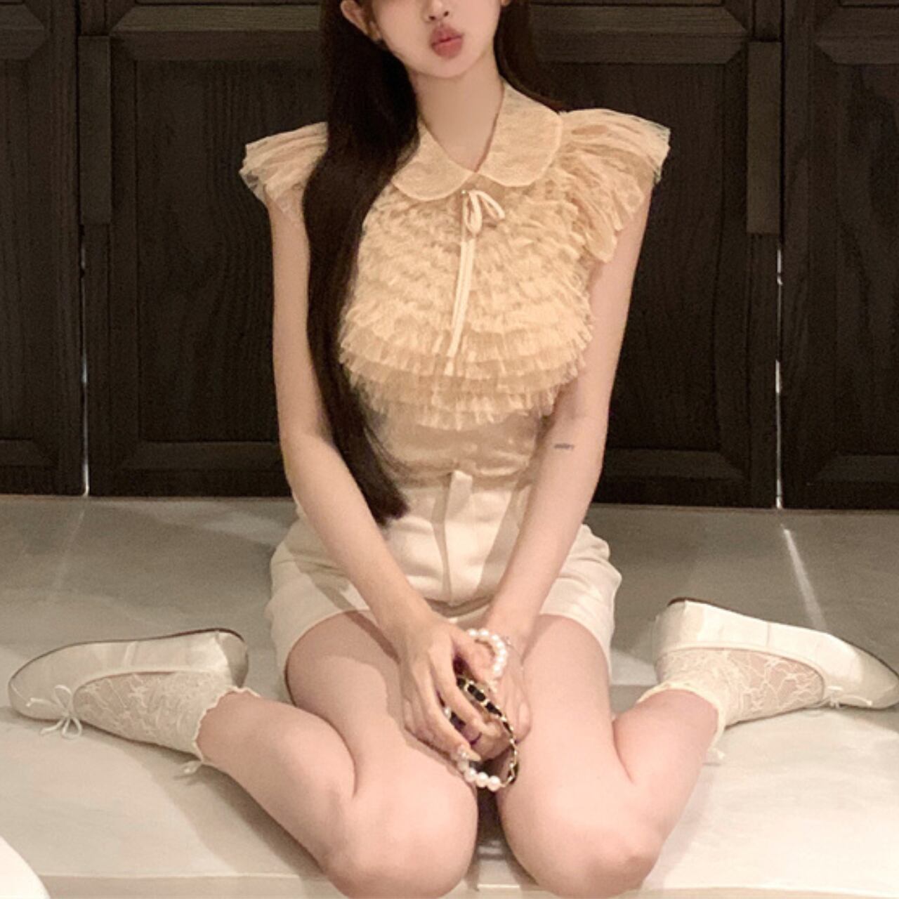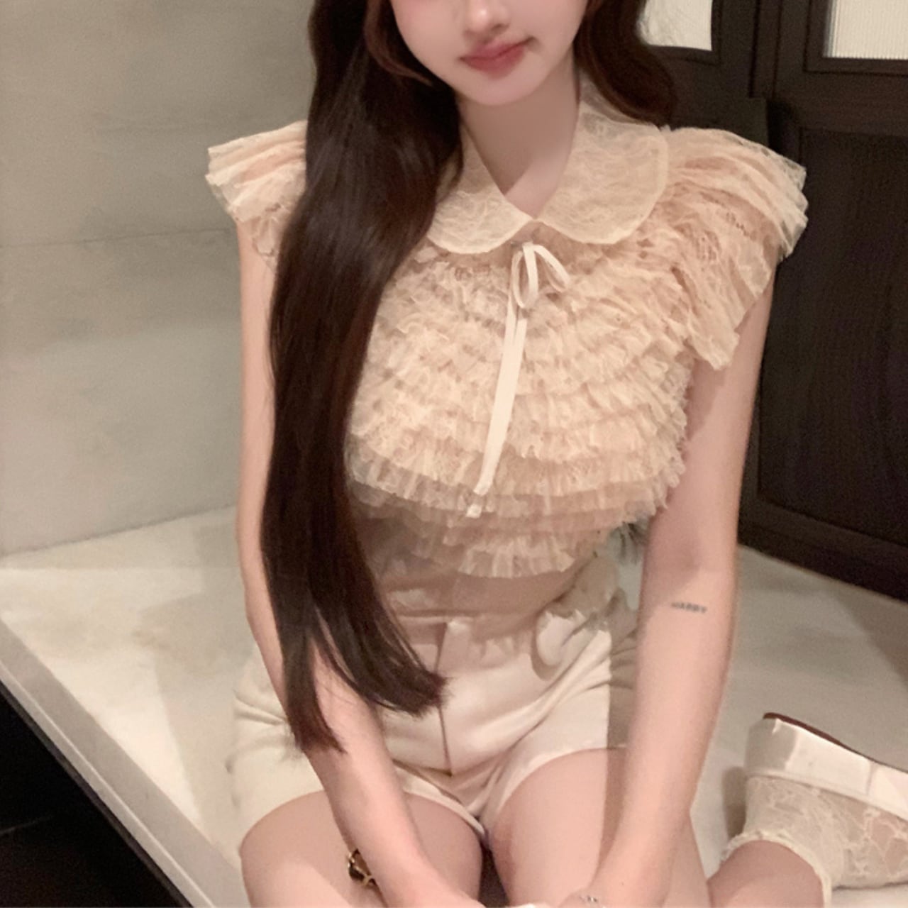 ・エレガントで可愛らしいチュール フリル トップスが新登場!クリーム色の淡いトーンが魅力的で、サイズはSとMをご用意しております。カジュアルな日常使いや特別なシーンまで、さまざまなスタイルに合わせてお楽しみいただけるアイテムです。
