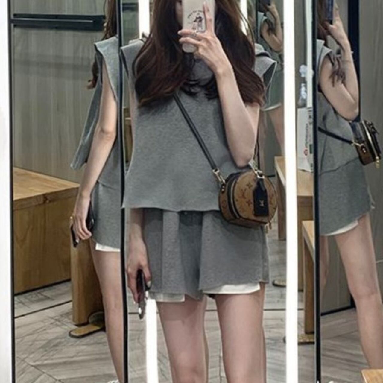 ・トレンディで快適なノースリーブトップス ショートパンツ セットアップが新登場!洗練されたグレー色で、SからLまで幅広いサイズ展開を揃えています。カジュアルな日常使いや休日のお出かけ、さらにはリラックスタイムなど多様なシーンで活躍するアイテムです。