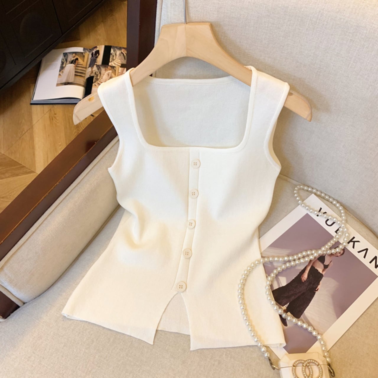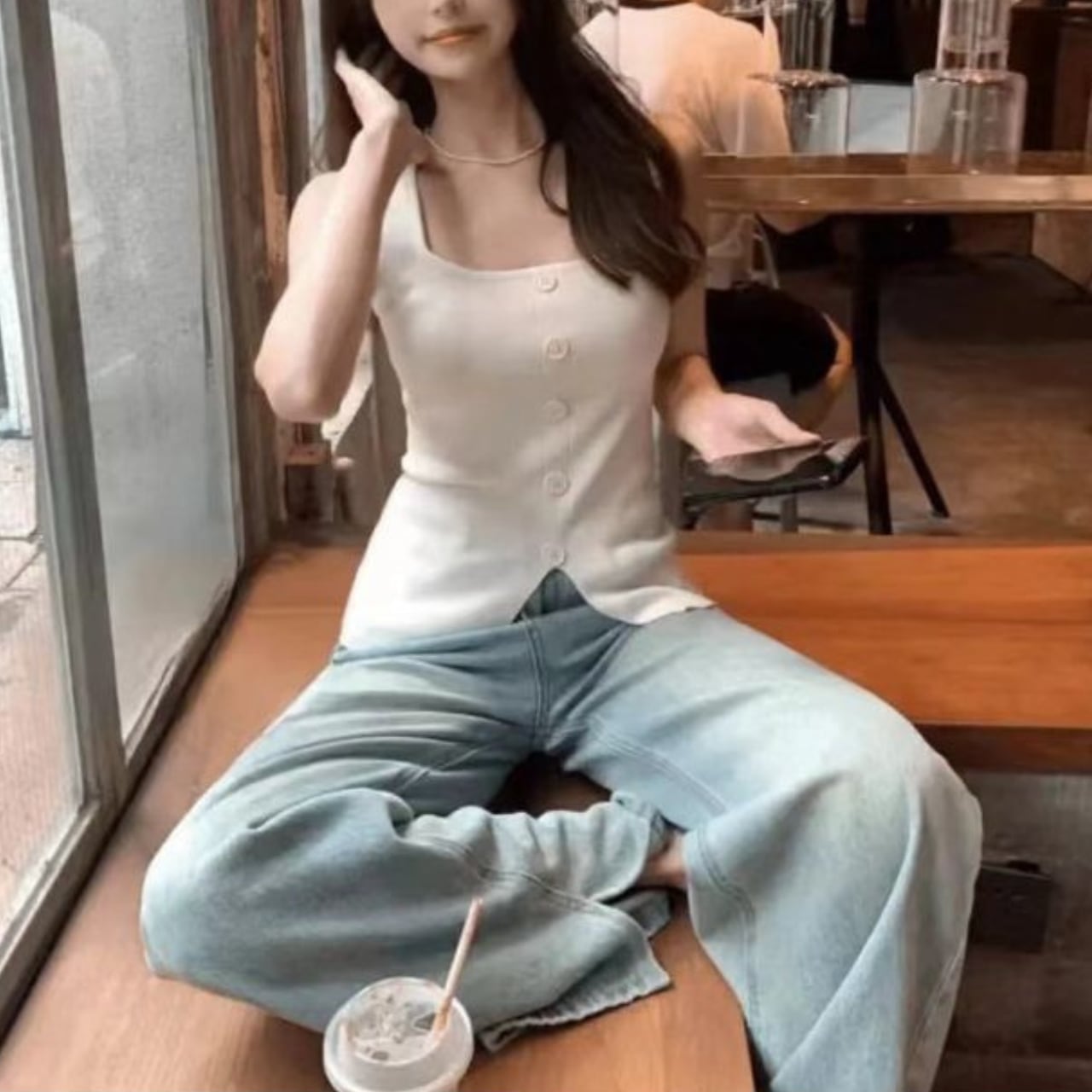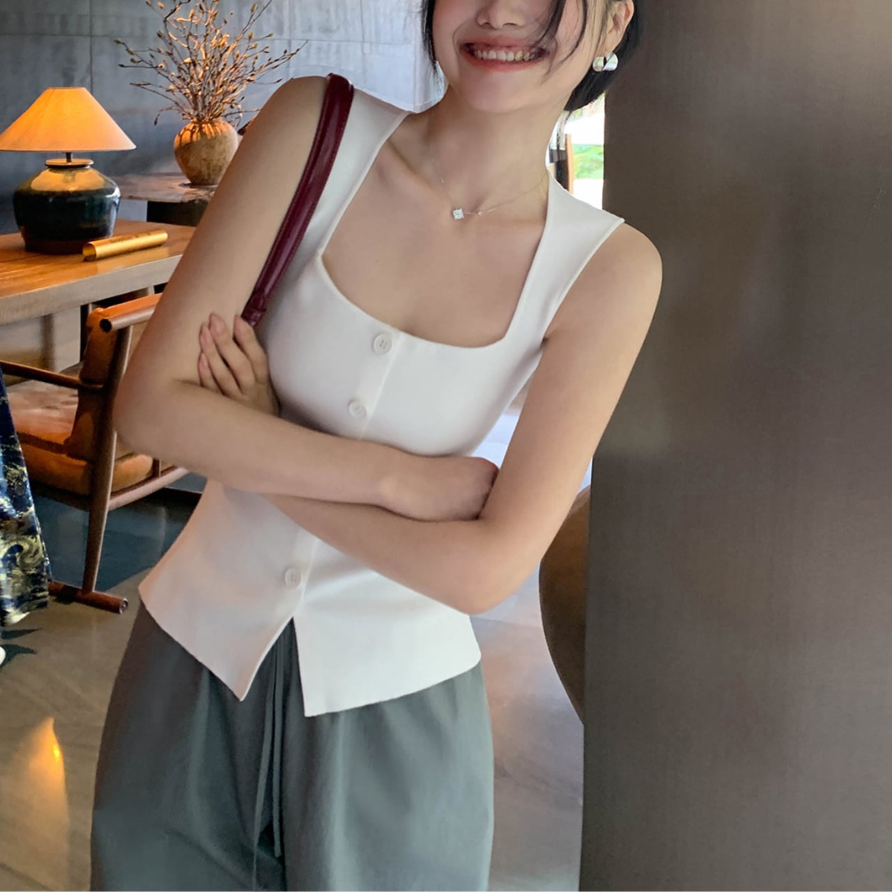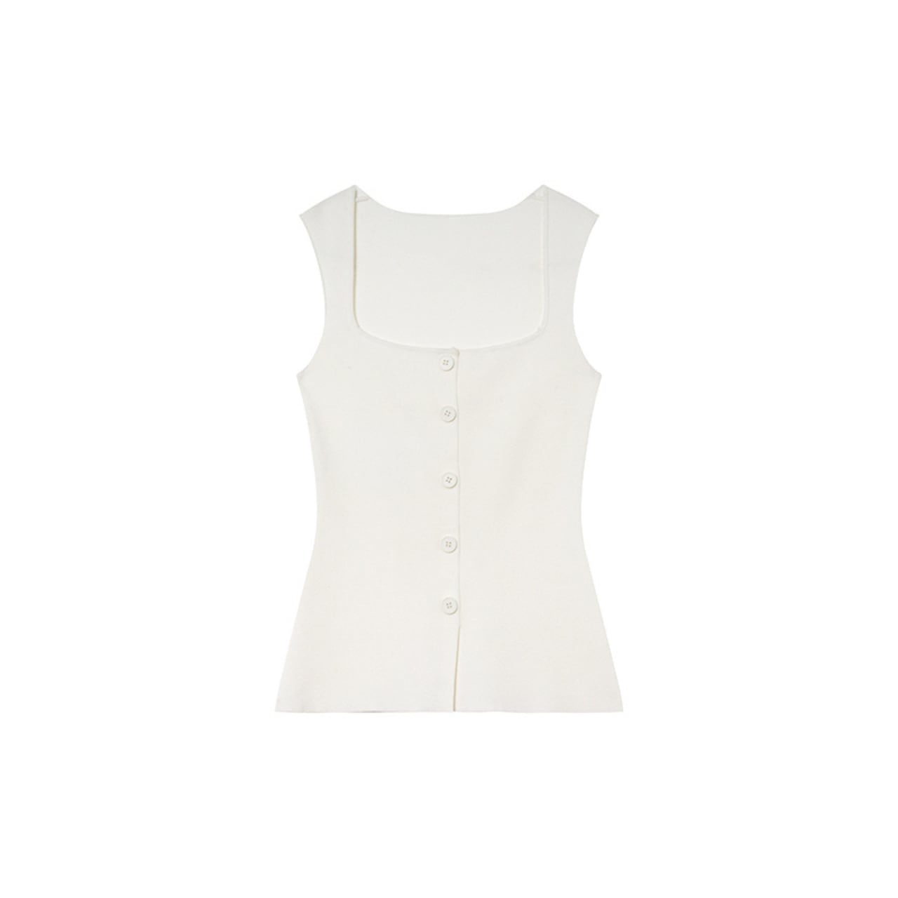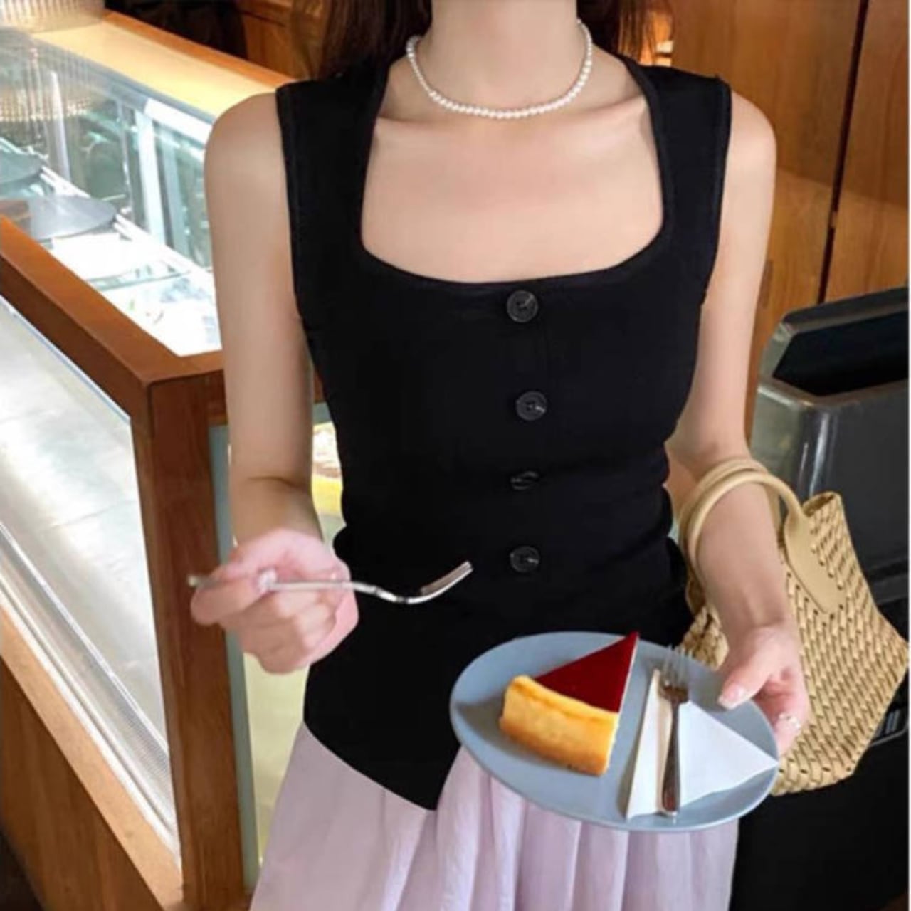 このスクエアネック ニット トップスは、優雅なラインを描くデザインと、上質な素材が魅力。ノースリーブスタイルは、抜け感を演出しつつ、ボタンがアクセントとなり、日常使いからおしゃれな外出時にも活躍します!シンプルなパンツやスカートに合わせるだけで、おしゃれな印象を与えてくれます。