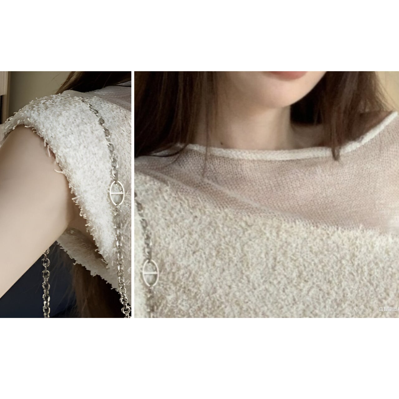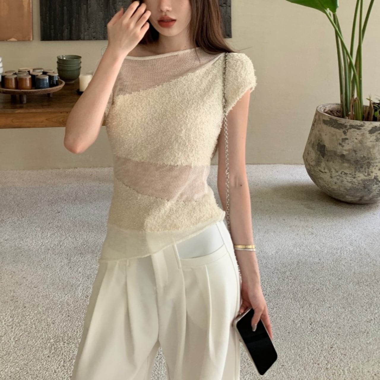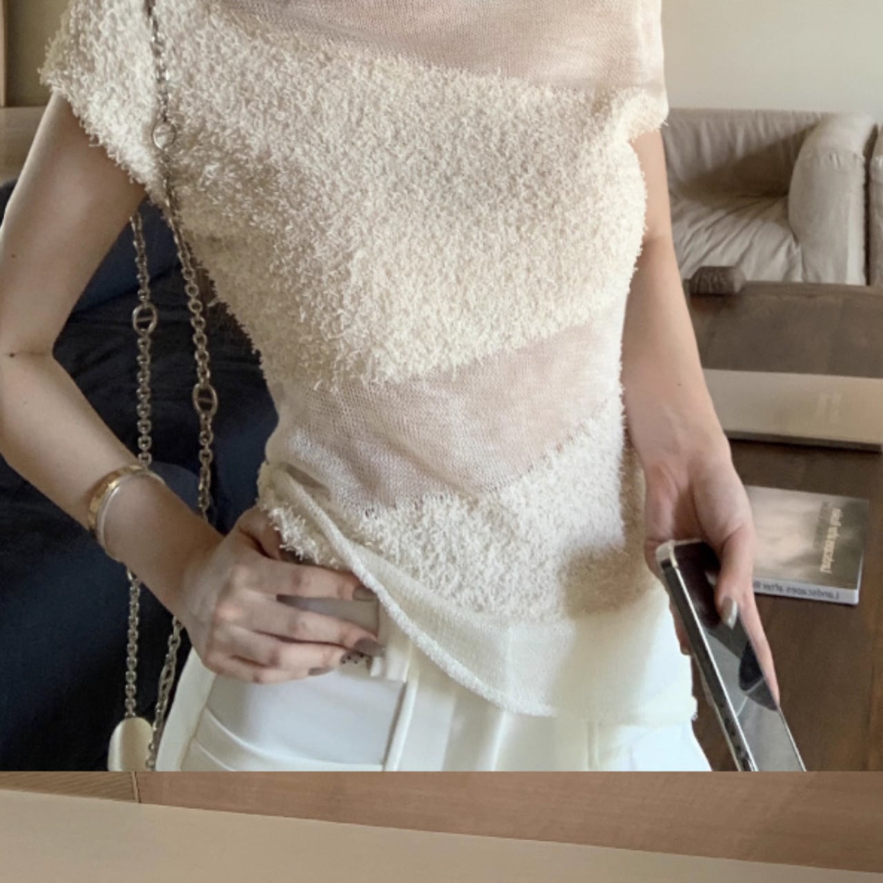 ・トレンド感満載のシースルーデザインが特徴のレイヤードトップスが新登場!アイボリーカラーが清潔感を与えつつ、透け感が女性らしさを引き立てます。サイズはSからLまでの幅広い展開で、多様な体型にフィットするデザインです!