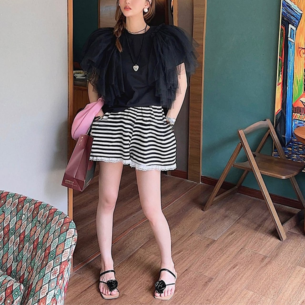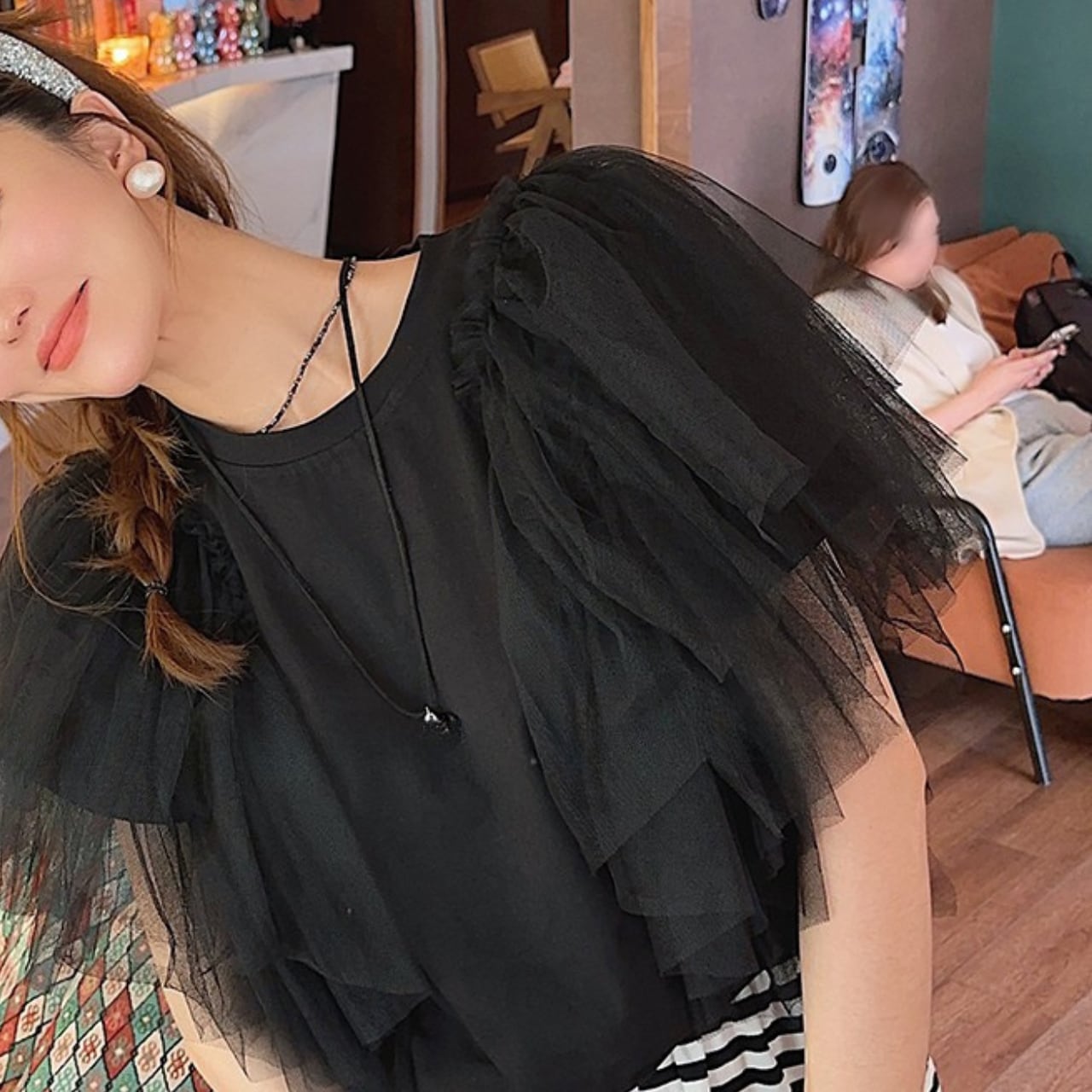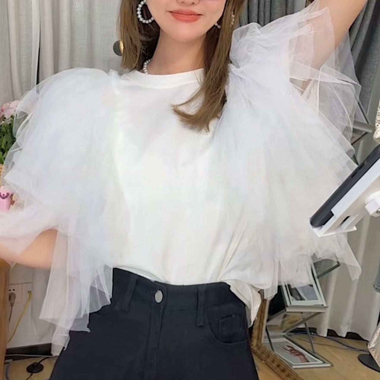 このチュール切り替えトップスは、デイリーユースにぴったりで、カジュアルな着こなしからお出かけコーデまで幅広くご利用いただけます。ボトムスにデニムやスカートを合わせることで、日常のスタイルをアップデートし、シーズンごとに異なるアレンジが楽しめます。チュールとTシャツの絶妙なバランスが、コーディネートに華を添えます。