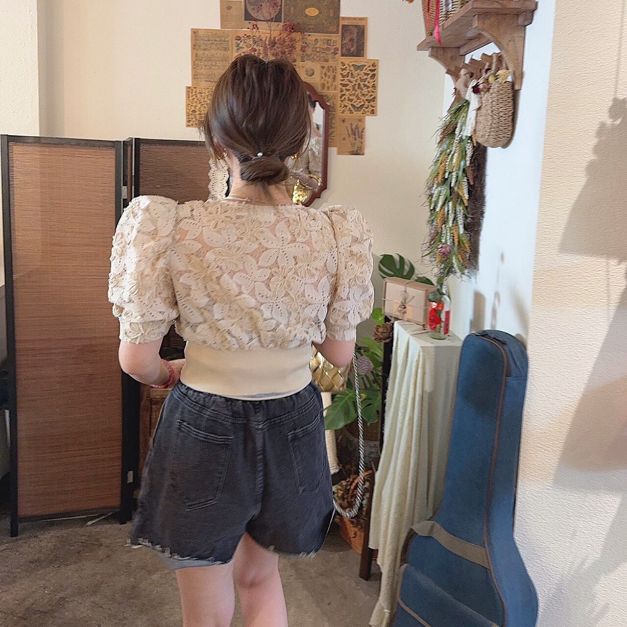 パフスリーブ レース シャツ a266