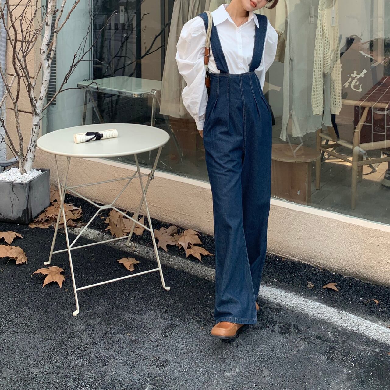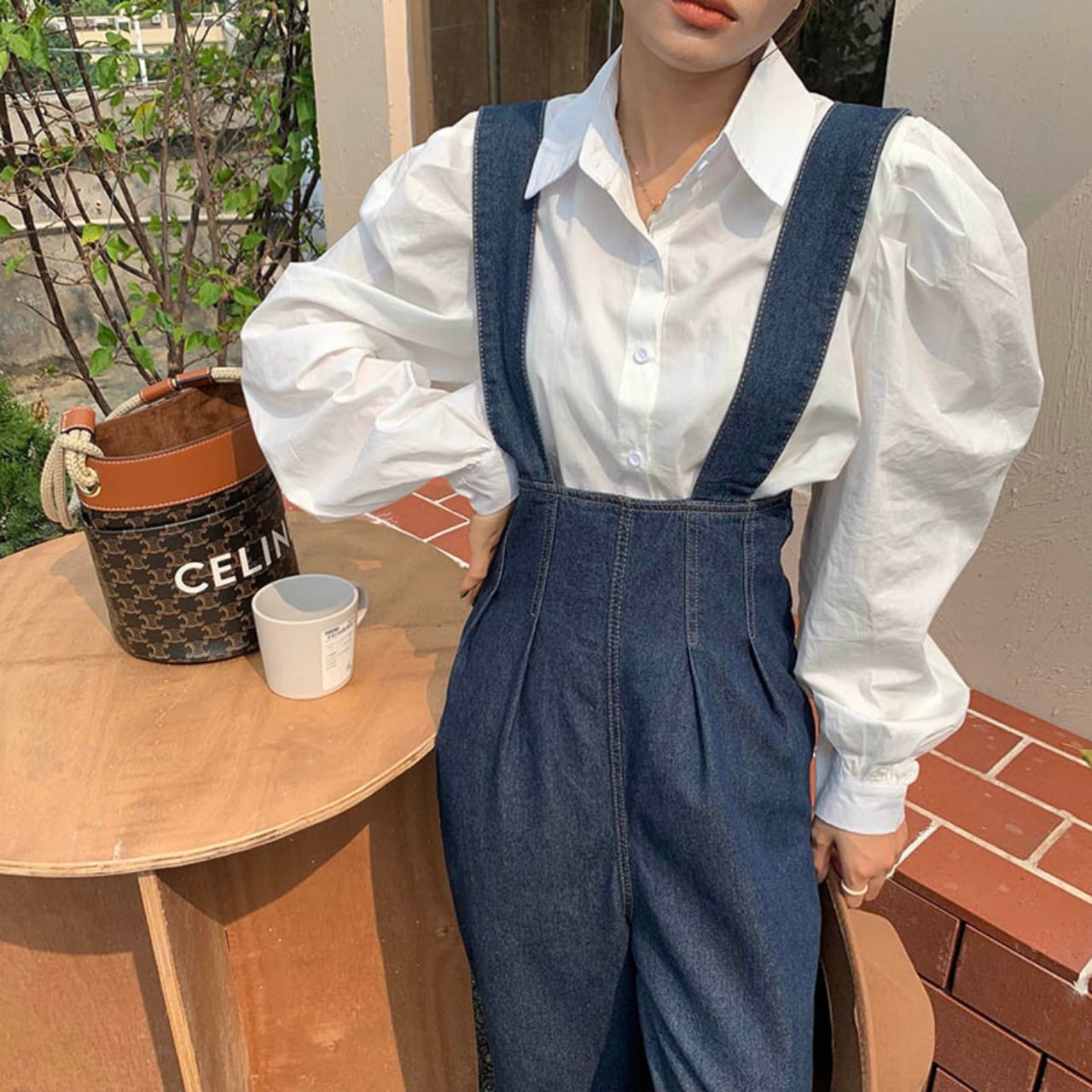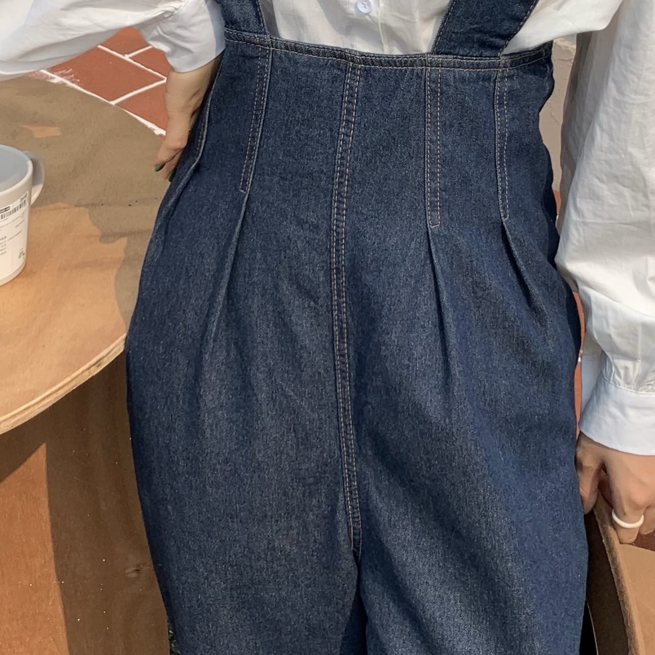 このデニムサロペットは、デイリーユースからお出かけまで幅広く活躍します。Tシャツやブラウスとの相性が良く、レイヤードスタイルも楽しめます。サロペットのカジュアルさと、ウエストのタックがバランスよく組み合わさり、動きやすさを保ちながらもおしゃれな印象を演出します。