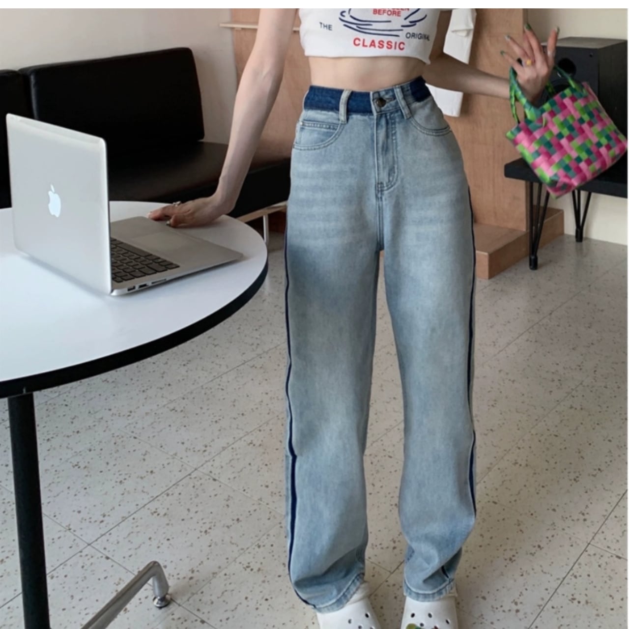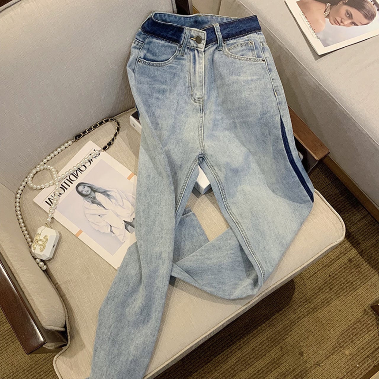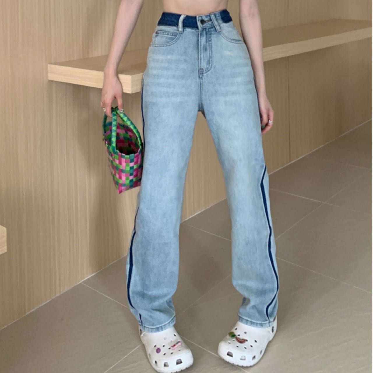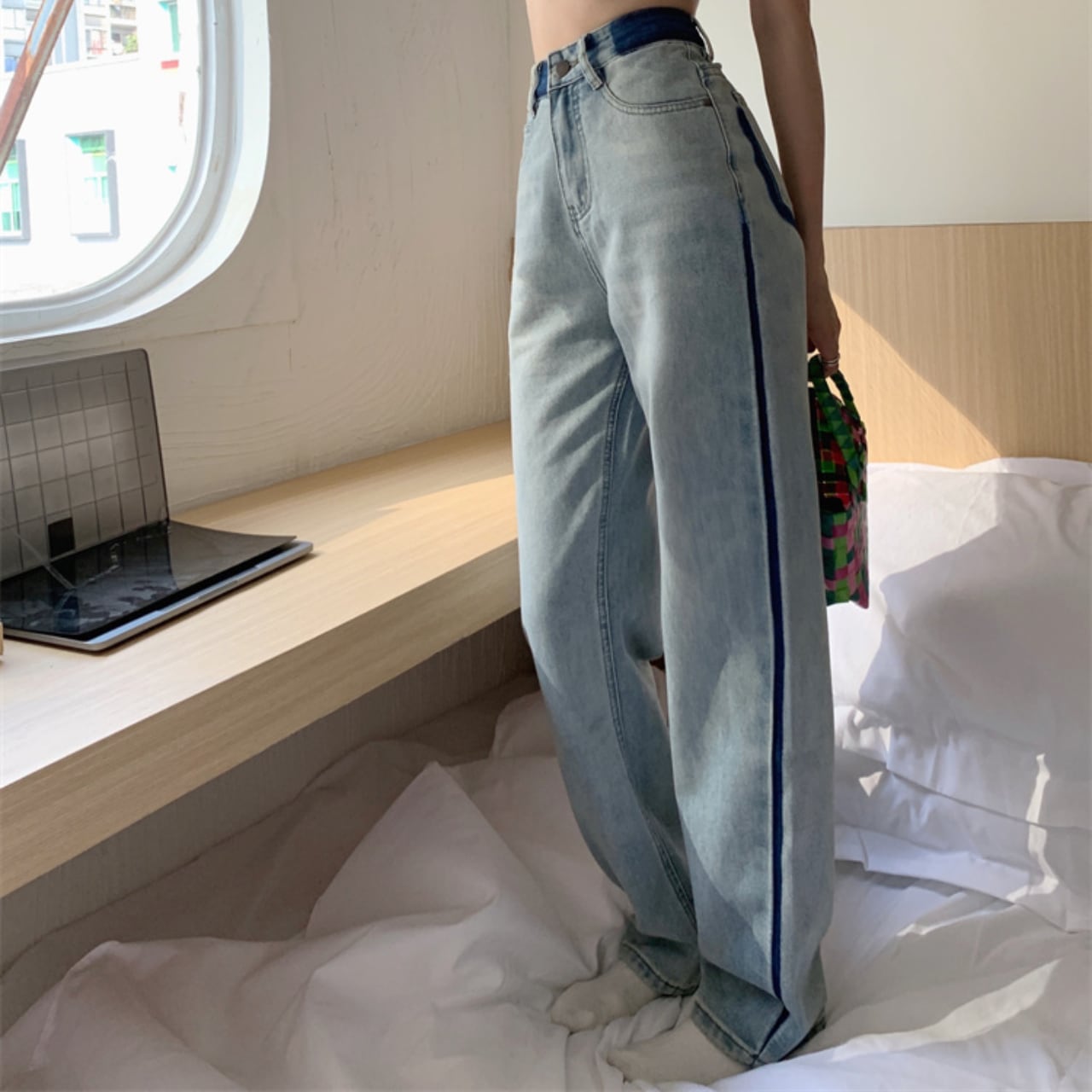 ・トレンディなサイドラインデニムが新たに登場!サイドに施されたラインが、シンプルながらも個性的なアクセントを加え、スタイリッシュな印象を演出します。サイズはSからXLまで幅広く展開しており、多様な体型にフィットします!