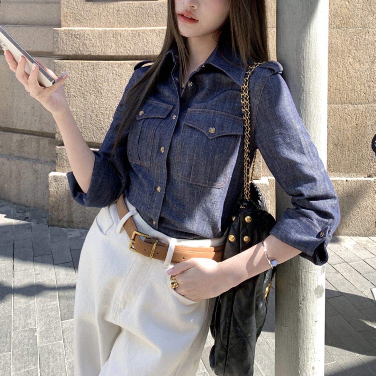 ・カジュアルでありながらスタイリッシュなデニム シャツが新登場!爽やかなデニム素材は、軽やかさと耐久性を兼ね備えており、XSからMまでのサイズ展開で、自分にぴったりのサイズを選びやすいのが魅力です!