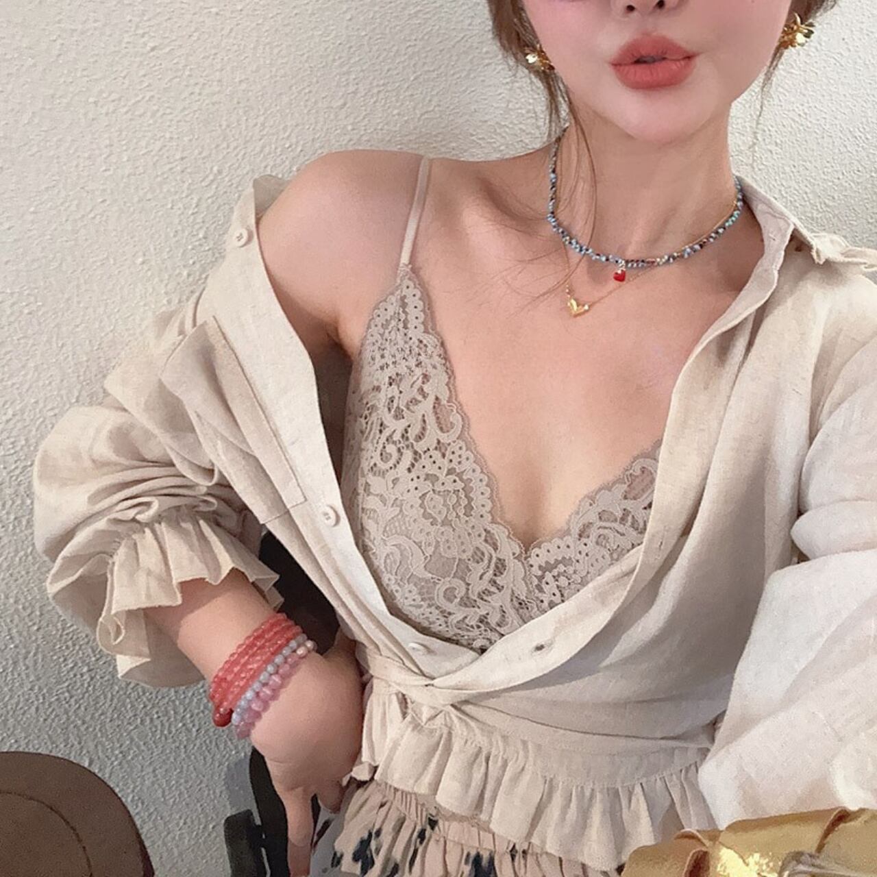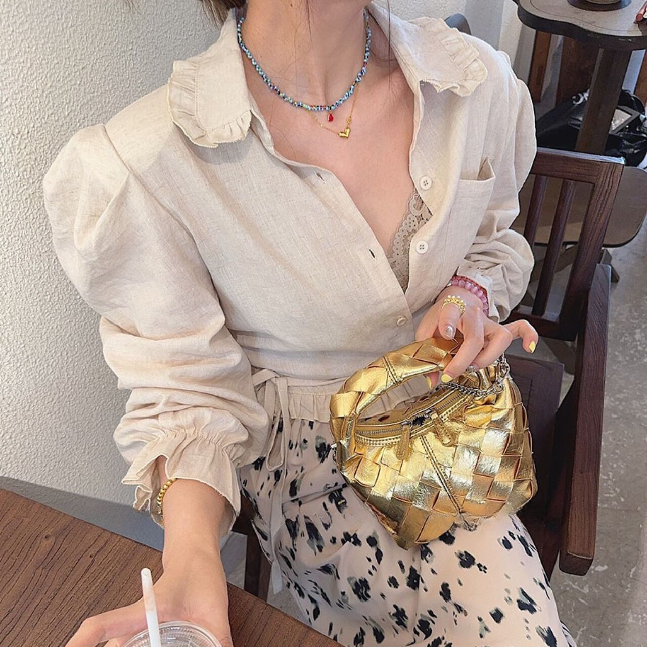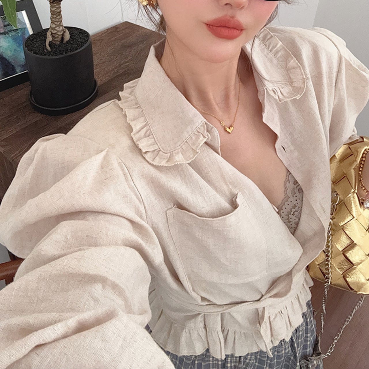 このパフスリーブ リネン シャツは、デニムパンツやミディスカートと合わせてカジュアルにも、タイトなボトムスと組み合わせてスタイリッシュにもコーディネート可能。春夏のシーズンには特に重宝するアイテムです。レースアップコットンとの組み合わせにより、さらなる洗練さを演出します。